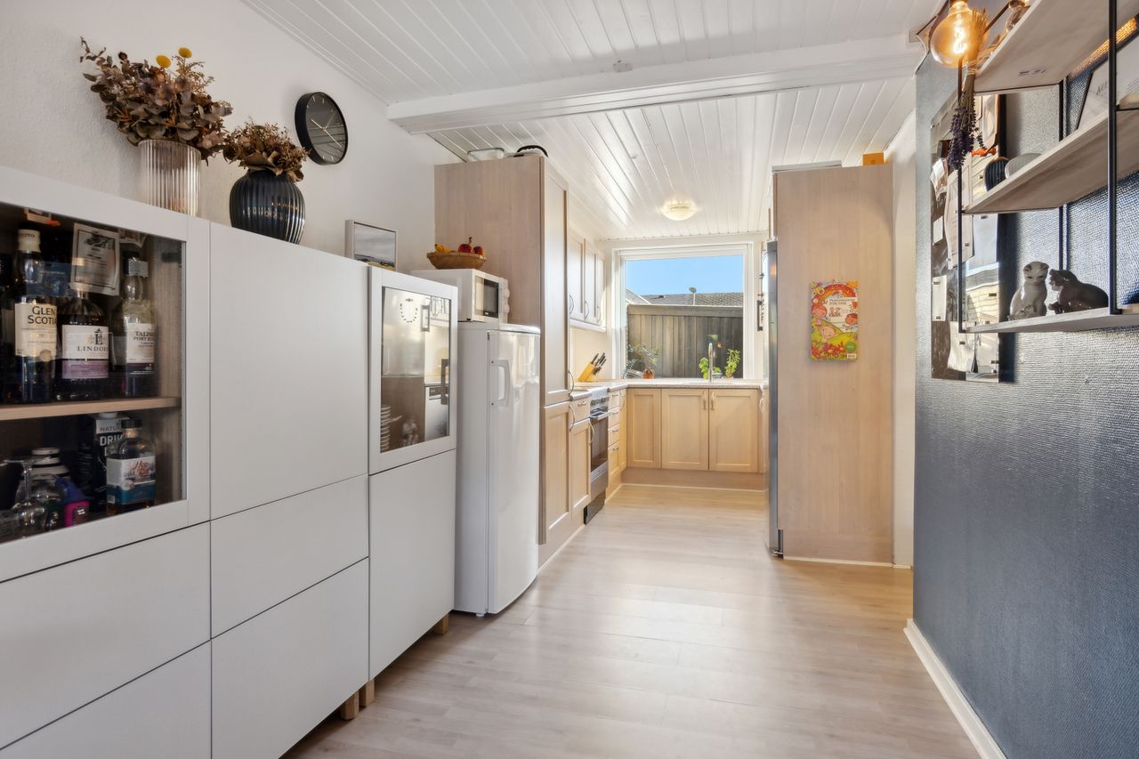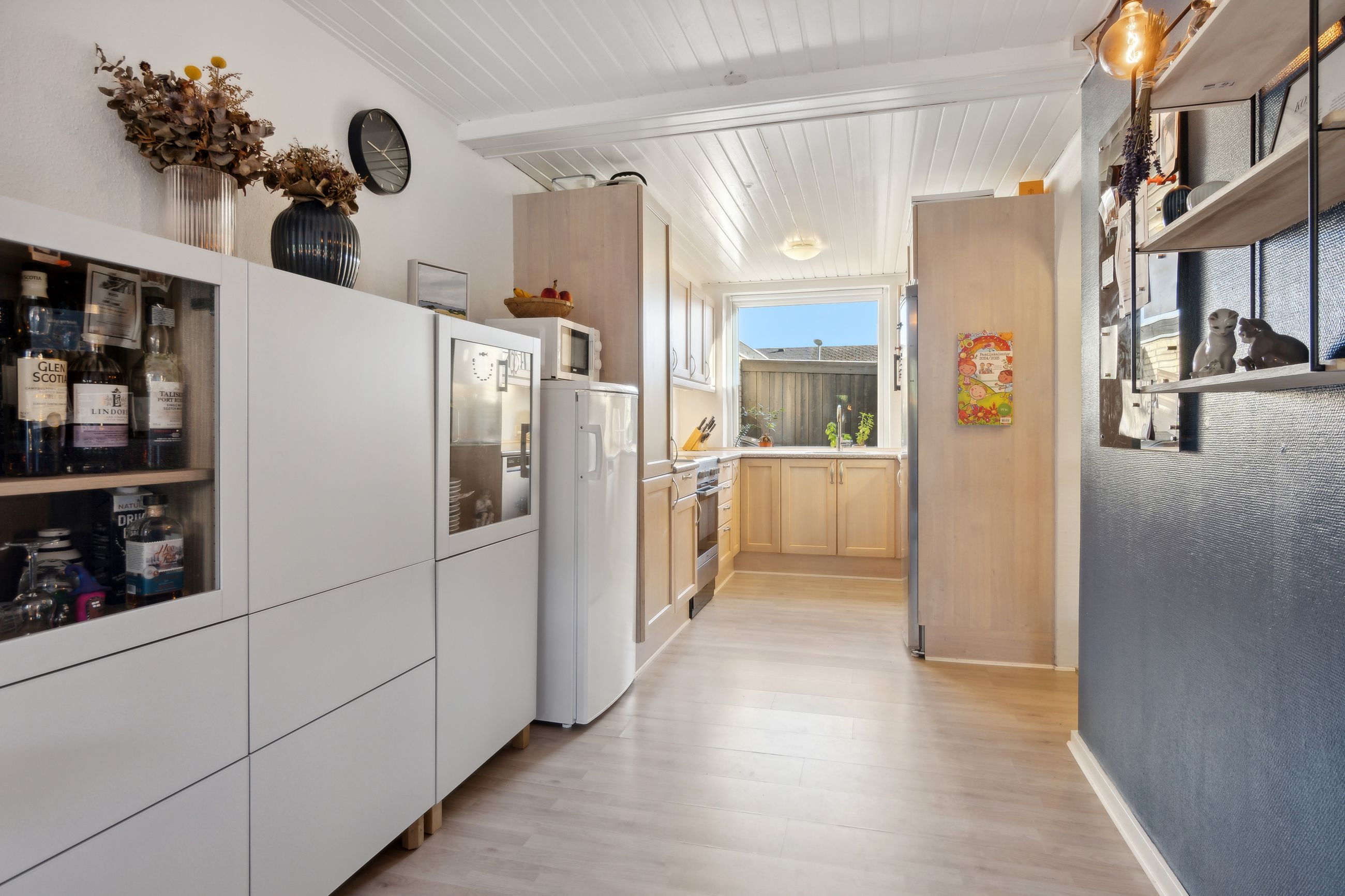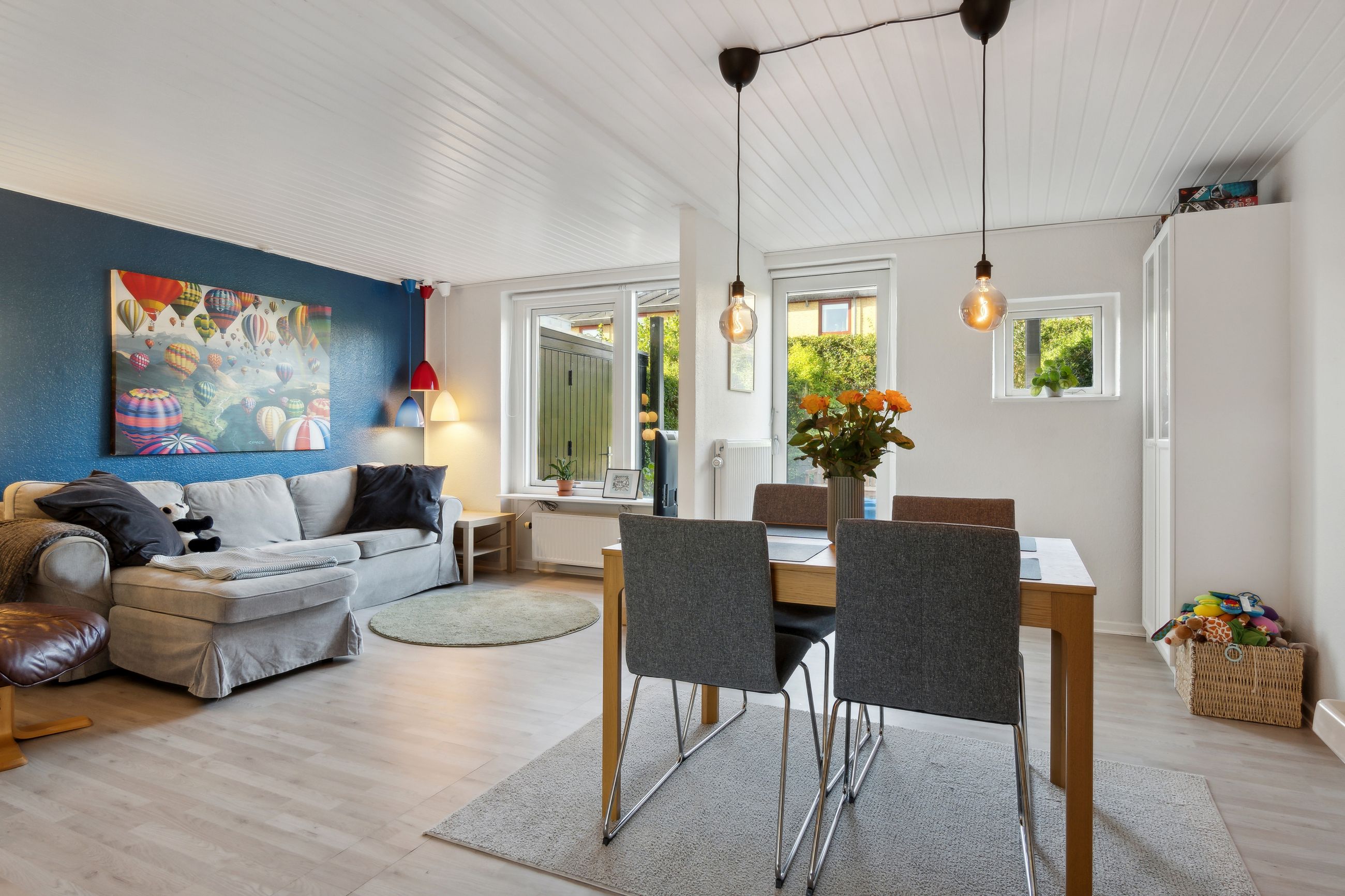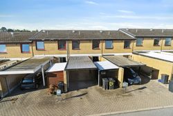 Skønt lyst rækkehus attraktivt beliggende i Gug - Indflytningsklar bolig- Dejligt køkken i åben forbindelse med stue- Toilet på begge plan - godt badeværelse- Skøn terrasse og have- Egen carport BELIGGENHED:"Godskeren" er et område med 134 rækkehuse og her får du et skønt rækkehus på lukket stikvej med attraktiv beliggenhed i efterspurgt ejerforening i Gug. Ejerforeningen er meget velfungerende og her er der både grønne fællesområder, legeplads og hundeområder. Der er endvidere dagpleje, børnehave og skole i gåafstand, samt meget nem adgang til dagligvarehandel. Gug er et attraktivt område med mange aktivitetsmuligheder, grønne arealer og nem adgang til skoler, institutioner, indkøb, busstoppested, Østerådalen, svømmehal ved Gigantium, sport og kultur. Aalborg centrum og motorvejen nås på 5 min. BESKRIVELSE BOLIG:Du bydes indenfor i rummelig entré med god plads til at tage imod gæster. Herfra har du adgang til fordelingsgang med nyt gulv fra 2025 og med adgang til gæstetoilet og dejligt køkken med masser af bord- og skabsplads. Køkkenet er i åben forbindelse med stuen, der er meget rummelig og med et godt lysindfald fra det store vinduesparti ud til den sydvestvendte terrasse og have.På 1. sal er der to gode børneværelser, soveværelse med skabsvæg, godt depotrum der er indrettet til walk-inn closet og et dejligt moderniseret badeværelse. På den sydvestvendte terrasse kan du altid finde læ og sol, ligesom der er selvfølgelig er plads til både grill og hygge. Haven er nem og overskuelig, men alligevel er der plads til hygge og leg. Endvidere er der tilhørende carport med godt redskabsrum - begge med nyt tag fra 2025. Alt i alt et rigtig dejligt sted at bo.