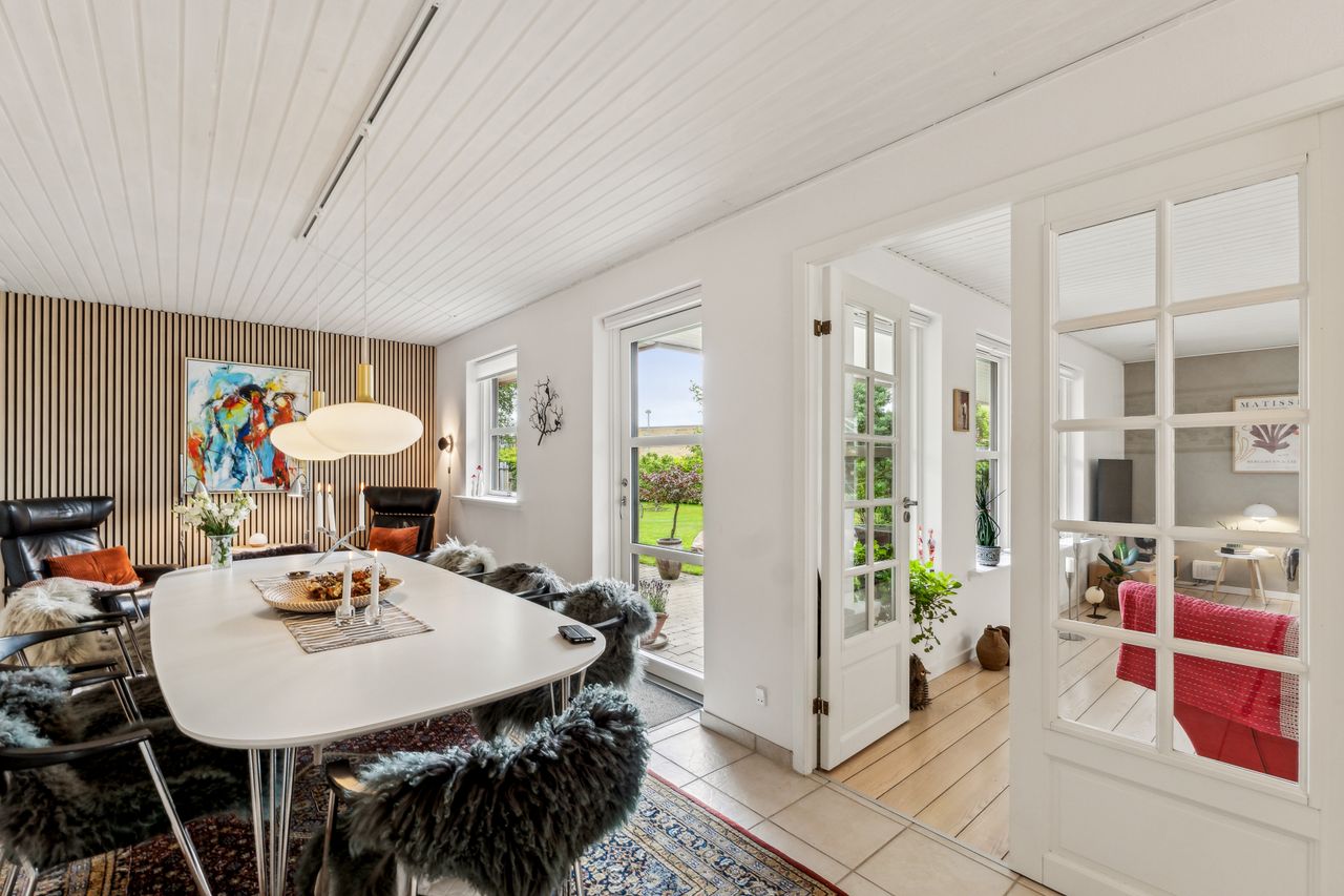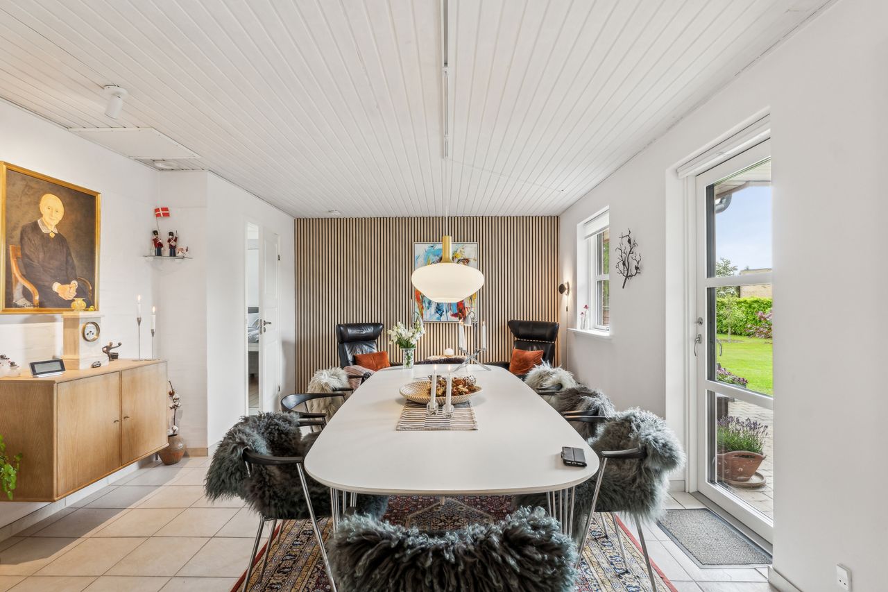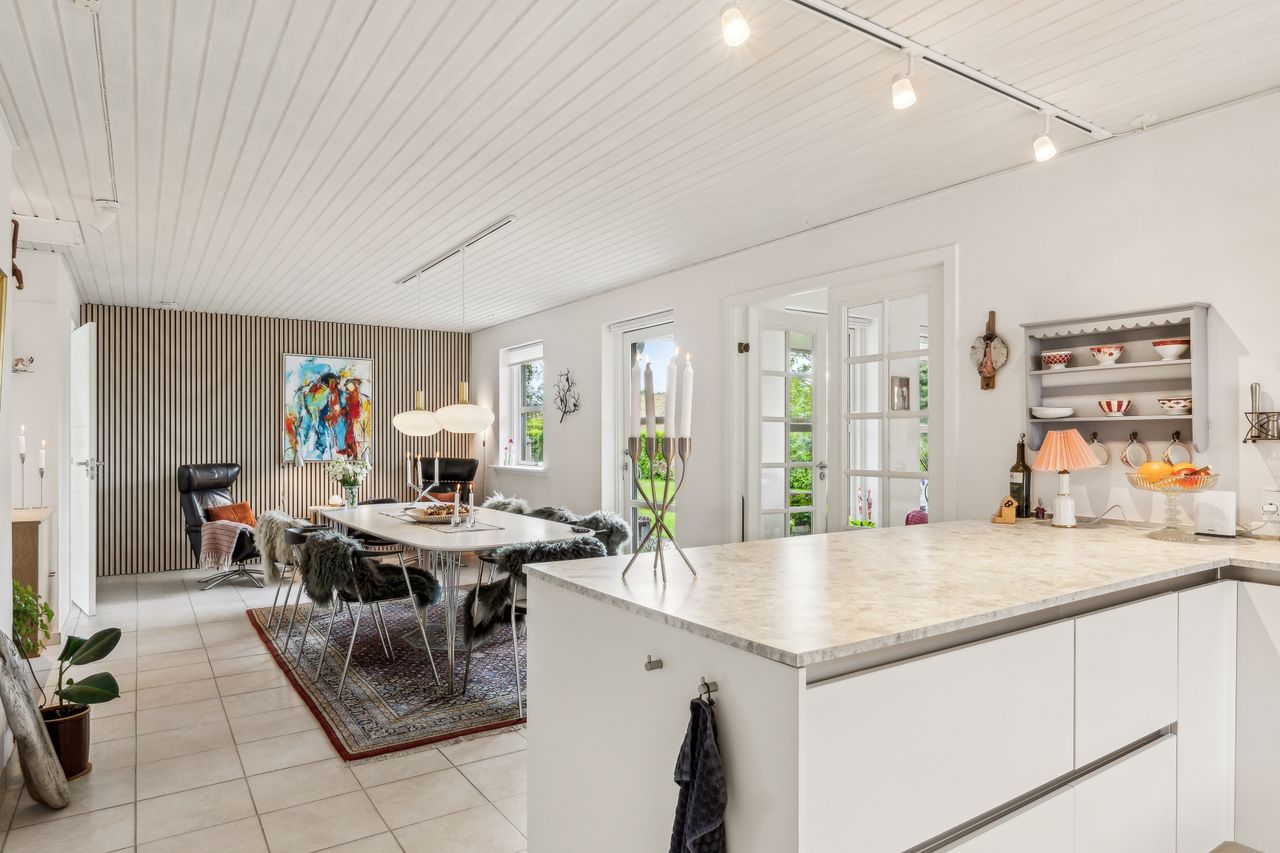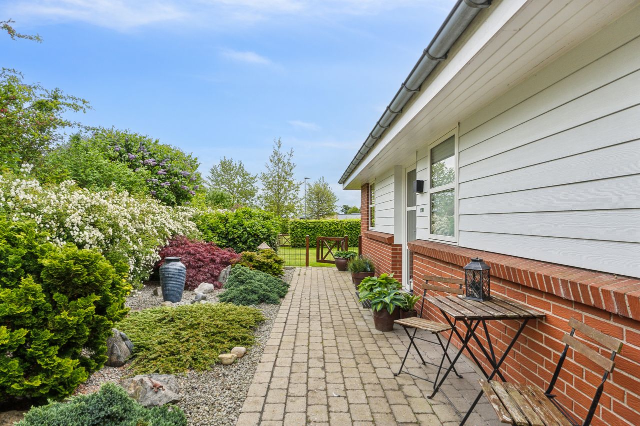 Velholdt villa på attraktiv beliggenhed - Indflytningsklar villa med gulvvarme overalt- Nyere HTH køkken fra ca. 2018- Dejlige værelser og hyggelig stue- Træ-alu vinduer og døre fra 2023- Fantastisk lukket have- Ugeneret på lukket vænge BELIGGENHED:Denne velholdte villa finder du tæt på store grønne områder, hvor du kan følge med i årstidernes skiften. Villaen ligger på en lukket stikvej i familievenligt kvarter og blot 100 meter fra villaen finder du grundejerforeningens nyere legeplads. Her er der kort og nem adgang til naturskønne omgivelser i Kongshøjskoven og Poulstrup sø, hvor der er gode muligheder for at nyde naturen eller motionere med gang, løb eller cykel. Herudover har du i Visse gode daginstitutionsmuligheder, samt gode forbindelser til skole og fritidsaktiviteter. Endelig er der den lokale Spar Købmand, hvor du kan handle alle dagligvarer. BESKRIVELSE BOLIG:Du bydes velkommen i rummelig forgang med god plads til at tage imod gæster og komme af med overtøjet. Herfra er der adgang til skønt badeværelse med stor bruseniche og håndklædetørrer. Du ledes helt naturligt ind i husets hjerterum, køkken-alrummet med køkkenelementer fra HTH, hvor der er godt med bord- og skabsplads. I alrummet er der god plads til langbordet så du kan samle venner og familie til hygge. Her er der også udgang til dejlig terrasse og helt fantastisk have. Alrummet er i åben forbindelse med hyggelig stue hvor du kan slappe af i sofagruppen. Herudover er der soveværelse med stort walk-in-closet. Walk-in-closet er indrettet i tidligere værelse, der nemt kan genetableres. Herudover endnu et godt værelse, samt et dejligt bryggers med skab og vaskesøjle. Haven er helt fantastisk og her kan du være helt ugeneret og der god plads til leg og boldspil i haven. Herudover skøn delvist overdækket terrasse med god plads til grill, hygge og afslapning Der er stor carport, godt skur og dejligt drivhus. En villa på meget attraktiv beliggenhed i Visse, der SKAL OPLEVES.
