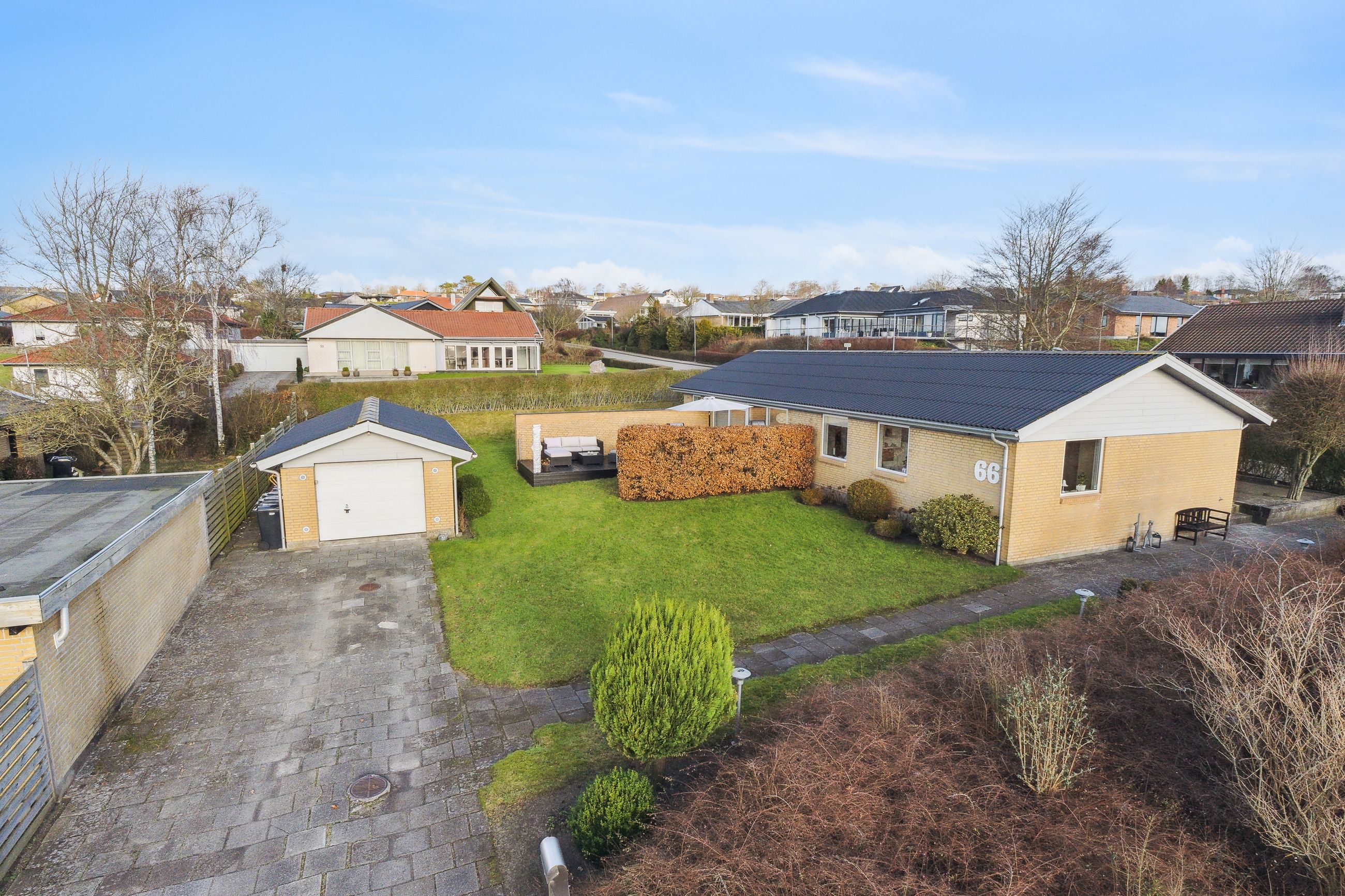 Velkommen indenfor i rummelig forgang med god plads til at tage imod gæsterne og komme af med overtøjet. Herfra ledes du ind i husets hyggelige alrum med god plads til langbordet. Alrummet er selvfølgelig i åben forbindelse med fint køkken hvor der er godt med bord- og opbevaringsplads. Fra alrummet er der adgang til stor lys stue med godt lysindfald fra det store sydvestvendte vinduesparti, her er der også udgang til stor terrasse. Fra stuen er der adgang til meget stort soveværelse med garderobeafdeling, samt adgang til eget stort badeværelse med gulvvarme og bruseniche. I modsatte ende af huset finder du børneafdelingen med 2 gode værelser og fint badeværelse med gulvvarme og badekar. Endelig er der stort bryggers.