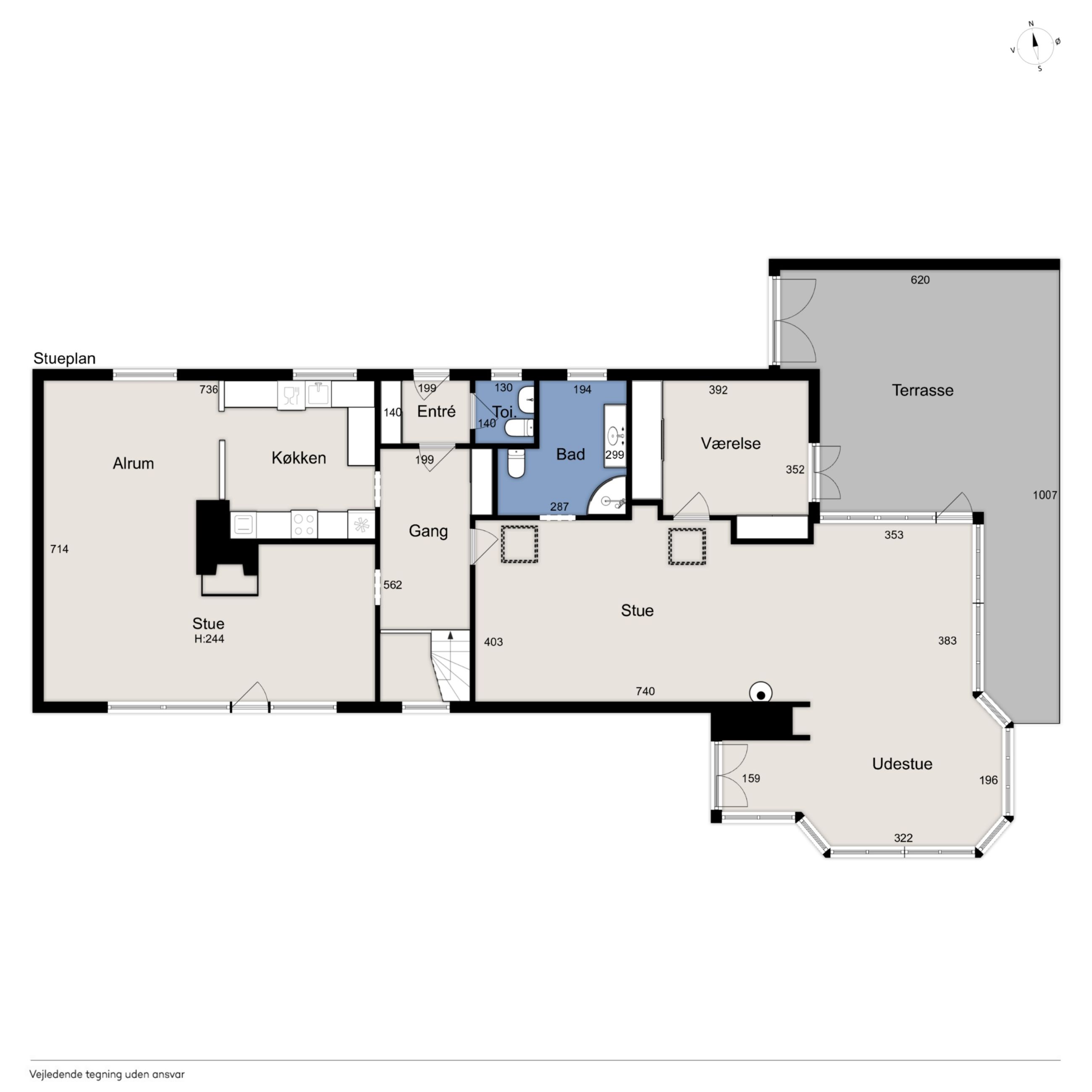 Højt beliggende i Gug - Stor stue- Unoform køkken i åben forbindelse med spisestue- Mulighed for at lave moderne køkken-alrum- Badeværelse og gæstetoilet- Skøn ugeneret lukket have- Carport foran huset- Hus med mange muligheder - nogen renovering må forventes BELIGGENHED:Denne gode villa ligger på en attraktiv beliggenhed højt i Gug og med nem adgang til alt. Gug er et attraktivt område med fokus på børnenes aktivitetsmuligheder, grønne arealer og meget velfungerende stisystem, til både skole, børnehaver og fritidsaktiviteter. Her er ligeledes nem adgang til indkøb, busstoppested, bakkede naturoplevelser i Gug Alper eller Kongshøjskoven, fantastiske ruter og træningsområder i Golfparken/Sohngårdsholmsparken og kun 2 minutter til grønt område. Svømmehal ved Gigantium, sport og kultur. Det nye Supersygehus, Aalborg centrum, med kun 4 km. til Nytorv og tilkørsel til motorvejen nås på kun 5 minutter. BESKRIVELSE BOLIG:Du bydes velkommen indenfor i forgang hvorfra der er adgang til gæstetoilet og indgang til fordelingsgang, hvorfra der er adgang til rummeligt Unoform køkken, hvor der er godt med bord- og skabsplads. Køkkenet er i åben forbindelse med stor spisestue - her er det oplagt at lave moderne køkken-alrum. Spisestuen er endvidere i åben forbindelse med stor stue med hyggelig pejs. Fra fordelingsgangen er der endvidere adgang til værelsesafdeling, hvor der er stort badeværelse med bruseniche, soveværelse med skabsvæg, samt et stort rum der tidligere har været indrettet til 3 værelser, hvilket nemt kan genetableres. Endelig er der adgang til udestue.Kælderen er indrettet med depot med udgang, vinkælder, stort vaskerum og 2 disponible rum - her er der mange anvendelsesmuligheder. Bag huset er der stor ugeneret have med masser af plads til børnenes leg, boldspil og trampolin. Der er endvidere et ældre anneks, som tidligere har været kolonihavehus, samt et drivhus. Endvidere er der carport foran huset. En spændende bolig på en attraktiv beliggenhed, hvor du kan sætte dit eget præg på stil og indretning. Ring 98 149 147 for at se mulighederne.