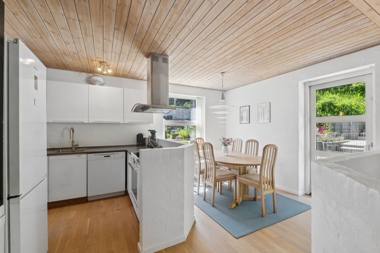 Hyggeligt lyst og velholdt etplans rækkehus i Visse - Dejligt lyst køkken med spiseplads- Hyggelig stue- Soveværelse og 2 gode værelser- Fint lyst badeværelse- Skøn lys og overkommelig lille have BELIGGENHED:Dette skønne fuldmurede rækkehus, finder du på en rolig vej i familievenligt kvarter. Her er der kort og nem adgang til naturskønne omgivelser i Kongshøjskoven og Poulstrup sø, hvor der er gode muligheder for at nyde naturen eller motionere med gang, løb eller cykel. Herudover har du i Visse gode daginstitutionsmuligheder, samt gode forbindelser til skole og fritidsaktiviteter. Endelig er der den lokale Spar Købmand, hvor du kan handle alle dagligvarer. Der er busstoppested lige i nærheden, samt skolebus til Nøvling Skole og kun kort afstand til både City Syd, Aalborg C og ikke mindst det kommende Supersygehus. BESKRIVELSE BOLIG:Velkommen indenfor i dette dejlige fuldmurede rækkehus, der fremstår dejligt lyst med de vandskurede indervægge. Du modtages i entre, med god plads til at tage imod gæster og komme af med overtøjet. Herfra er der adgang til godt værelse med nyere vinylgulv og dejligt lyst badeværelse med gulvvarme og bruseniche. Du ledes helt naturligt ind i den hyggelige lyse stue med udgang til terrasse og have, ligesom der er adgang til soveværelse med nyere gulvtæppe, samt et godt værelse og lyst køkken med spiseplads, hvorfra der også er udgang til terrassen og haven. Endelig er der fra køkkenet adgang til godt og rummeligt bryggers. Skøn og overkommelig sydvestvendt have, med masser af lys og god plads til hygge og afslapning. Endvidere tilhørende carport.