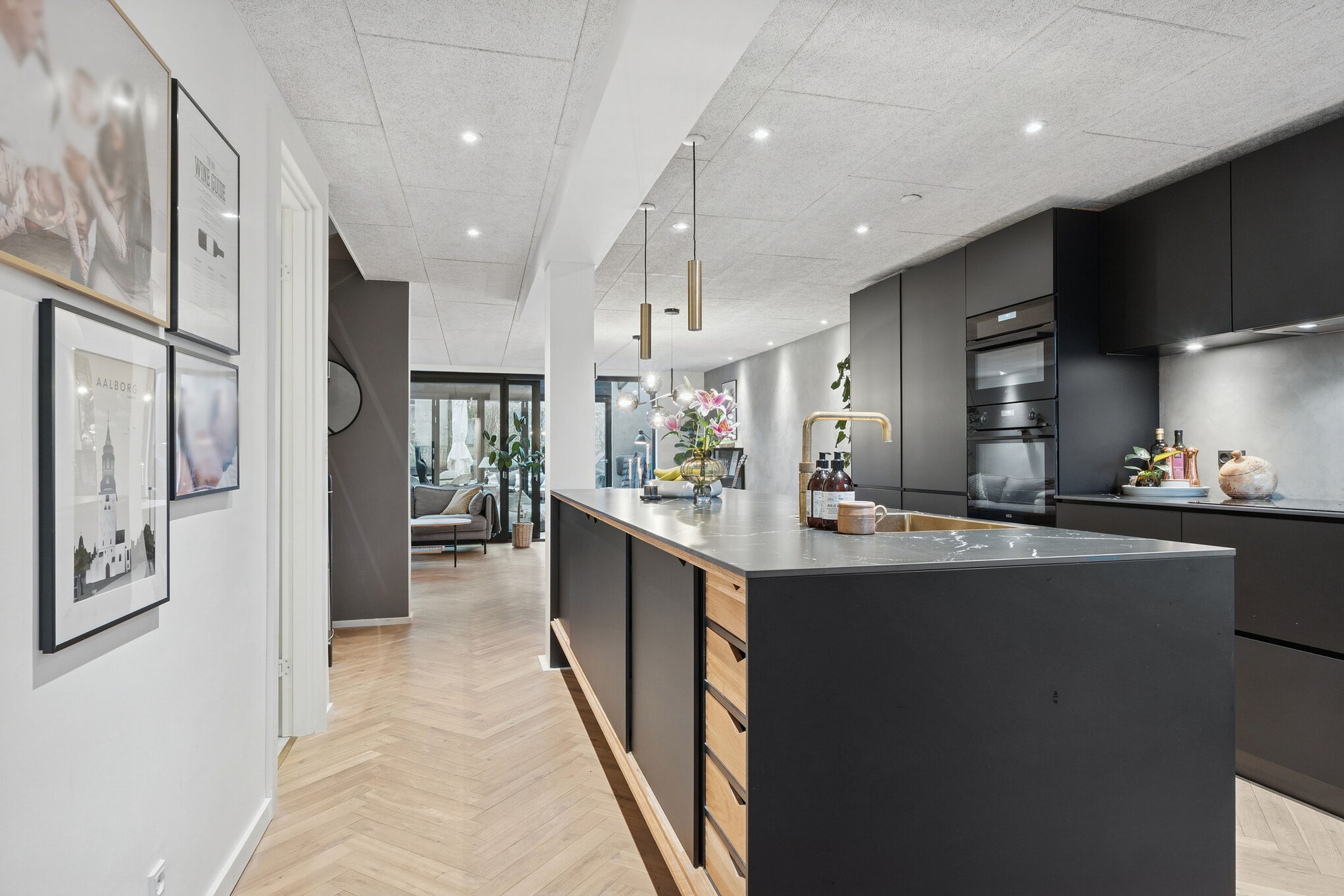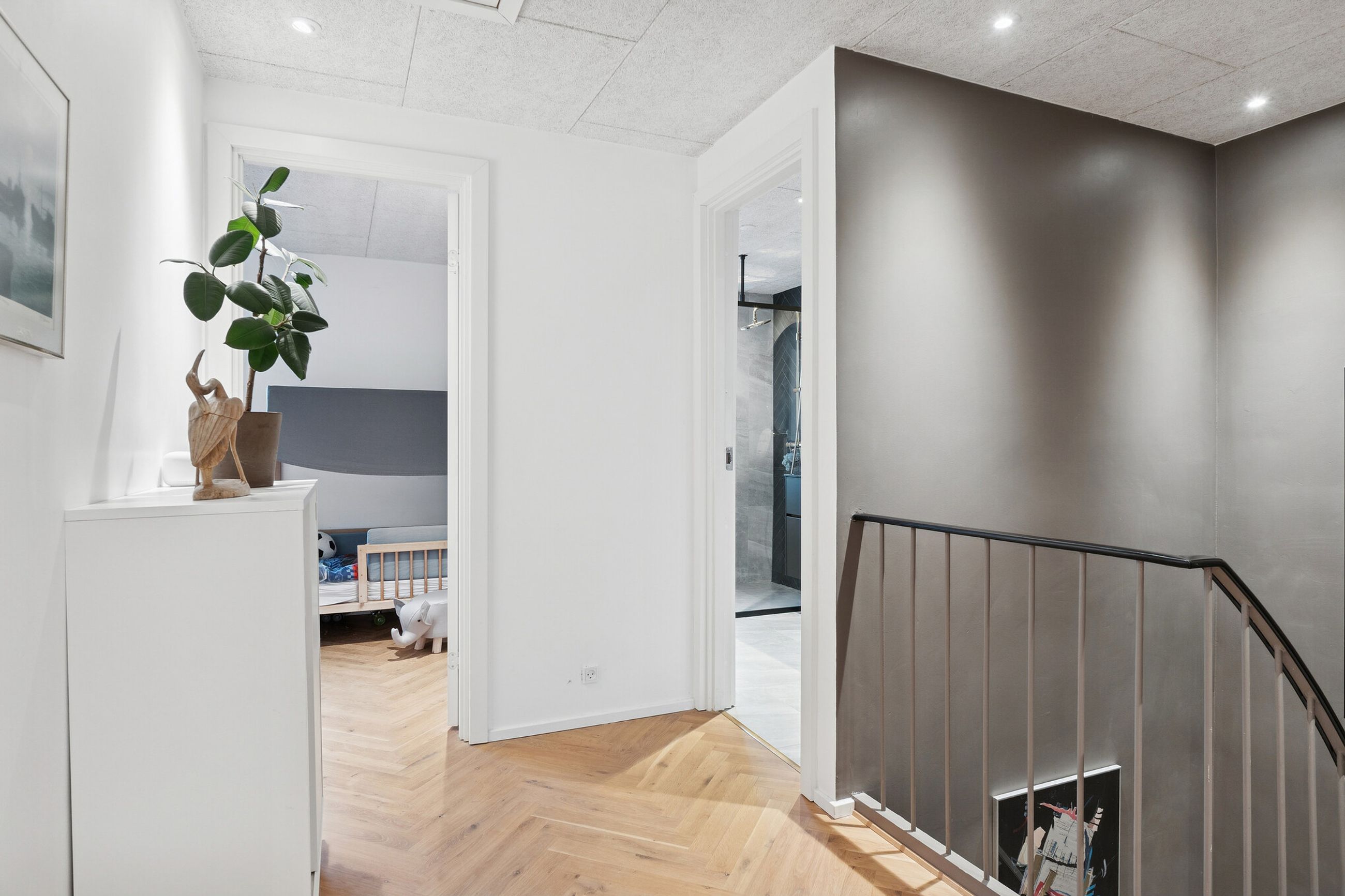 GENNEMRENOVERET I TOP KVALITET Et af de flotteste huse i foreningen - Gennemrenoveret i 2022- incl. nye træ-alu vinduer- Gulvvarme i stueplan og udestue- Trold tekt lofter overalt- Lækkert stort åbent køkken- Dejlig stor lys stue- Godt udnyttet badeværelse- Skønt stort bryggers med ovenlysvindue- Skøn nyanlagt gårdhave med sol hele dagen BELIGGENHED:Du finder dette gennemrenoverede rækkehus I den attraktive grundejerforening på Godske Lindenovs Vej, hvor der er masser af lys og luft omkring dig. Herudover er dette hus til-/ombygget med en fantastisk udestue. Det betyder du får et større hus end de fleste andre i området, samt ikke mindst, at du får integreret bryggers. "Godskeren" er et område med 134 rækkehuse og her får du et skønt rækkehus på lukket stikvej med attraktiv beliggenhed i efterspurgt ejerforening i Gug. Gug er et attraktivt område med mange aktivitetsmuligheder, grønne arealer og nem adgang til Aalborg Universitet, skoler, institutioner, indkøb, busstoppested, Østerådalen, svømmehal ved Gigantium, sport og kultur. Aalborg centrum, det kommende Supersygehus og motorvejen nås på 5 min. BESKRIVELSE BOLIG:Straks du ankommer til Godske Lindenovs Vej 227 og parkerer bilen, fornemmer du hvilken kvalitet og nænsomhed renoveringen af dette hus er præget af.Velkommen indenfor i lys og indbydende entré med adgang til dejligt stort bryggers med vaskesøjle og ovenlysvindue. Herfra er der videre adgang til resten af huset, hvor du har et dejligt lyst gæstebadeværelse med bruseniche. Du ledes helt naturligt ind i det lækre store køkken-alrum, hvor der i køkkenet er elementer fra KVIK, alt i hvidevarer - selvfølgelig også en Quooker og masser af bord- og opbevaringsplads. I alrummet er der god plads til det store langbord, hvor du kan samle familie og venner til hyggelige timer. Alrummet er i åben forbindelse med den store og rummelige stue med god plads til sofagruppen. Fra stuen er der adgang til den skønne helt nye udestue med gulvvarme - en naturlig forlængelse af boligen og med adgang til skøn nyanlagt gårdhave.1. sal er indrettet med 2 gode børneværelser, soveværelse med adgang til skønt walk-in-closet, samt et lækkert badeværelse med stor bruseniche og gulvvarme. Der er som nævnt stor skøn sydvendt gårdhave med god plads til grill og hygge. Herudover er der et isoleret skur. Endelig er der som parkeringsplads og stort skur foran huset. Et hus der SKAL OPLEVES - ring straks 98 149 147 for fremvisning.