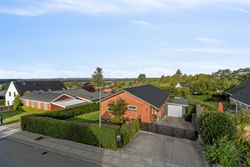 Dejlig lukket ugeneret have bag huset med plads til børnenes leg, boldspil og trampolin. Helt fantastisk stor hævet terrasse med panoramaudsigt. Her er der plads til grill og hygge, mens du holder øje med børnenes leg.