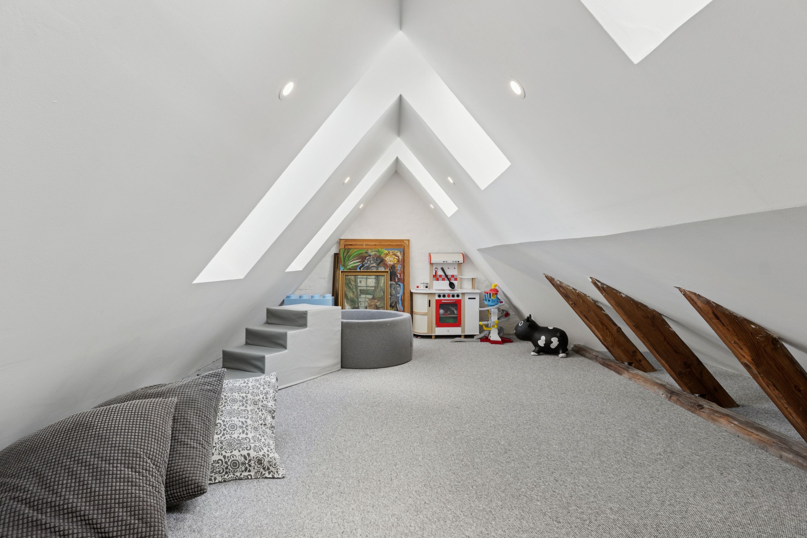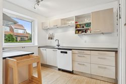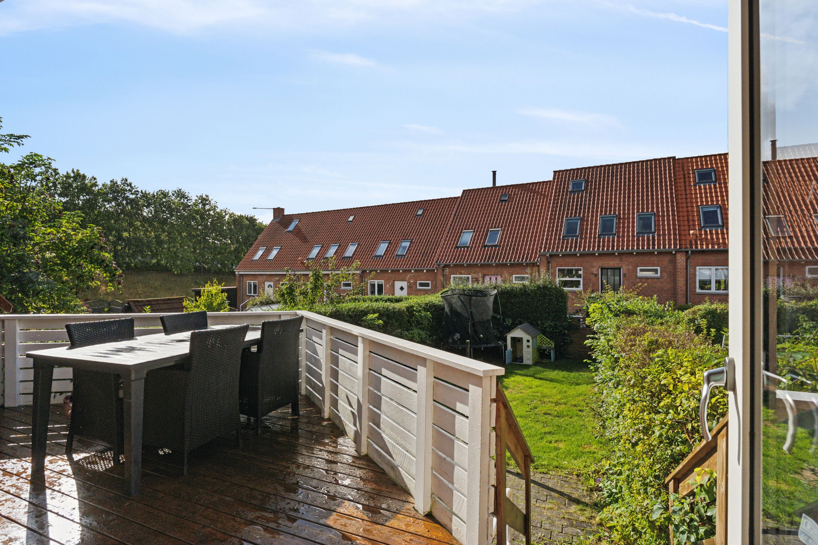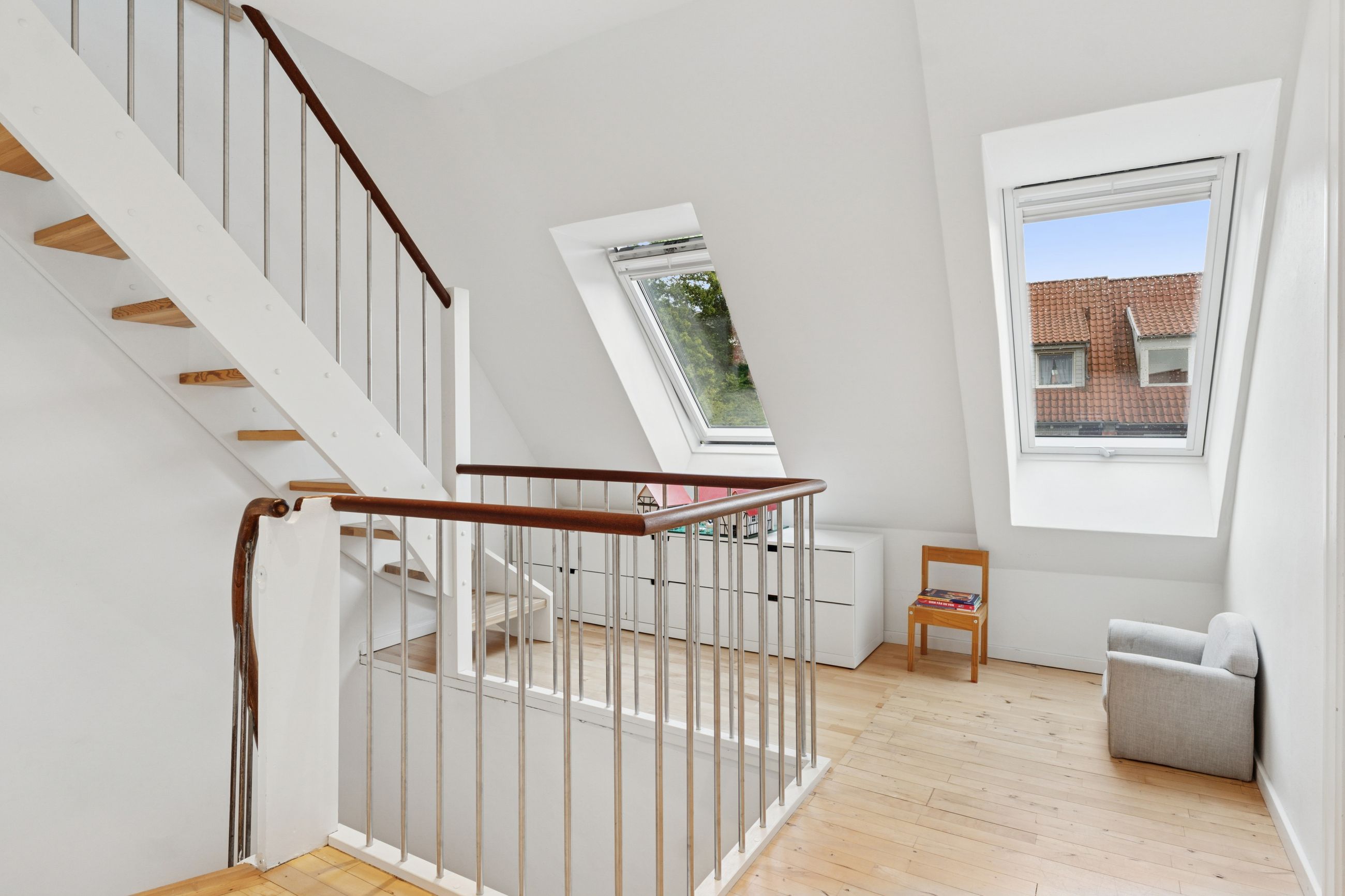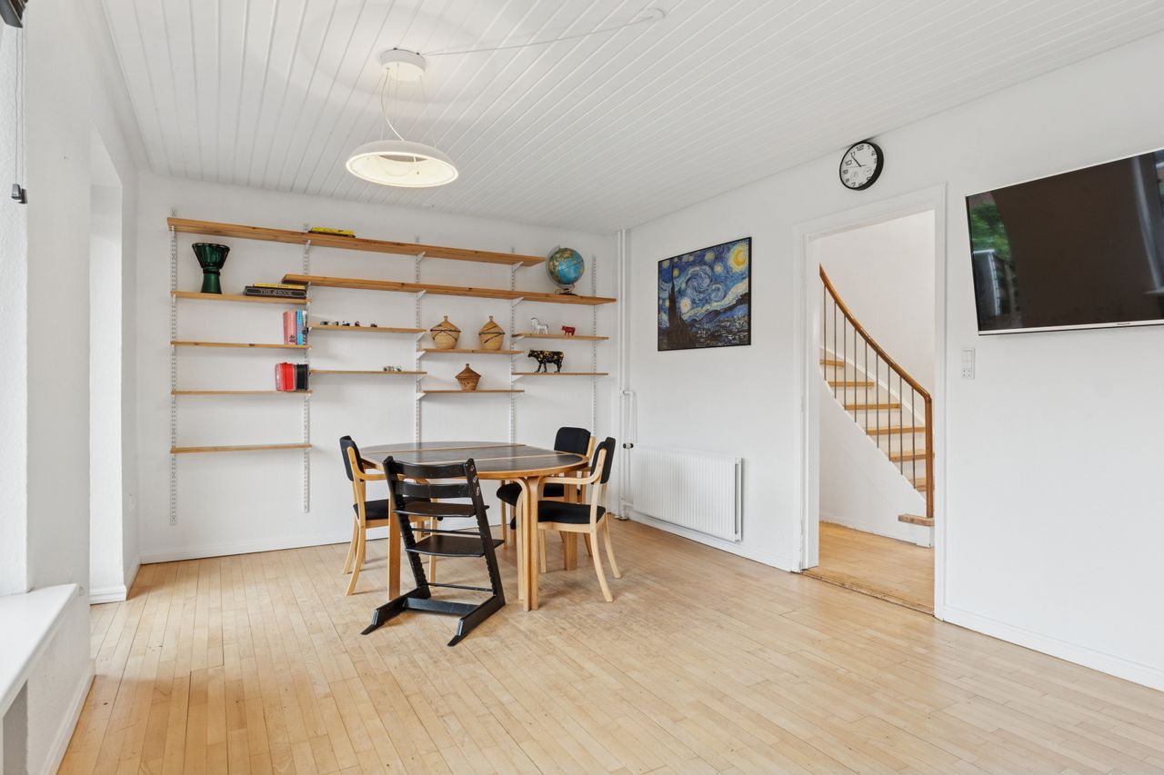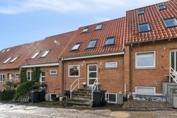 Attraktivt beliggende rækkehus på hele 140 etagemeter plus hems - Stueplan med stort vinduesparti og direkte udgang til hævet vestvendt terrasse- Hele 2 badeværelser- 1. sal nyere renoveret - Skøn rummelig nyere hems- God og tør kælder med mange muligheder- Tag fra 2020- Fantastisk altan, terrasse og skøn lukket have- 10 minutters gang til Aalborgs største grønne oase, Østerådalen BELIGGENHED:Velkommen til dette populære rækkehus med en meget attraktiv beliggenhed som det 4. i rækken fra vejen. Foran hoveddøren får du parkering lige udenfor døren.Rækkehuset er beliggende centralt i forhold til Aalborg Centrum og det tager kun 10 minutter på cykel at komme til Aalborg C.Området har fokus på børnenes aktivitetsmuligheder, grønne arealer, skole, børnehaver og fritidsaktiviteter. Her er ligeledes nem adgang til indkøb, busstoppested, bakkede naturoplevelser i Gug Alper, Kongshøjskoven, Østerådalen og Golfparken, svømmehal ved Gigantium, sport og kultur. Universitetet, Aalborg centrum og tilkørsel til motorvejen nås på kun 5 minutter. BESKRIVELSE BOLIG:Velkommen indenfor i åben entré med adgang til fint lyst badeværelse. Fra entréen ledes du helt naturligt ind i husets køkken med spiseplads. Fra køkkenet er der adgang til skøn hyggelig stue med dejligt lysindfald. Fra stuen er der udgang til skøn nyere vestvendt altan.På 1. salen finder du 1 godt lyst værelse, samt et stort soveværelse med walk-in-closet, som kan laves til et ekstra værelse. Fra gangen er der trappe til nyere skøn hems, der er det perfekte lege-/multirum eller hjemmekontor.Der er endvidere højloftet kælder hvor der er funktionelt vaskerum med god bord- og skabsplads, samt vaskemaskine og tørretumbler. Herudover husets andet badeværelse med bruseniche. Endelig er der et stort opholdsrum, der er perfekt til multirum, træningsrum, ekstra stue eller hvad der passer til jer. Kælderen har egen indgang fra begge sider af huset, både direkte fra din p-plads og fra haven. Haven er ugeneret og byder på skønt græsareal og som nævnt en dejlig vestvendt altan, der er hævet så du får dejlig udsigt og gode muligheder for at nyde solen. Derudover er der terrasse i niveau med haven, denne er også vestvendt.