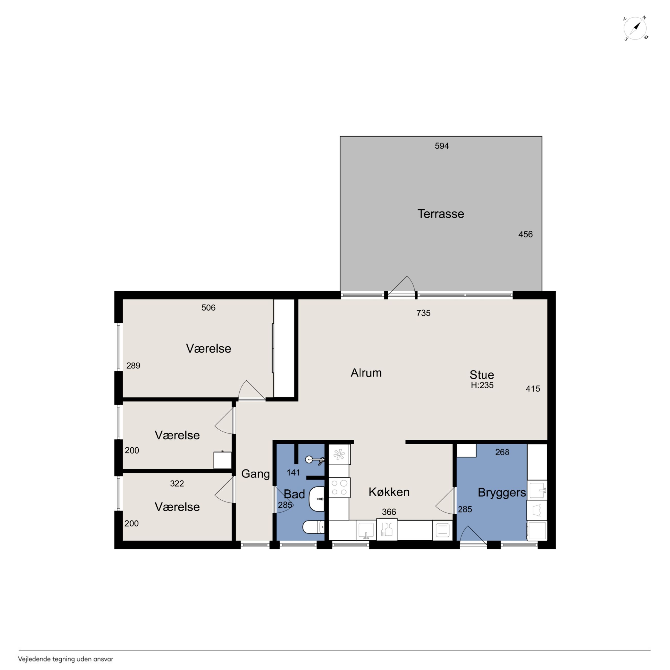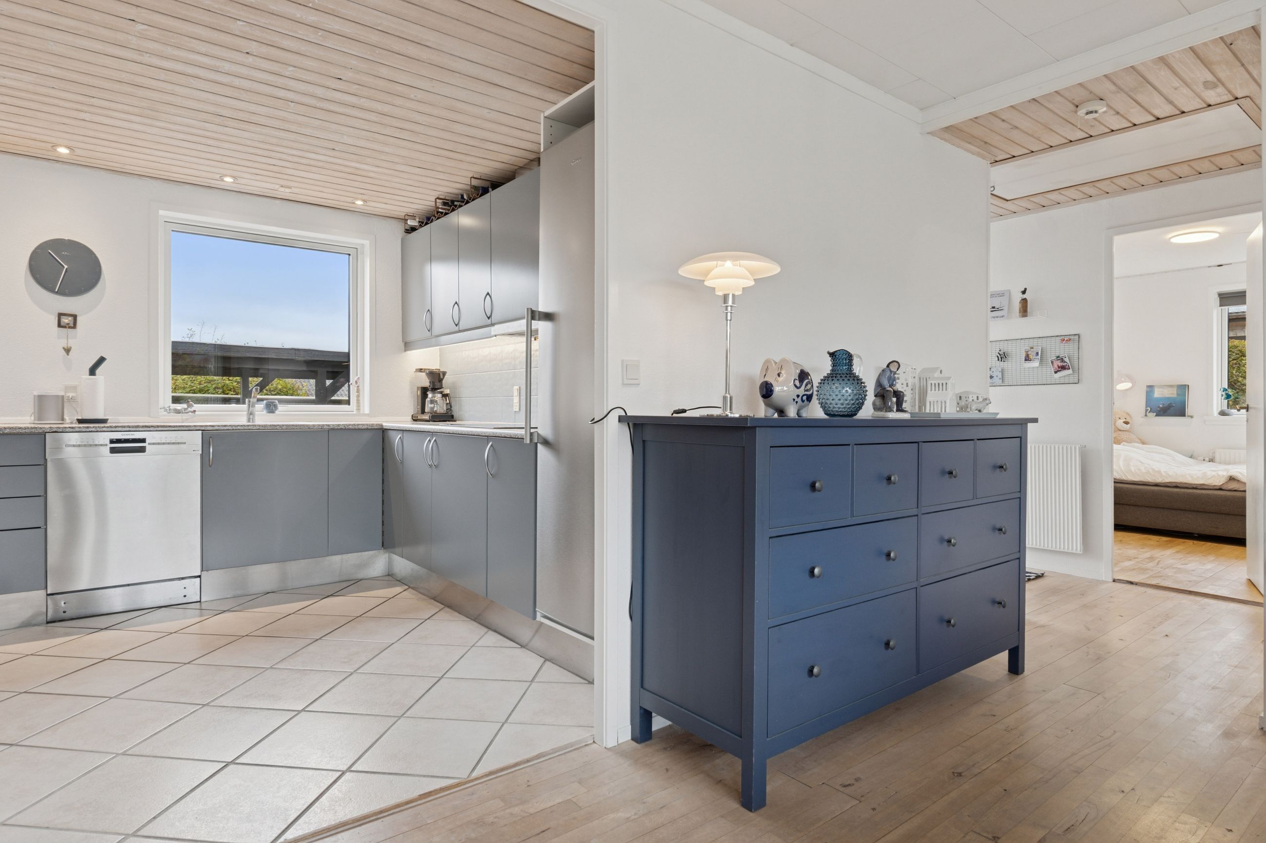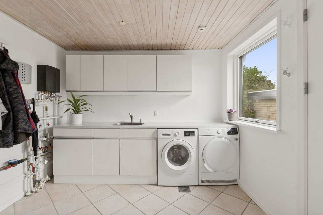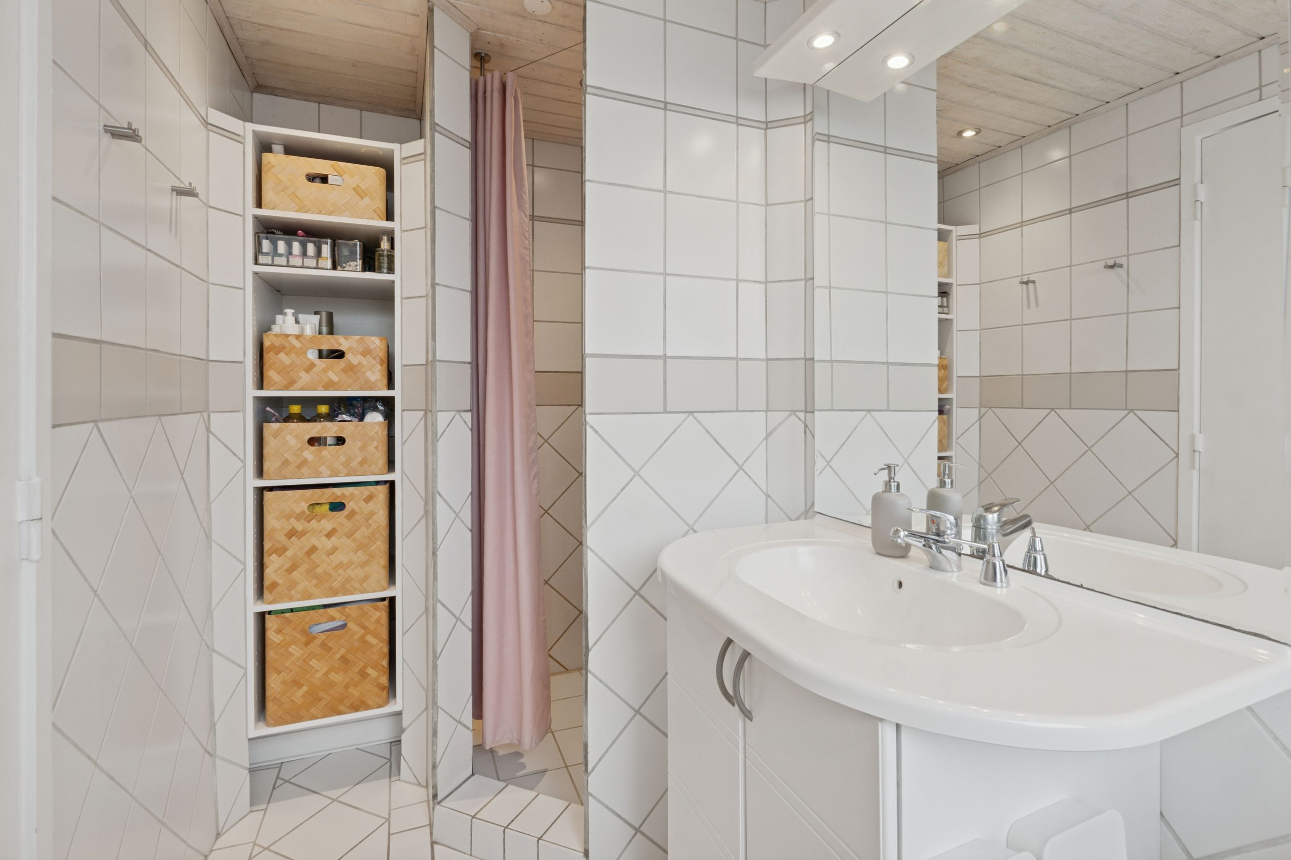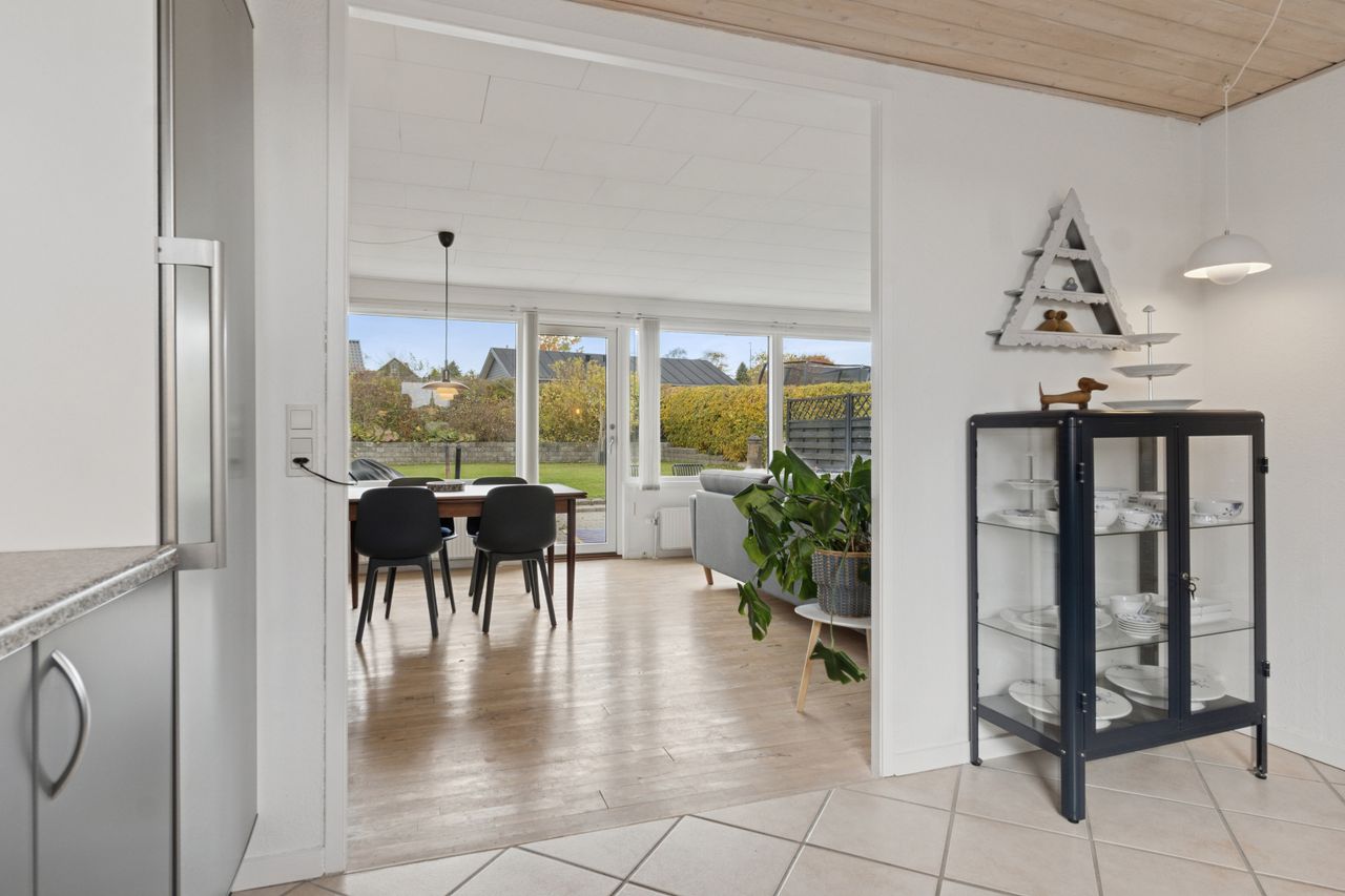Velkommen indenfor i pænt kombineret bryggers og entré med god plads til at tage imod gæster og komme af med overtøjet. Herfra ledes du ind i rummeligt køkken, med gulvvarme, hvor der er godt med bord- og opbevaringsplads. Køkkenet er i åben forbindelse med stuen, hvor der er plads til både langbordet, så I kan hygge med gæsterne og til sofagruppen til afslapning. Fra stuen er der udgang til syd-vesvendt terrasse og haven. Fra stuen er der ligeledes adgang til værelsesafdelingen med to gode børneværelser, stort soveværelse med skabsvæg, samt dejligt badeværelse med bruseniche og gulvvarme.
