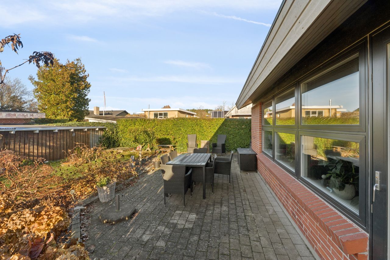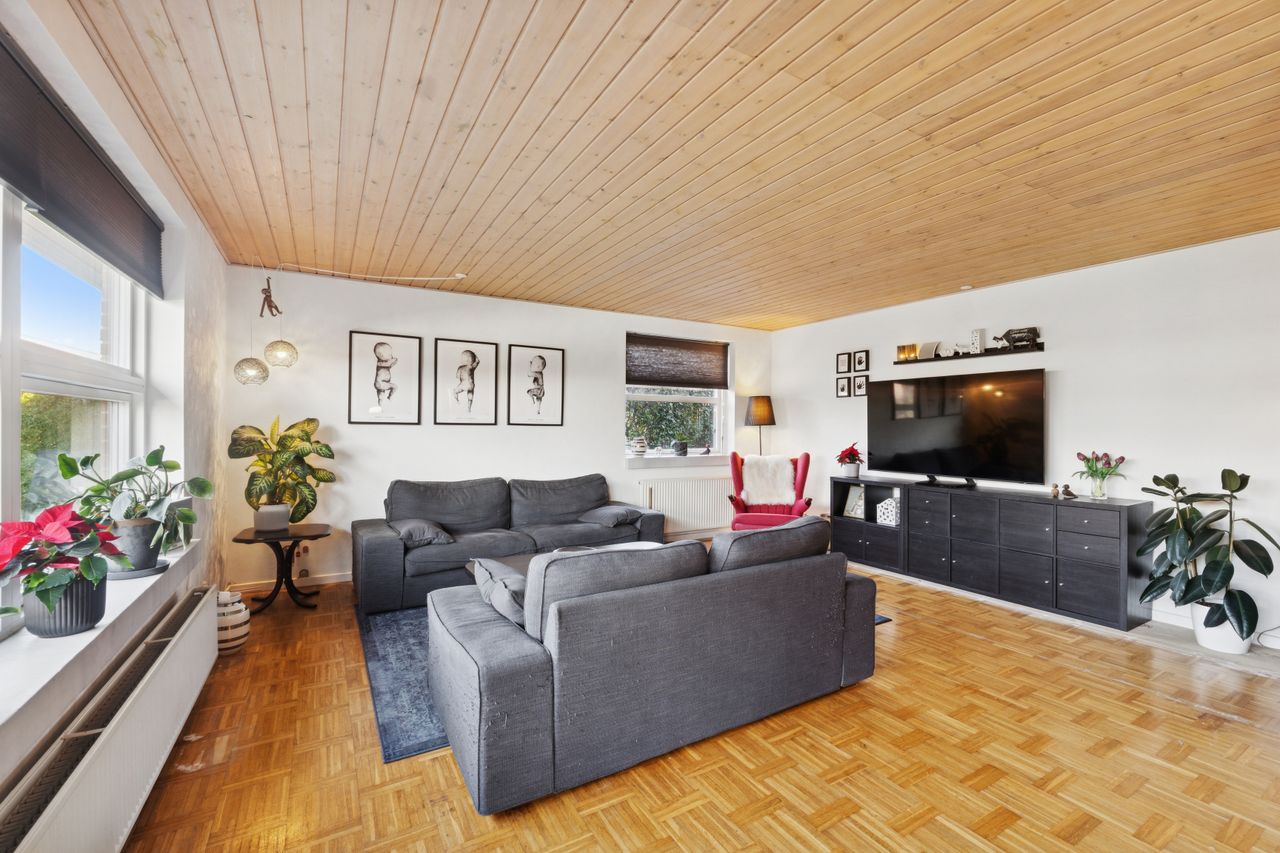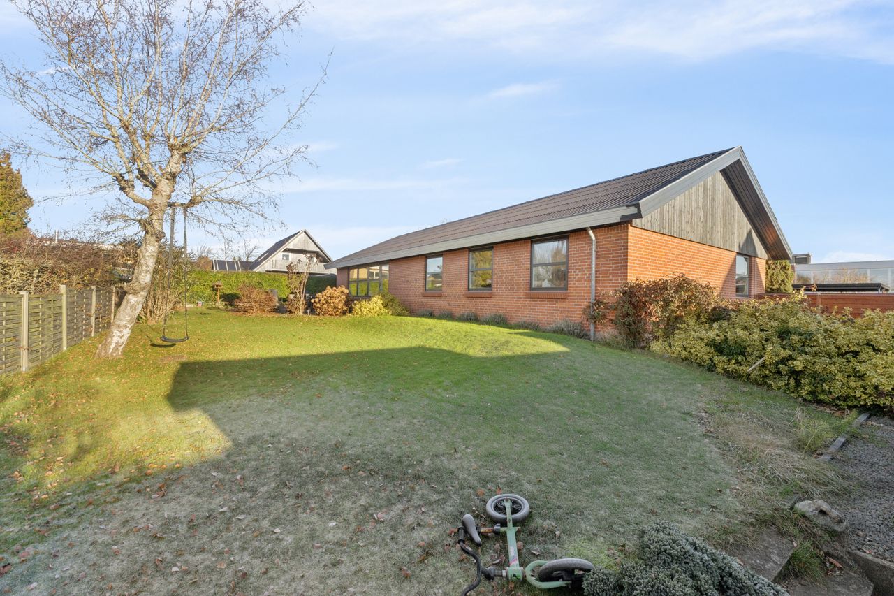 Rummelig velholdt villa - Indflytningsklar meget velholdt villa- Lækkert køkken-alrum moderniseret i 2024- Badeværelse og gæstetoilet- Skøn lukket have- Træ-alu vinduer og døre fra 2022- Hulmursisoleret og efterisoleret i 2022- Installation til ladeboks er installeret BELIGGENHED:Denne velholdte familievilla fremstår indflytningsklar og ligger meget centralt og attraktivt i Gug. Beliggenheden nær Gug Skole, gør huset særdeles attraktivt for børnefamilien med let adgang til alt via stier. Gug er et attraktivt område med fokus på børnenes aktivitetsmuligheder, grønne arealer og meget velfungerende stisystem, til både skole, børnehaver og fritidsaktiviteter. Her er ligeledes nem adgang til indkøb, busstoppested, bakkede naturoplevelser i Gug Alper eller Kongshøjskoven, Aalborg Universitet, svømmehal ved Gigantium, sport og kultur. Det kommende Supersygehus, Aalborg centrum og tilkørsel til motorvejen nås på kun 5 minutter. BESKRIVELSE BOLIG:Velkommen indenfor i forgang, hvorfra du ledes ind i fordelingsgang med adgang til gæstetoilet, stort badeværelse, samt soveværelse og 3 gode værelser. Endvidere er der skønt køkken-alrum der er moderniseret i 2024 med masser af bord- og opbevaringsplads, samt en dejlig kogeø. I alrummet er der god plads til langbordet, så du kan samle familie og venner til hyggelige timer. Alrummet er i åben forbindelse med hyggelig stue med skønt lysindfald fra det store sydvendte vinduesparti, hvorfra der også er udgang til skøn terrasse og haven. Endelig er der fra køkkenet adgang til det uundværlige rummelige bryggers. Der er skøn lukket have med god plads til børnenes leg, boldspil og trampolin. På terrassen er der god plads til grill, hygge og afslapning. Der er tilhørende garage med elport, samt skur og cykelly.