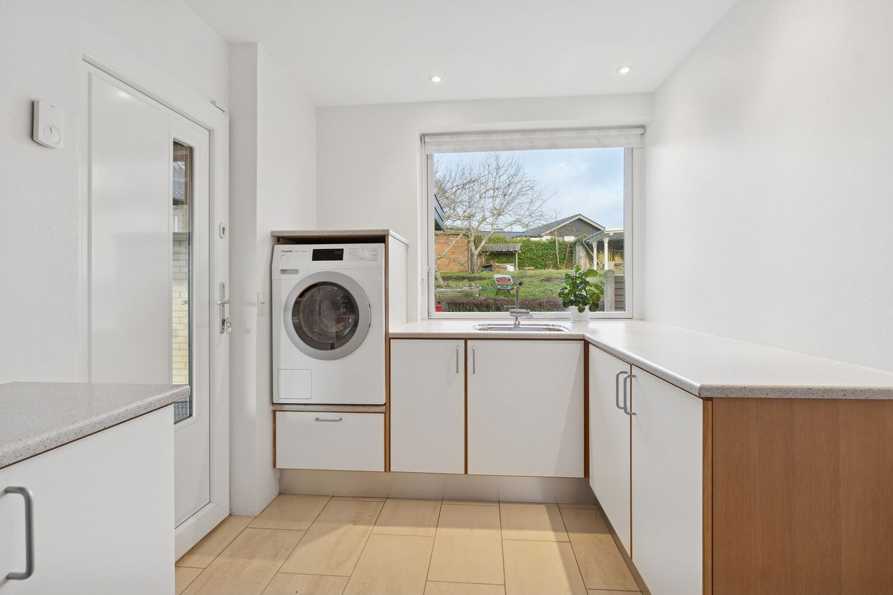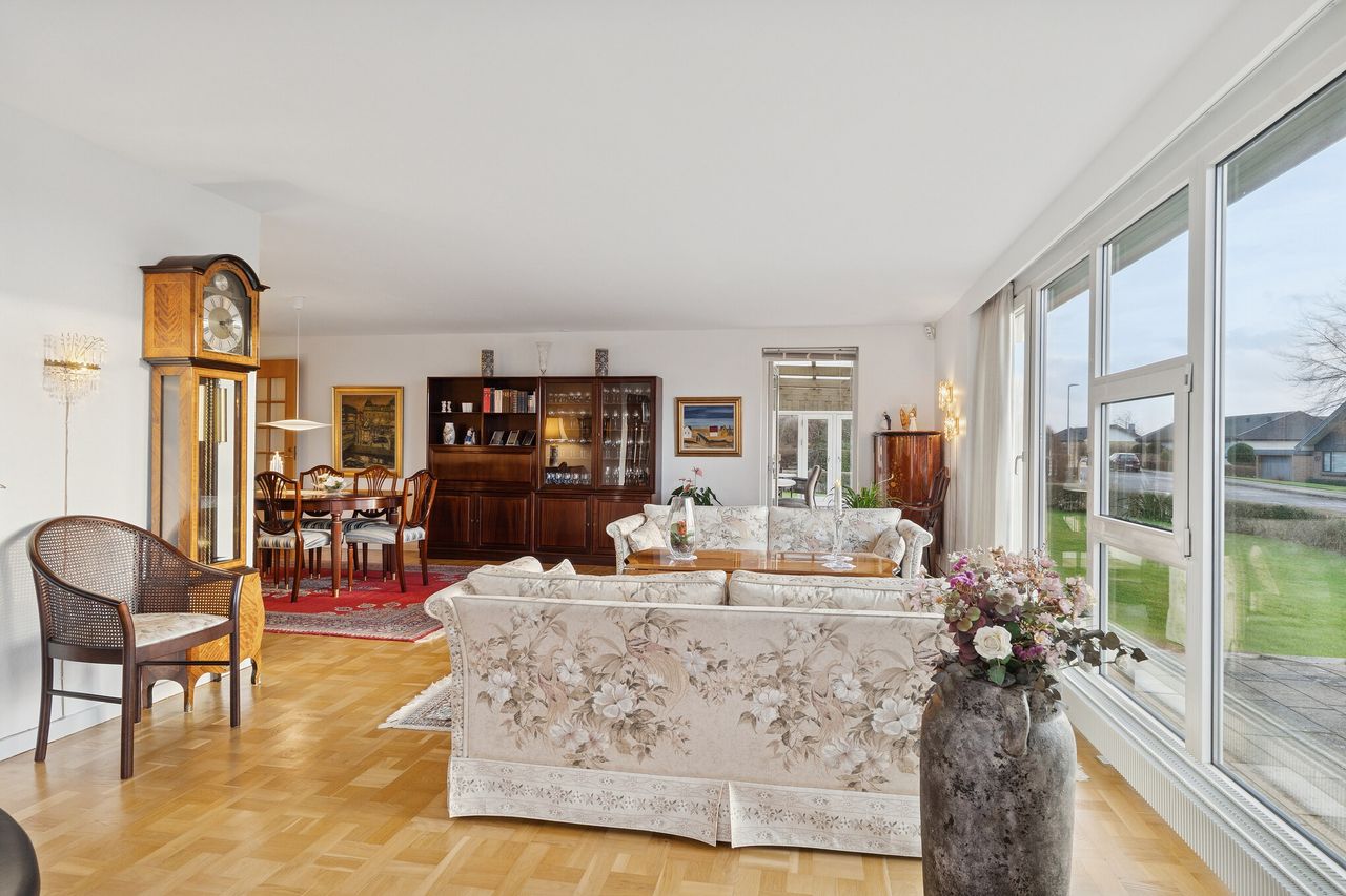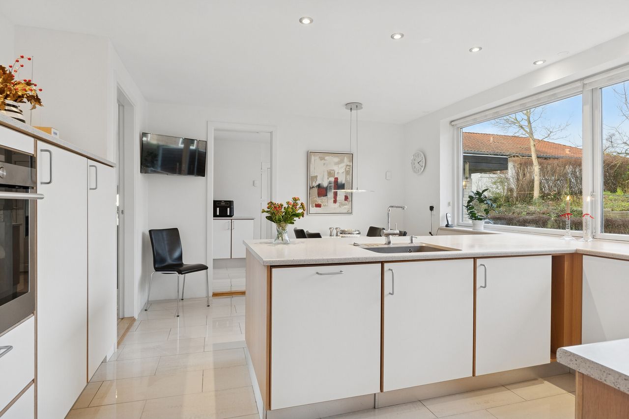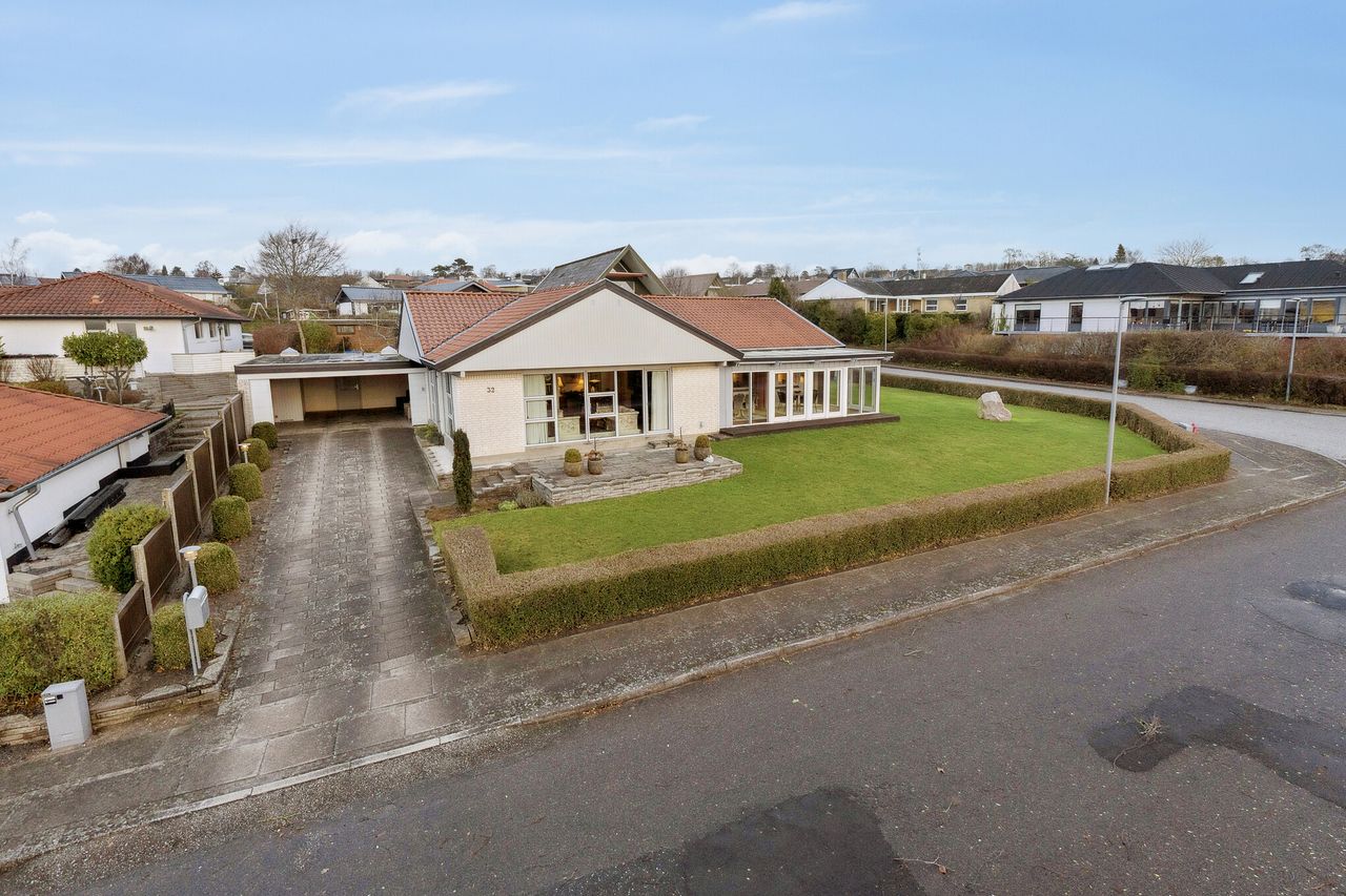 Velholdt villa på attraktiv beliggenhed i Gug med udsigt over Visse - Skønt køkken med spiseplads- Dejlig stor vinkelstue- Stort badeværelse og gæstetoilet- Stort soveværelse og hele 3 gode værelser- Skøn ugeneret lukket have- Stor carport med port og godt redskabsrum BELIGGENHED:Denne skønne bolig ligger på en af de bedste beliggenheder i Gug på lukket stikvej nær Gug Skole. Beliggenheden lige overfor stien, der går ned til Gug Hallen, børnehaven og Gug Skole, gør huset særdeles attraktivt for børnefamilien eller parret der bare vil bo roligt og fantastisk med let adgang til alt via stier. Gug er et attraktivt område med fokus på børnenes aktivitetsmuligheder, grønne arealer og meget velfungerende stisystem, til både skole, børnehaver og fritidsaktiviteter. Her er ligeledes nem adgang til indkøb, busstoppested, bakkede naturoplevelser i Gug Alper, Østerådalen eller Kongshøjskoven, svømmehal ved Gigantium, sport og kultur. Det kommende Supersygehus, Aalborg centrum og tilkørsel til motorvejen nås på kun 5 minutter. BESKRIVELSE BOLIG:Velkommen indenfor i rummelig forgang med gulvvarme og god plads til at tage imod gæsterne og komme af med overtøjet. Herfra ledes du helt naturligt ind i husets store skønne vinkelstue med skønt lysindfald fra det store sydvendte vinduesparti. Herfra er der adgang til endnu en hyggelig stue. Det samlede store stueareal giver flere gode muligheder for anvendelse og er du til stort køkken-alrum, så kan der også nemt åbnes til køkkenet som du finder lige ved siden af. Køkkenet har adgang fra stuen, forgangen og det store lyse bryggers med gulvvarme og vaskemaskinen oppe i arbejdshøjde. Bryggerset er med adgang direkte fra carporten, så du kan komme tørskoet ind med dine dagligvarer. Køkkenet er et stort lyst kvalitetskøkken fra 2013 med elementer fra Modulia, samt godt med bord- og opbevaringsplads. Herudover er spiseplads i køkkenet. Tilbage i stuen er der også udgang til stor skøn sydvendt udestue - både fra udestuen og stuen, har du en skøn udsigt mod syd udover Kongshøjskoven. Endelig er der fra forgangen endvidere adgang til pænt lyst gæstetoilet med gulvvarme, samt adgang til værelsesafdelingen, hvor du finder stort soveværelse med skabsvæg og tre gode værelser med skabe, samt stort lyst badeværelse fra 2012 med gulvvarme, dobbelt håndvask og stor bruseniche. Skøn ugeneret have rundt om huset med god plads til børnenes leg, boldspil og trampolin. Herudover stor terrasse med god plads til grill og hygge. Som nævnt tilhørende stor carport med redskabsrum og nyere port.