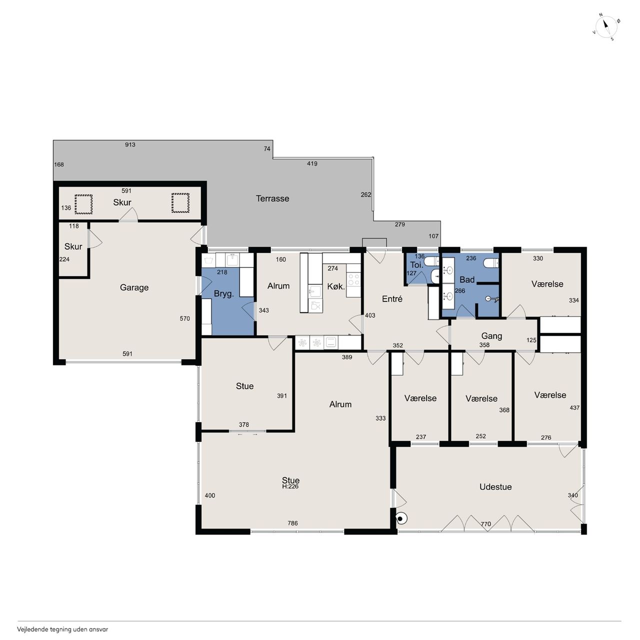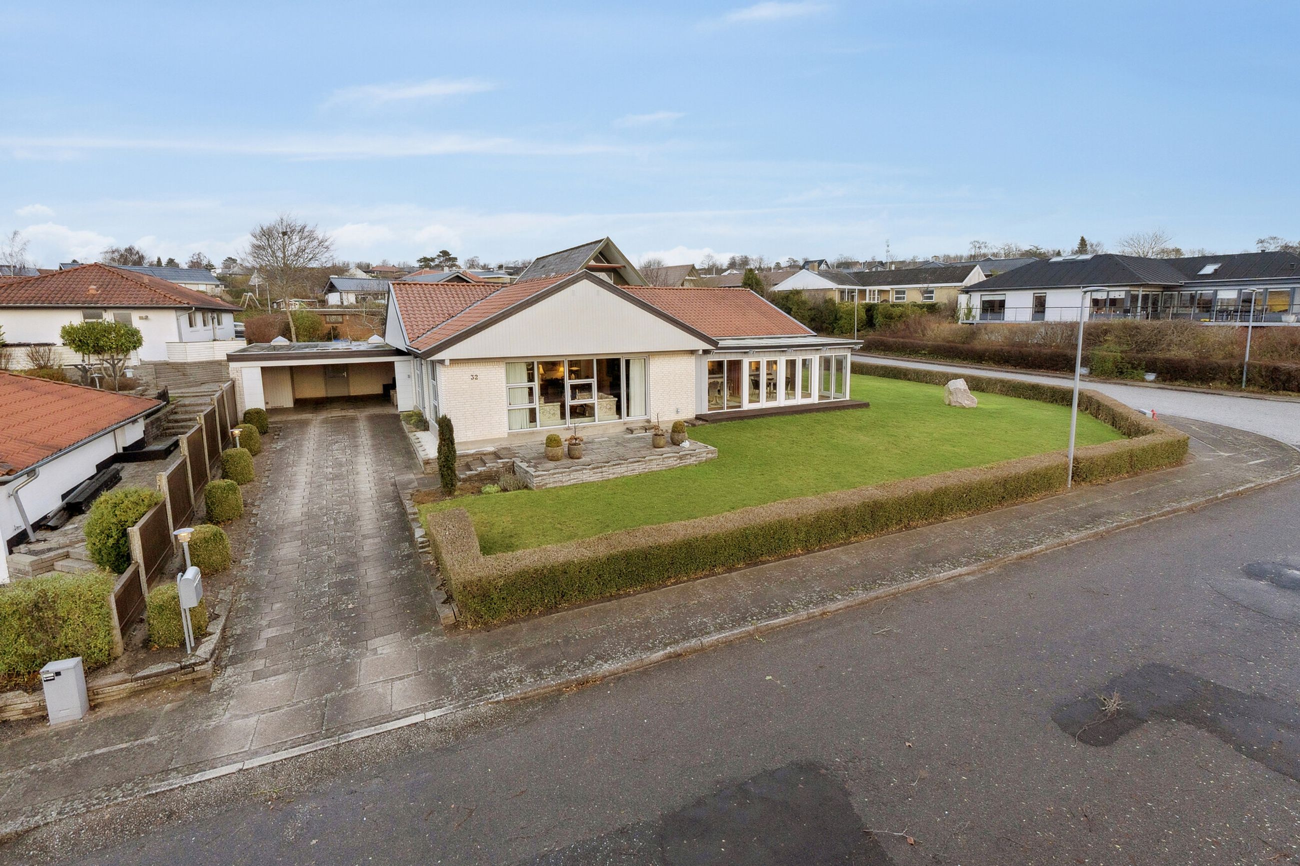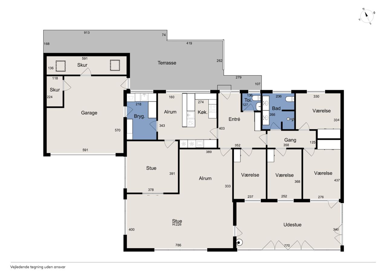 Velholdt villa på attraktiv beliggenhed i Gug med udsigt over Visse - Skønt køkken med spiseplads- Dejlig stor vinkelstue- Stort badeværelse og gæstetoilet- Stort soveværelse og hele 3 gode værelser- Skøn ugeneret lukket have- Stor carport med port og godt redskabsrum BELIGGENHED:Denne skønne bolig ligger på en af de bedste beliggenheder i Gug på lukket stikvej nær Gug Skole. Beliggenheden lige overfor stien, der går ned til Gug Hallen, børnehaven og Gug Skole, gør huset særdeles attraktivt for børnefamilien eller parret der bare vil bo roligt og fantastisk med let adgang til alt via stier. Gug er et attraktivt område med fokus på børnenes aktivitetsmuligheder, grønne arealer og meget velfungerende stisystem, til både skole, børnehaver og fritidsaktiviteter. Her er ligeledes nem adgang til indkøb, busstoppested, bakkede naturoplevelser i Gug Alper, Østerådalen eller Kongshøjskoven, svømmehal ved Gigantium, sport og kultur. Det kommende Supersygehus, Aalborg centrum og tilkørsel til motorvejen nås på kun 5 minutter. BESKRIVELSE BOLIG:Velkommen indenfor i rummelig forgang med gulvvarme og god plads til at tage imod gæsterne og komme af med overtøjet. Herfra ledes du helt naturligt ind i husets store skønne vinkelstue med skønt lysindfald fra det store sydvendte vinduesparti. Herfra er der adgang til endnu en hyggelig stue. Det samlede store stueareal giver flere gode muligheder for anvendelse og er du til stort køkken-alrum, så kan der også nemt åbnes til køkkenet som du finder lige ved siden af. Køkkenet har adgang fra stuen, forgangen og det store lyse bryggers med gulvvarme og vaskemaskinen oppe i arbejdshøjde. Bryggerset er med adgang direkte fra carporten, så du kan komme tørskoet ind med dine dagligvarer. Køkkenet er et stort lyst kvalitetskøkken fra 2013 med elementer fra Modulia, samt godt med bord- og opbevaringsplads. Herudover er spiseplads i køkkenet. Tilbage i stuen er der også udgang til stor skøn sydvendt udestue - både fra udestuen og stuen, har du en skøn udsigt mod syd udover Kongshøjskoven. Endelig er der fra forgangen endvidere adgang til pænt lyst gæstetoilet med gulvvarme, samt adgang til værelsesafdelingen, hvor du finder stort soveværelse med skabsvæg og tre gode værelser med skabe, samt stort lyst badeværelse fra 2012 med gulvvarme, dobbelt håndvask og stor bruseniche. Skøn ugeneret have rundt om huset med god plads til børnenes leg, boldspil og trampolin. Herudover stor terrasse med god plads til grill og hygge. Som nævnt tilhørende stor carport med redskabsrum og nyere port.