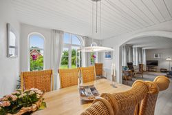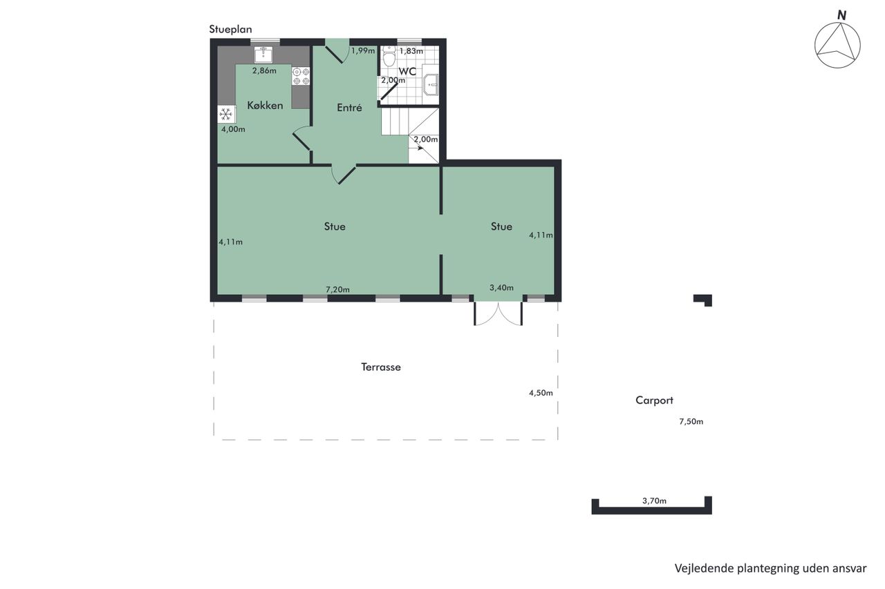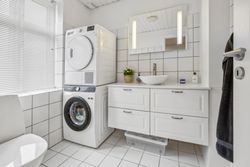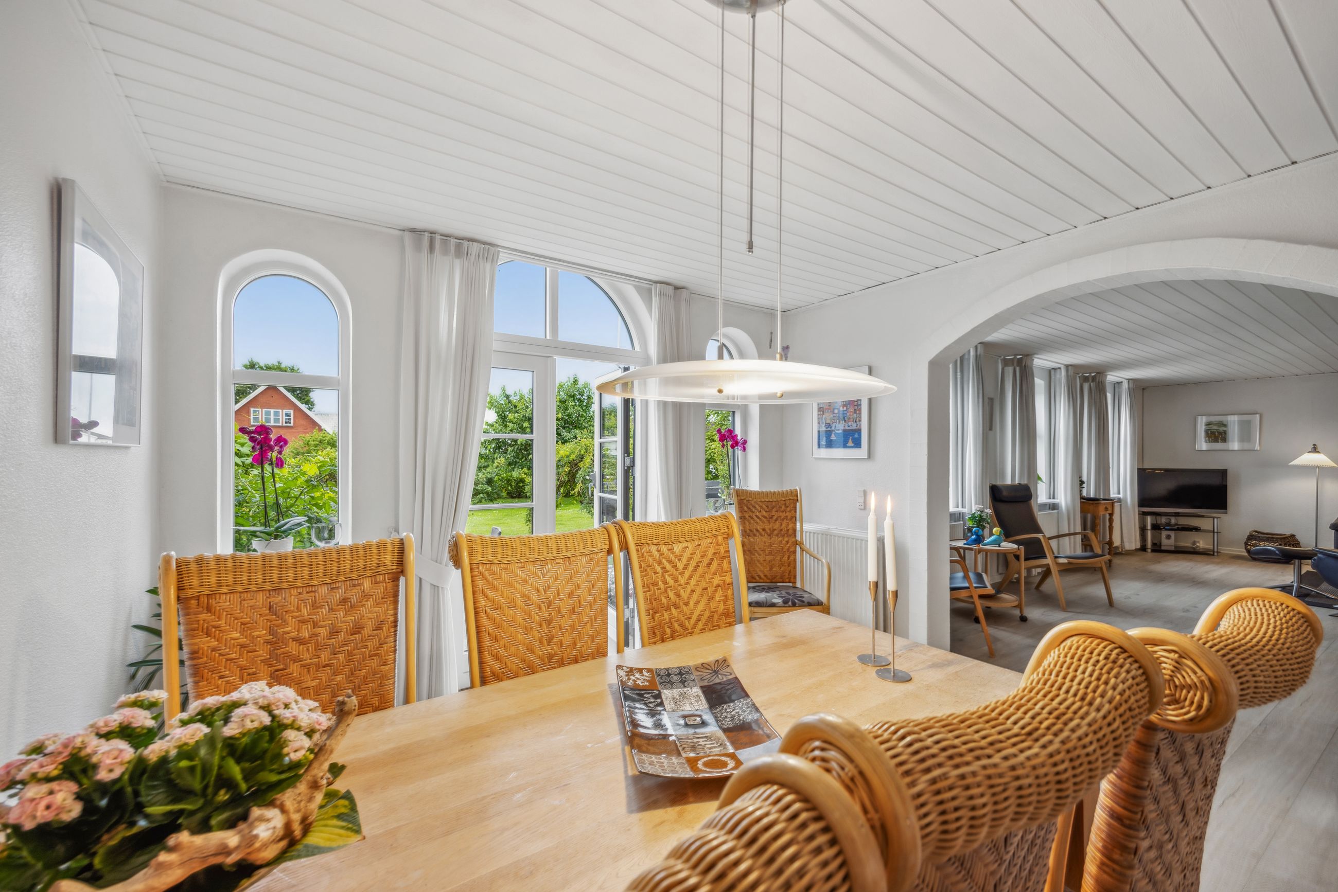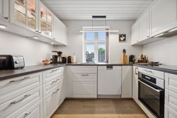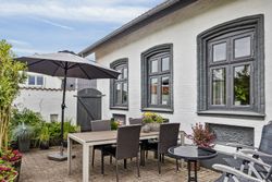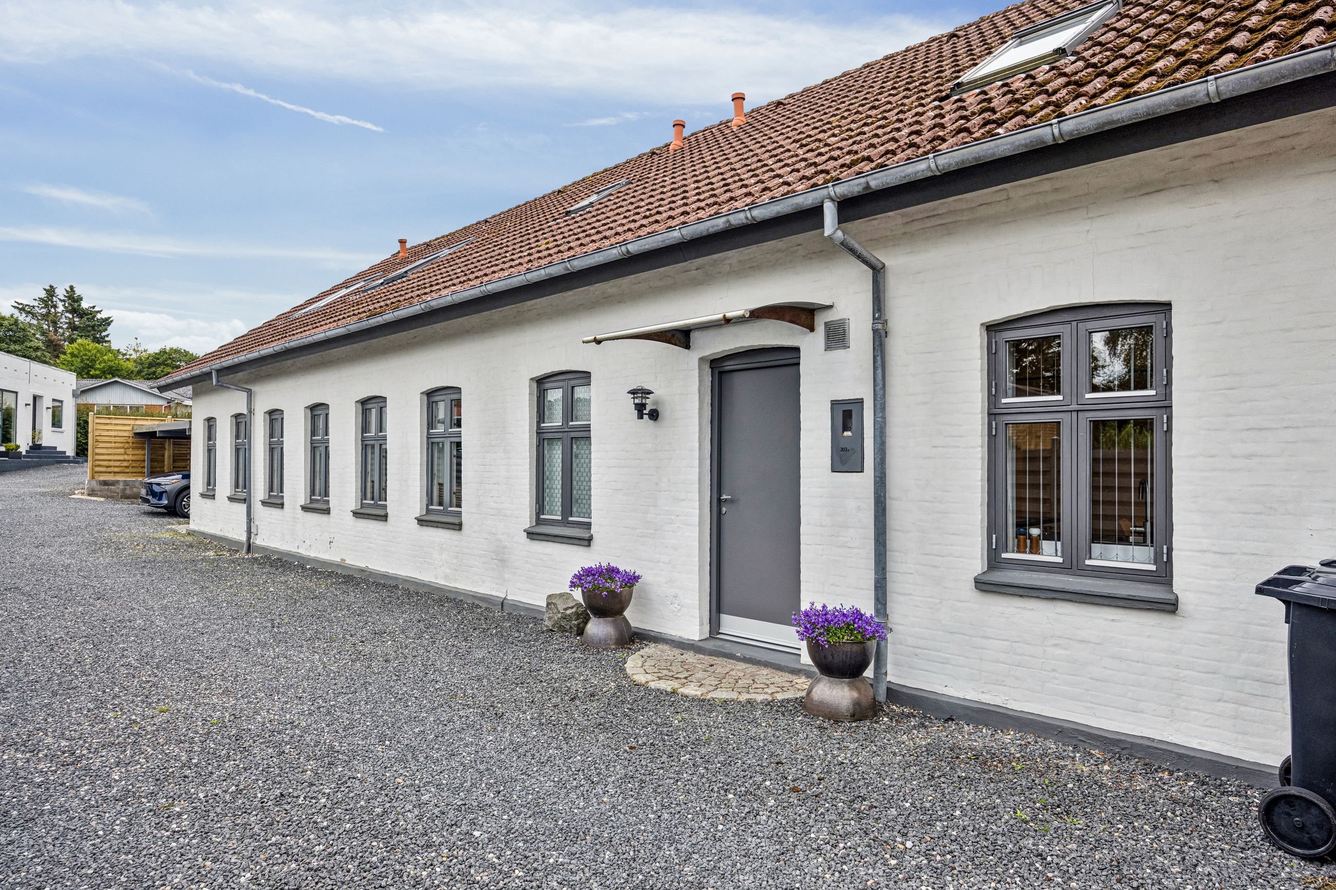 I det charmerende rækkehus, bydes du velkommen i en skøn lys entré med plads til at modtage gæster og komme af med overtøjet. Fra entréen finder du adgang til boligens lyse gæstetoilet, der er moderniseret i 2022 og med vaskemaskine og tørretumbler, skønt køkken fra 2022 med spiseplads, masser af bord- og opbevaringsplads. Endelig er det også fra entréen at der er trappe til 1. sal. Entréen leder dig helt naturligt ind i husets store todelte stue med nye gulve og vinduer fra 2022, hvor der er god plads til både langbordet og sofagruppen. Fra stuen er der udgang til rækkehusets terrasse og have.