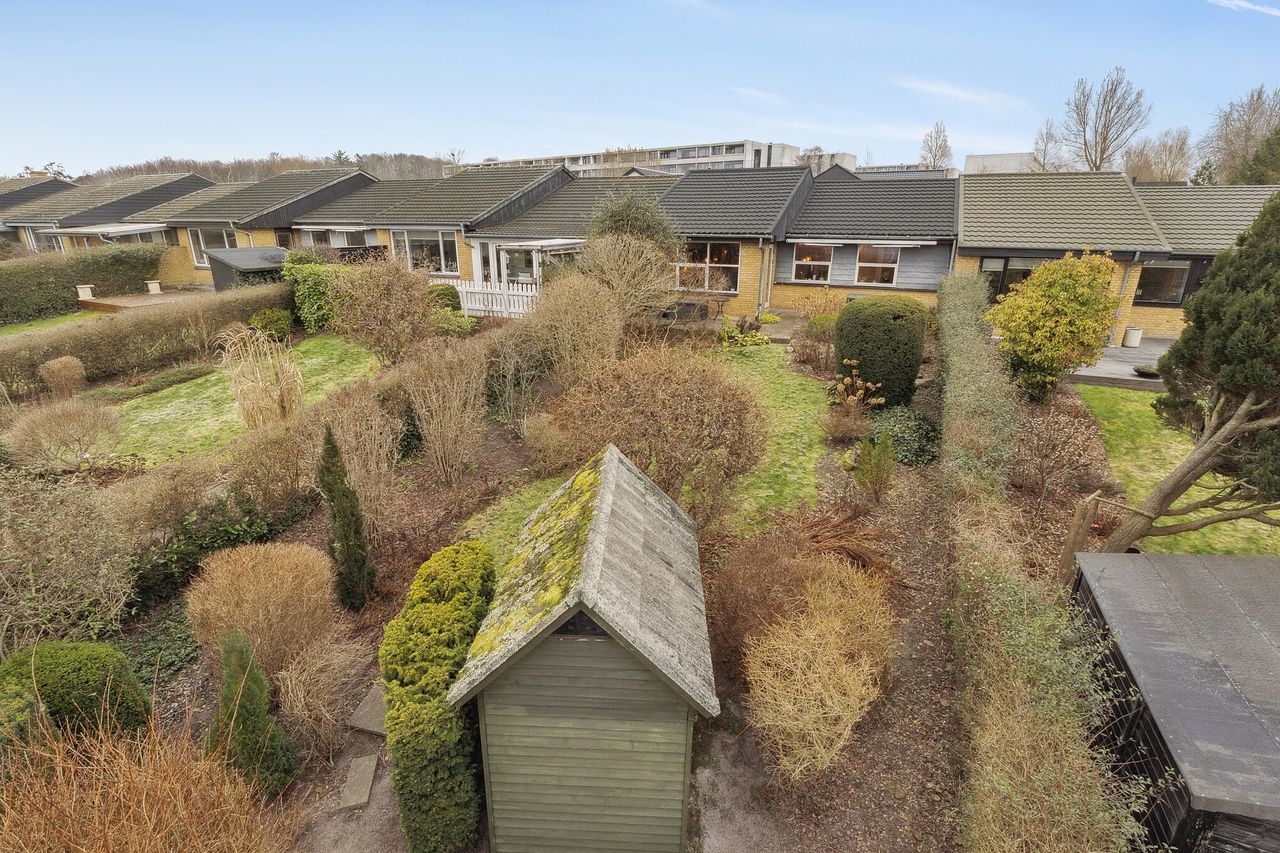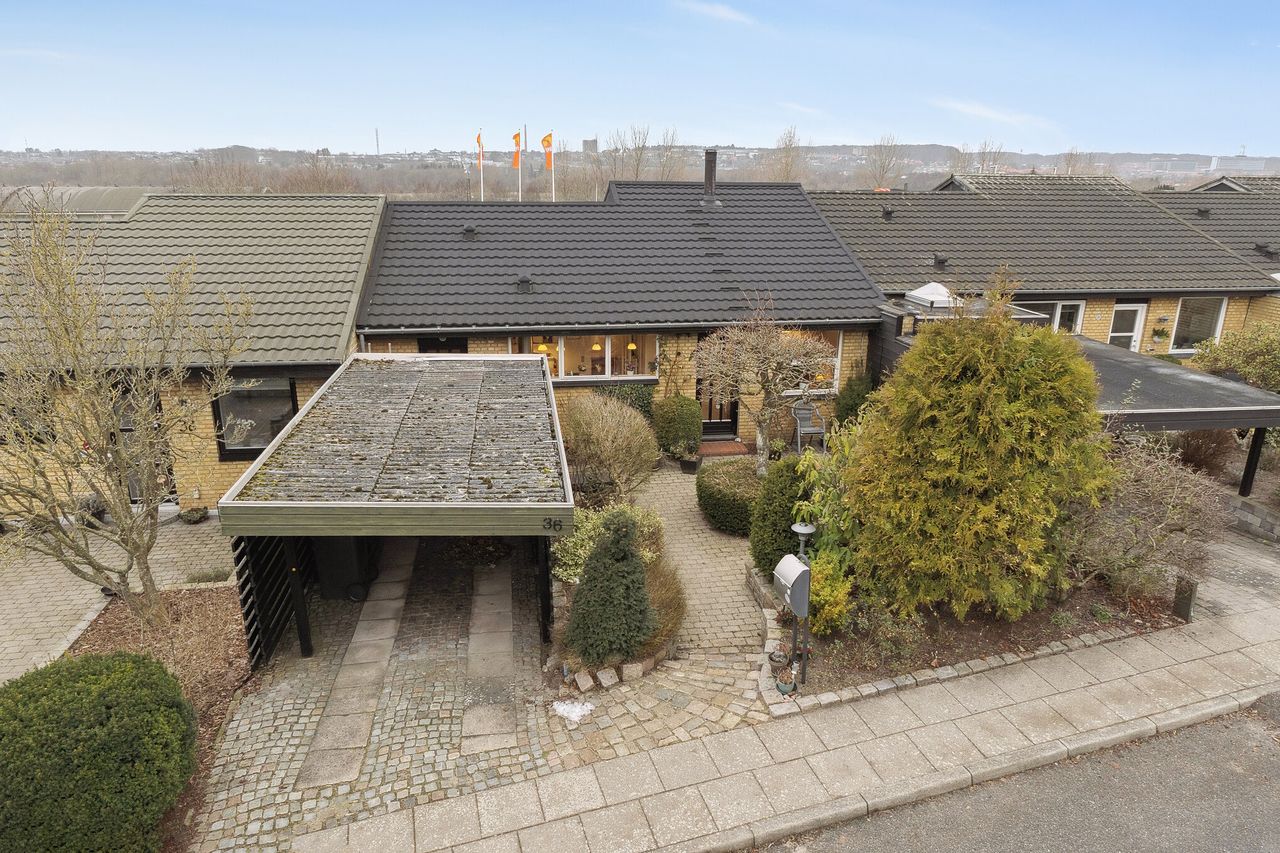 BELIGGENHED:Skønt delvist moderniseret etplans rækkehus med attraktiv beliggenhed centralt i Gug nær alt. Gug er et attraktivt område med mange aktivitetsmuligheder, grønne arealer og nem adgang til skoler, institutioner, indkøb, busstoppested, Østerådalen, svømmehal ved Gigantium, sport og kultur. Det nye Supersygehus, Aalborg centrum og motorvejen nås på 5 min. BESKRIVELSE BOLIG:Velkommen til et dejligt lyst delvist renoveret etplans rækkehus med nyere tag.Du træder indenfor i rummelig forgang med god plads til at tage imod gæsterne. Videre ind i huset er der adgang til et godt værelse, ligesom du helt naturligt ledes ind i den dejlige store lyse vinkelstue med hyggelig brændeovn og skønt lysindfald fra det store vestvendte vinduesparti, hvorfra der også er udgang til terrasse og have. Herudover er der soveværelse med god skabsplads, fint badeværelse og rummeligt køkken med godt med bord- og skabsplads, samt spiseplads. Endelig er der stort bryggers med indgang. Foran huset er der stort terrasseområde, hvor morgenkaffen kan nydes. Derudover er der bag huset, skøn ugeneret vestvendt have og terrasse så aftensolen kan nydes i fulde drag. Tilhørende carport på egen grund, med redskabsrum, samt nyere skur i haven.