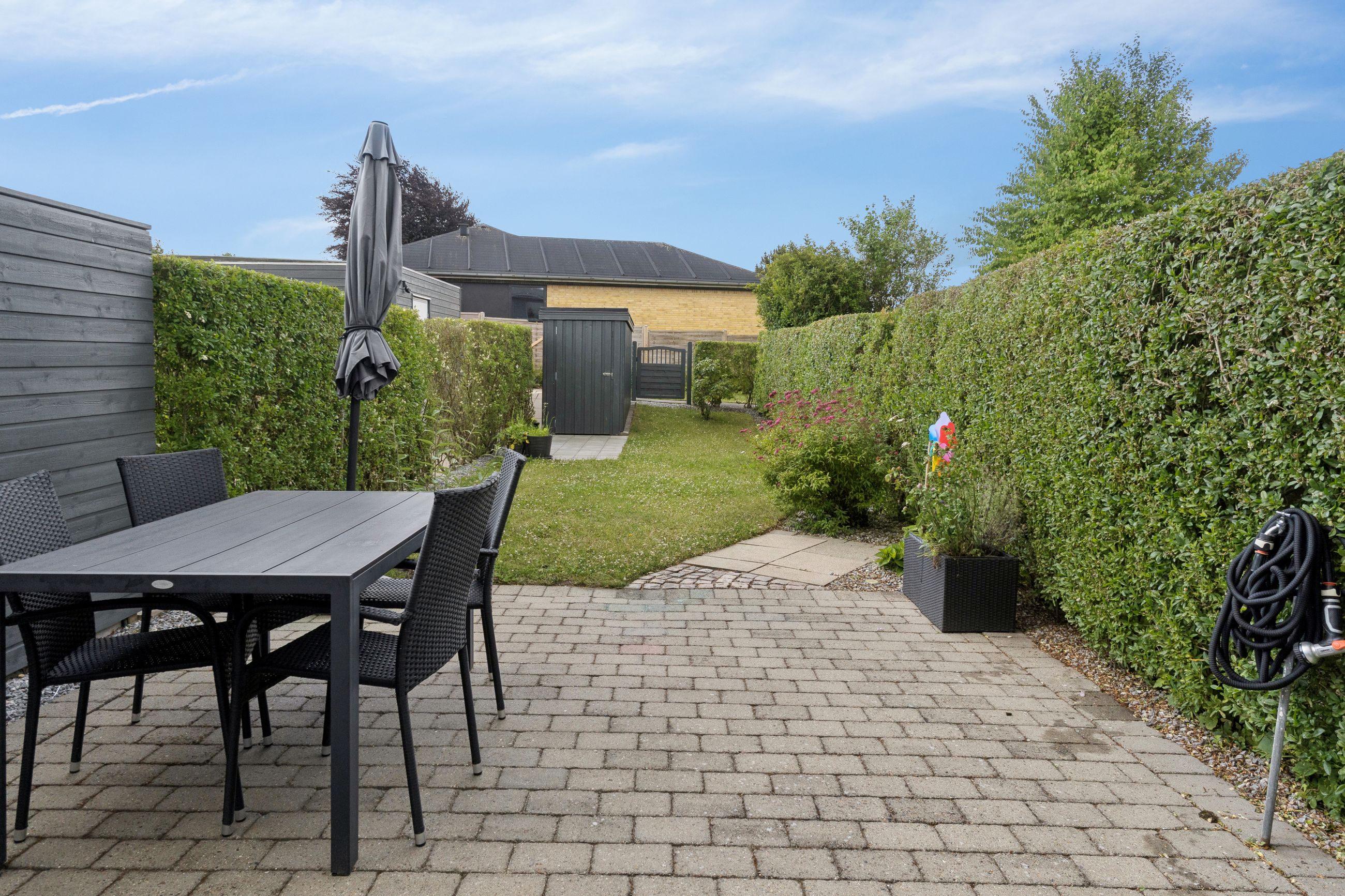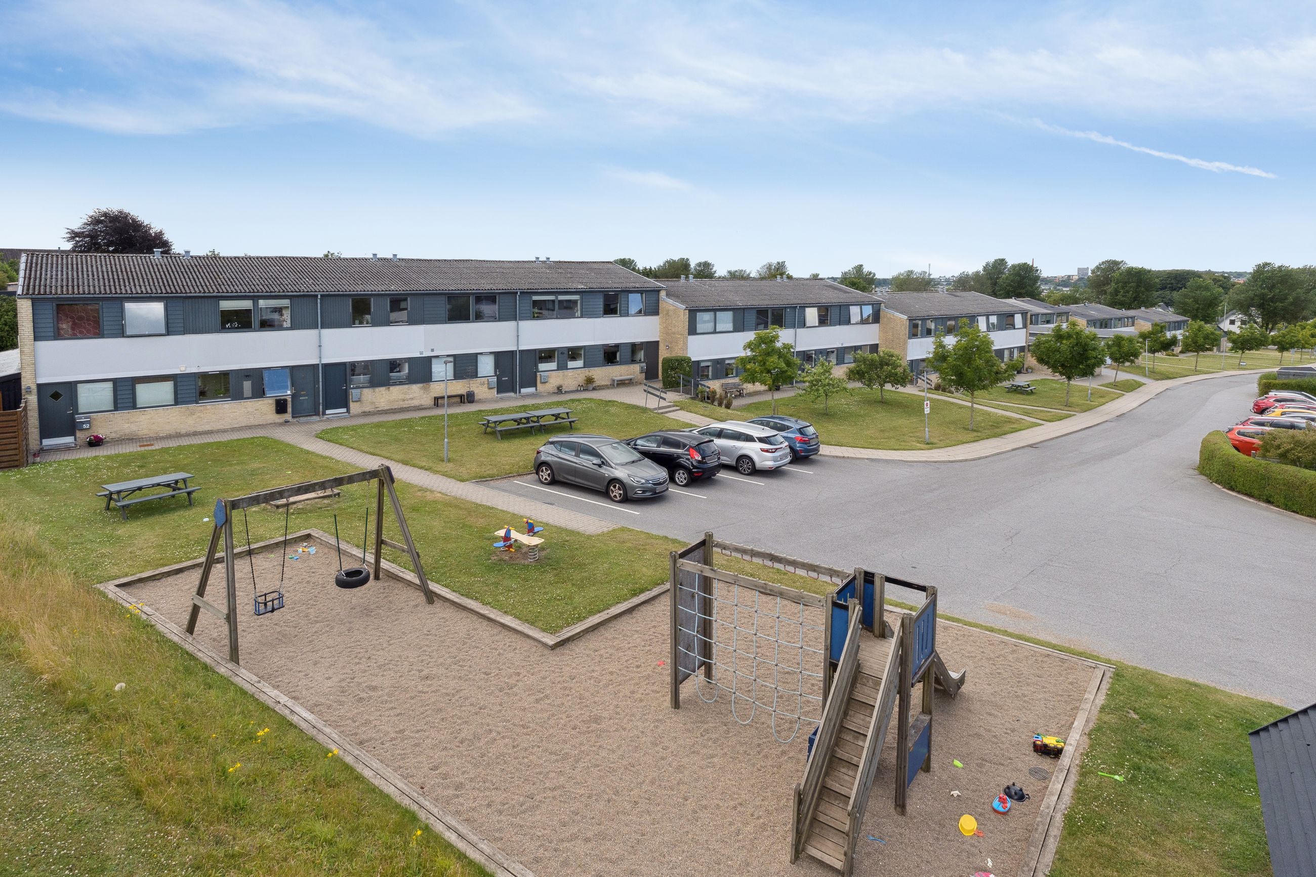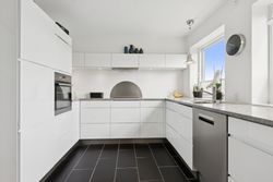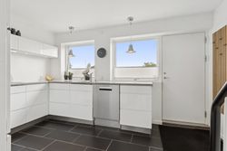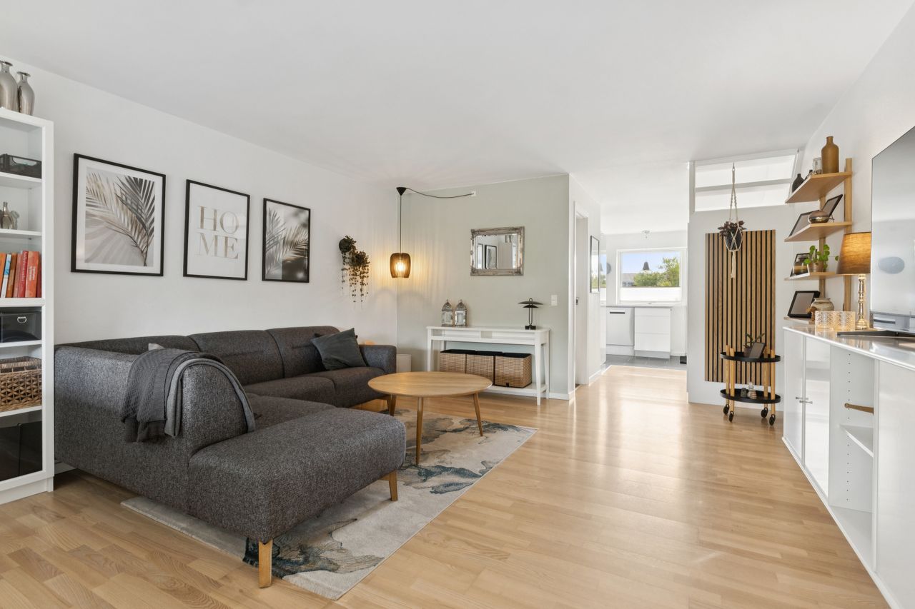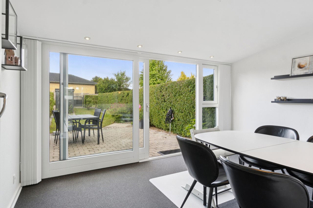 Indflytningsklart rækkehus med skøn udestue - Gennemrenoveret i 2008, incl. nye elinstallationer- Nye vinduer fra 2011- Lækkert åbent Kvik køkken- Skønt lyst badeværelse- Soveværelse og 2 gode værelser- Dejlig lukket sydvendt have- Vedligeholdelsesfri facader Her får du lidt flere kvadratmeter end i de fleste andre huse i foreningen.Udover selve boligen er der en skøn udestue med elradiator og nye vinduer fra 2014, ny dør i 2024, samt nyt tagpap i 2023, hvilket giver ca. 12 kvm. ekstra "stue". BELIGGENHED:Vitus Berings Vej er et område med 52 rækkehuse og her får du et skønt moderniseret rækkehus med god grund på lukket stikvej med attraktiv beliggenhed i efterspurgt ejerforening i Gug. Gug er et attraktivt område med mange aktivitetsmuligheder, grønne arealer og nem adgang til skoler, institutioner, indkøb, busstoppested, Østerådalen, svømmehal ved Gigantium, sport og kultur. Aalborg centrum og motorvejen nås på 5 min.Ejerforeningen er meget velfungerende og her er der både grønne fællesområder og legeplads. Der er endvidere dagpleje, børnehave og skole i gåafstand, samt meget nem adgang til dagligvarehandel. BESKRIVELSE BOLIG:Du bydes indenfor i god entré, der er i åben forbindelse med skønt lyst køkken med elementer fra KVIK, hvor der er godt med bord- og skabsplads, ligesom der naturligvis er alt i hvidevarer. Der er fint lyst badeværelse med bruseniche og vaskemaskine og skøn lys stue med plads til både hyggehjørnet og langbordet til gæster. Herudover er der adgang til rigtig dejlig udestue med elradiator, hvilket giver dig et ekstra leverum. Fra udestuen er der udgang til terrassen og haven. Under trappen til 1. sal er der i 2024 etableret en smart og praktisk indbygget opbevaringsløsning.På 1. sal er der indrettet med to gode børneværelser, soveværelse med stort skab og depotrum med god opbevaringsplads. På den sydvestvendte terrasse kan du altid finde læ og sol. Derudover er der skøn nem og overskuelig have med et lille skur. Der er fælles parkeringspladser lige udenfor døren, efter "først til mølle princippet". Der er mange pladser og dermed kan du altid finde en plads til din bil. Derudover er der flere garager som det er muligt at leje, når de løbende bliver ledige. Alt i alt et rigtig dejligt sted at bo.
