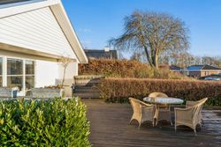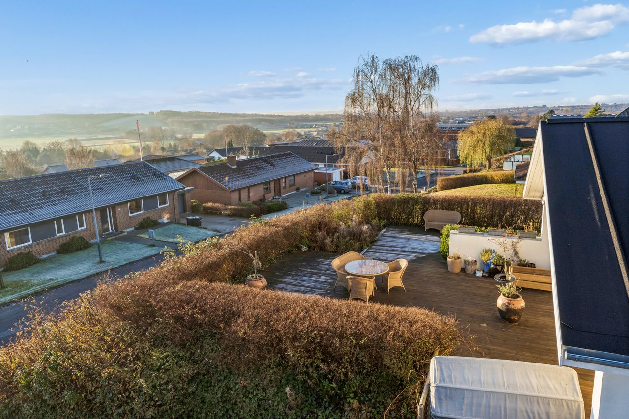 Moderne udsigtsvilla på bedste beliggenhed i Gug - Løbende moderniseret og totalt indflytningsklar- Moderne indretning med gipslofter og filtede vægge- Panoramaudsigt mod syd- Køkken-alrum og stue med fantastisk udsigt- Soveværelse og 3 værelser- 220 kvm. træterrasse rundt huset med sol og udsigt- 26 kvm. total renoveret garage og 18 kvm nyere redskabsrum- Nyt tag fra 2024 og loftet efterisoleret- Velfac træ-alu vinduer fra 2003- Minimal vedligeholdelse BELIGGENHED:Denne skønne bolig ligger på en af de bedste beliggenheder i Gug med en fantastisk udsigt. Beliggenheden på lukket stikvej, gør huset særdeles attraktivt for børnefamilien eller parret der bare vil bo roligt og fantastisk med let adgang til alt via stier. Gug er et attraktivt område med fokus på børnenes aktivitetsmuligheder, grønne arealer og meget velfungerende stisystem, til både skole, børnehaver og fritidsaktiviteter. Her er ligeledes nem adgang til indkøb, busstoppested, bakkede naturoplevelser i Gug Alper, Østerådalen eller Kongshøjskoven, svømmehal ved Gigantium, sport og kultur. Det nye Supersygehus, Aalborg centrum og tilkørsel til motorvejen nås på kun 5 minutter. BESKRIVELSE BOLIG:Du bydes velkommen indenfor i lys forgang med adgang til gæstetoilet med gulvvarme, videre ind i huset ledes du helt naturligt ind i husets hjerterum. Nemlig det store område med køkken, alrum og stue med brændeovn. Her er der et helt fantastisk lysindfald fra det store sydvendte vinduesparti, hvor der er panoramaudsigt over Visse og Kongshøjskoven, hvor du kan følge med i årstidernes skiften. I alrummet er der god plads til langbordet og i stuen, masser af plads til sofagruppen. I det lyse køkken er der godt med bord- og skabsplads og alt i hvidevarer. I køkken og alrum er der gulvvarme. Herfra er der adgang til bryggers med gulvvarme, masser af skabs- og bordplads, samt vaskesøjle.I modsatte ende af huset, er der værelsesafdeling med soveværelse og 3 værelser, samt stort badeværelse med gulvvarme, spabad og stor bruseniche. Udenfor er der 220 kvm. træterrasse syd og vest om huset, så du altid kan finde læ og sol, samt nyde den flotte udsigt. Selvfølgelig er der udgang hertil fra både stue og alrum, og der er masser af plads til grill, hygge og mange gæster på terrassen. Resten af grunden er indrettet, så der er minimal vedligeholdelse.Ønsker du mere græsplæne, så kan noget af træterrassen fjernes og der kan genetableres græsplæne til trampolinen og boldspil. Endvidere er der 18 kvm. stort nyere redskabsrum og totalrenoveret 26 kvm. garage, der i dag er omdannet til skønt lyst opbevaringsrum med trold tekt lofter.Endelig er der nyanlagt forgård og parkeringspladser, bl.a. med el oplader til bil.