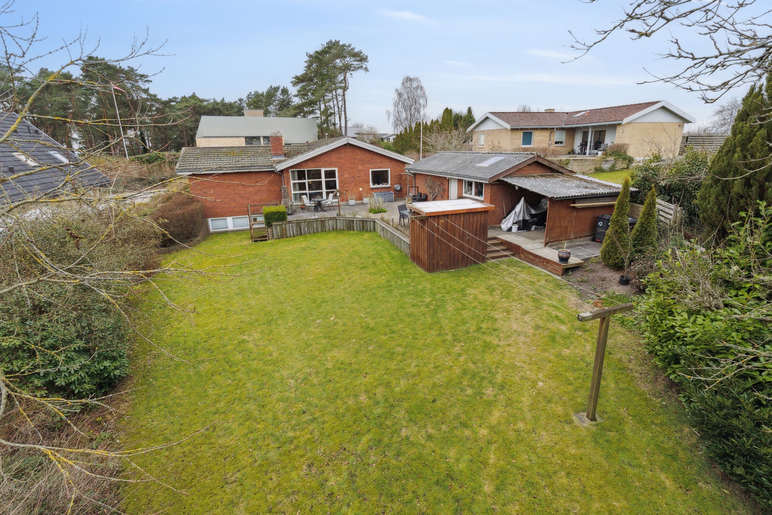 God indkørsel med mulighed for parkering af flere biler og bag huset er der skøn lukket ugeneret have, hvor der er god plads til børnenes leg, boldspil og trampolin. Herudover er der skøn terrasse med god plads til grill og hygge.