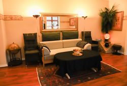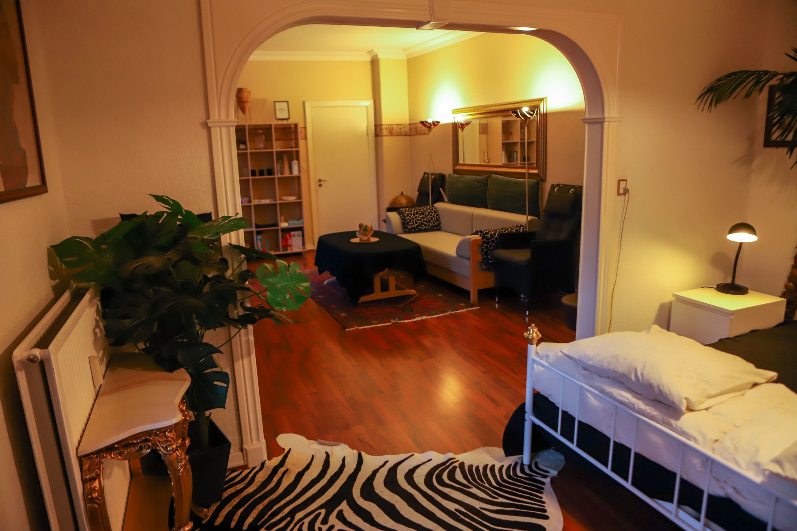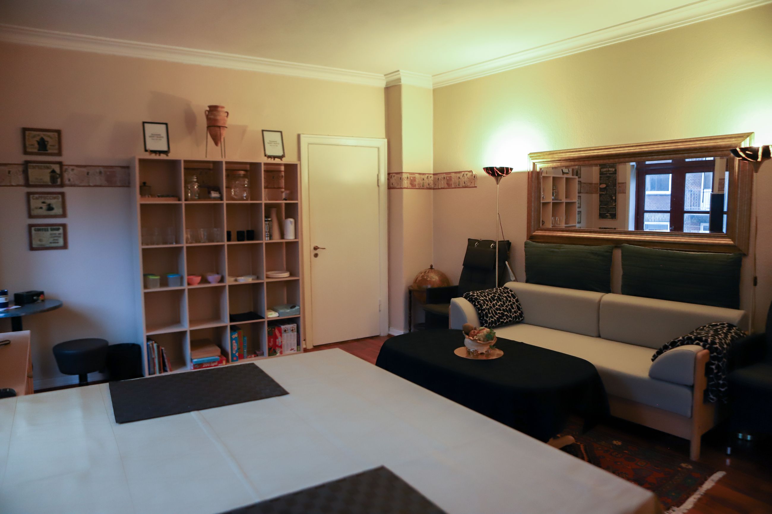 rummet, hvor man har udsigten ud til en af de 5 altaner, som befinder sig i hele lejligheden.