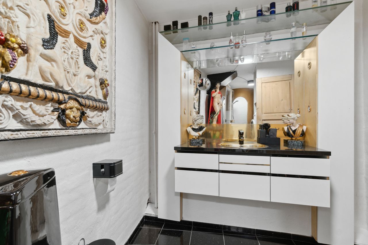 igennem hele lejligheden, til guld håndvaske, guld afløbsriste, guld stil, sort toilet, Black