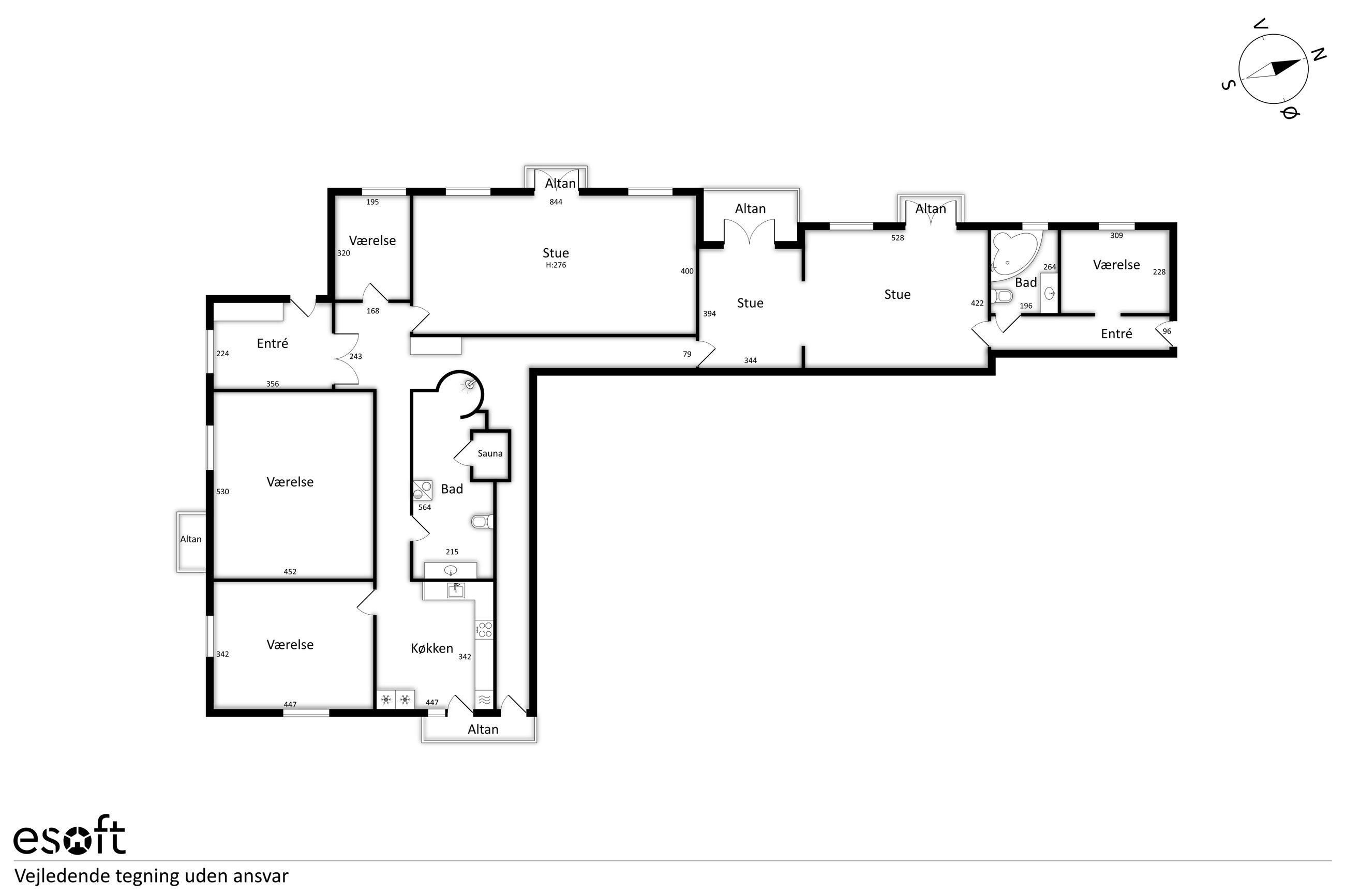 Udover kæmpe stue, og stort soveværelse, har man yderligere 3 store rum, og 2 mindre rum,