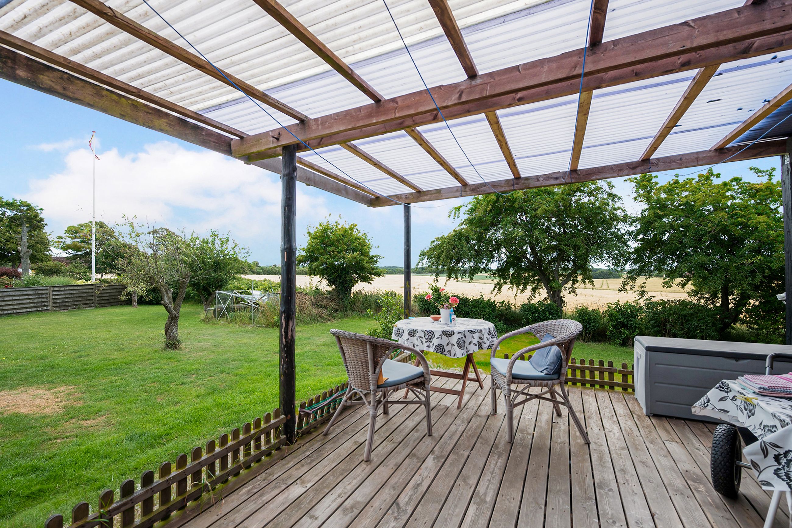 Desuden er der tilhørende carport og udhus.
