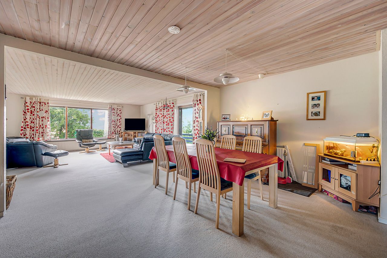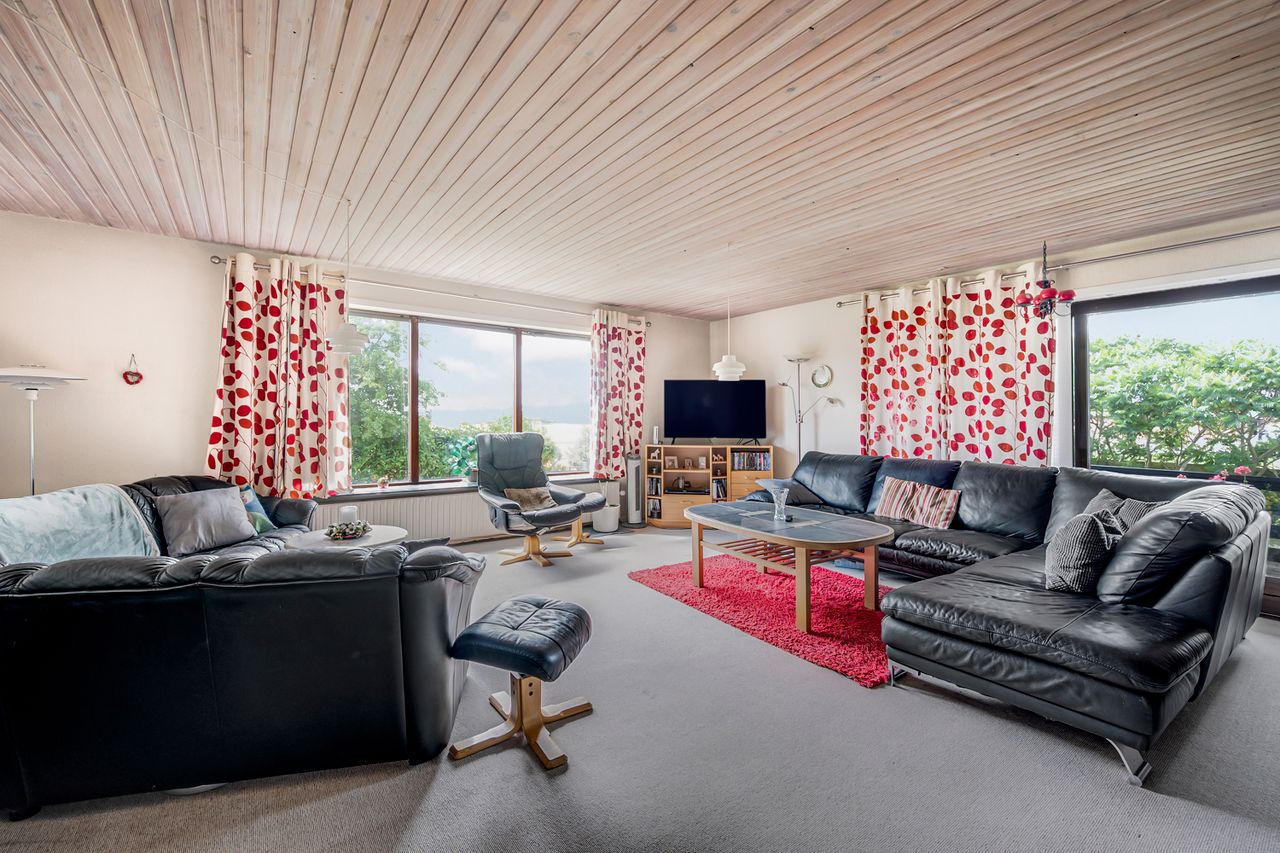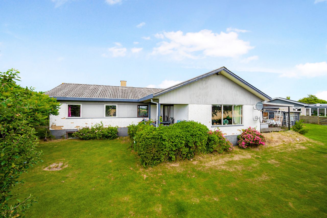 Villa på over 190 kvm og med kælderareal på 100 kvm. Villaen ligger på rolig villavej med udsigt over marker og fjordkig. Huset er renoveret i nogle rum men der skal påregnes færdigrenovering/modernisering.