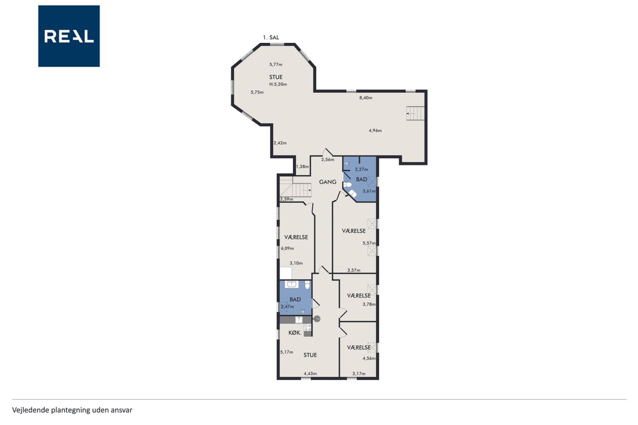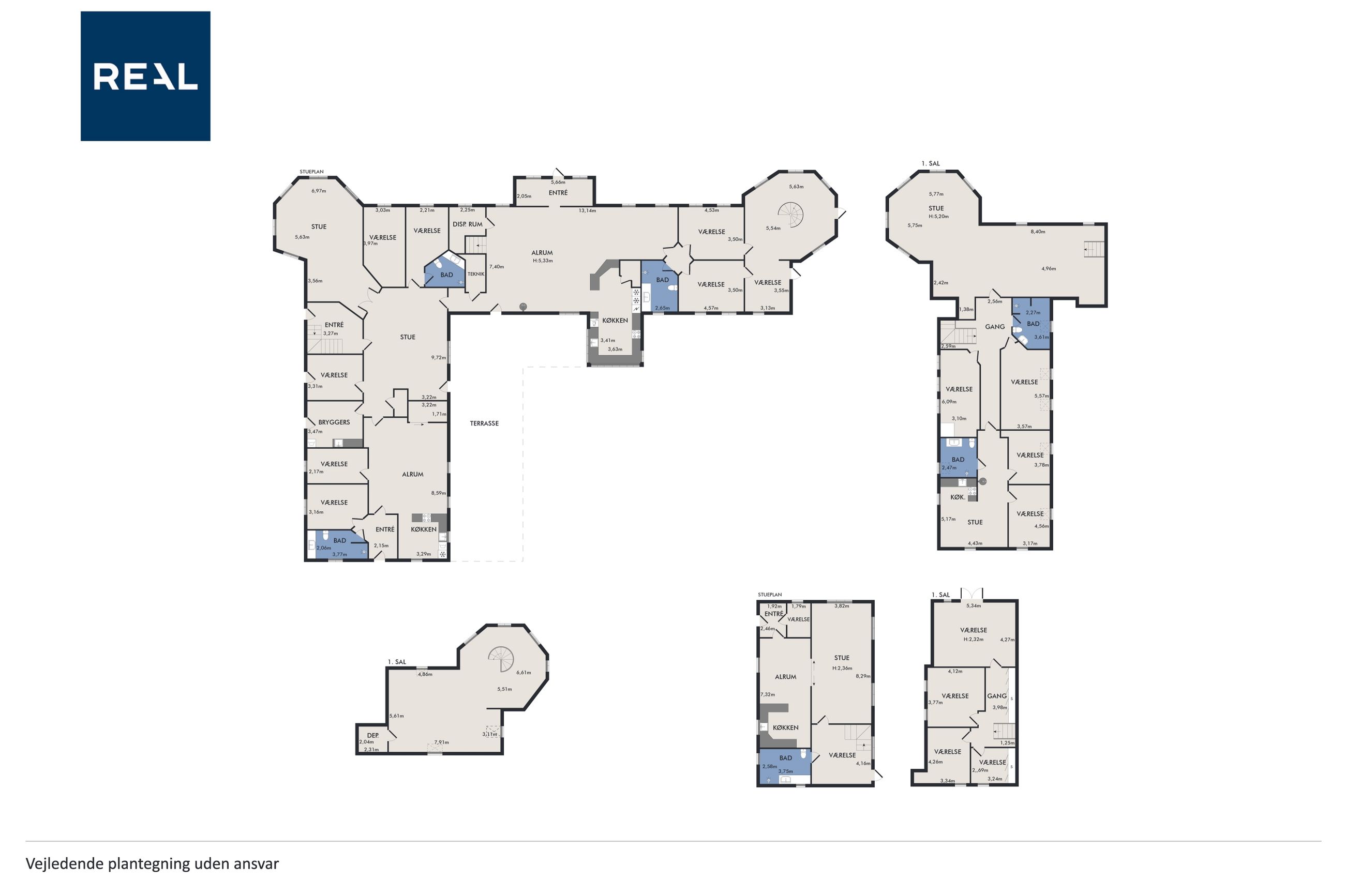 Her får I hele 16 værelser, 5 badeværelser, 3 køkkener og 4 stuer fordelt på flere afdelinger – herunder to selvstændige lejligheder med egen indgang. Det giver jer unikke muligheder for at samle en stor familie, flere generationer, drive liberalt erhverv eller indrette til udlejning. Ejendommen vil også egne sig særdeles godt til f.eks. institutionsformål, opholdssted eller lignende.