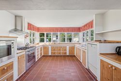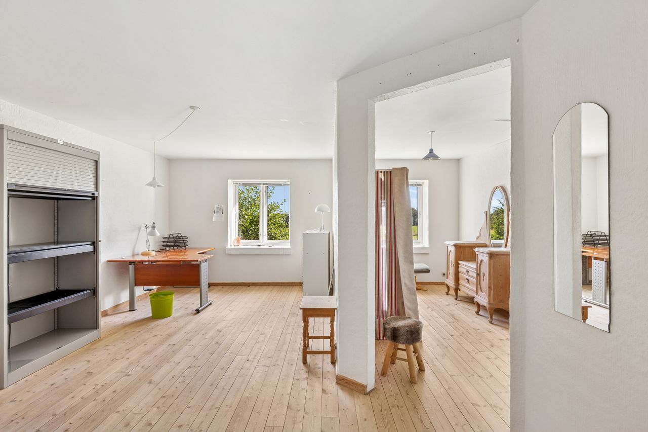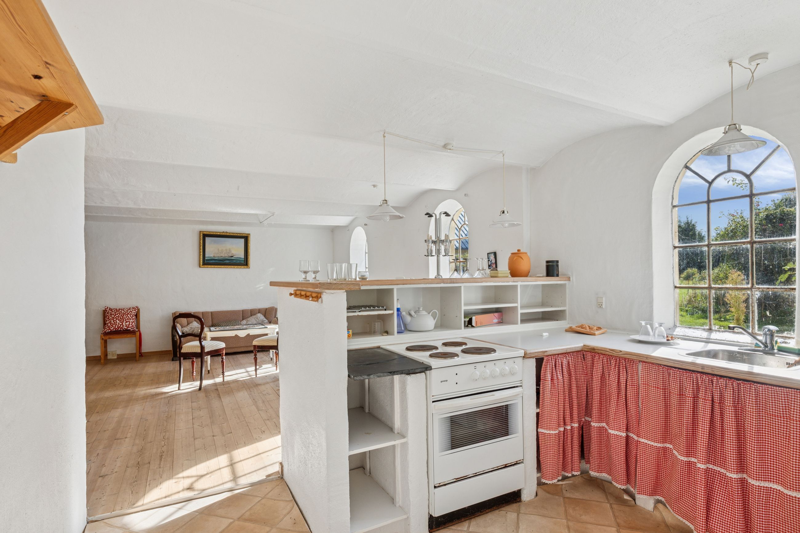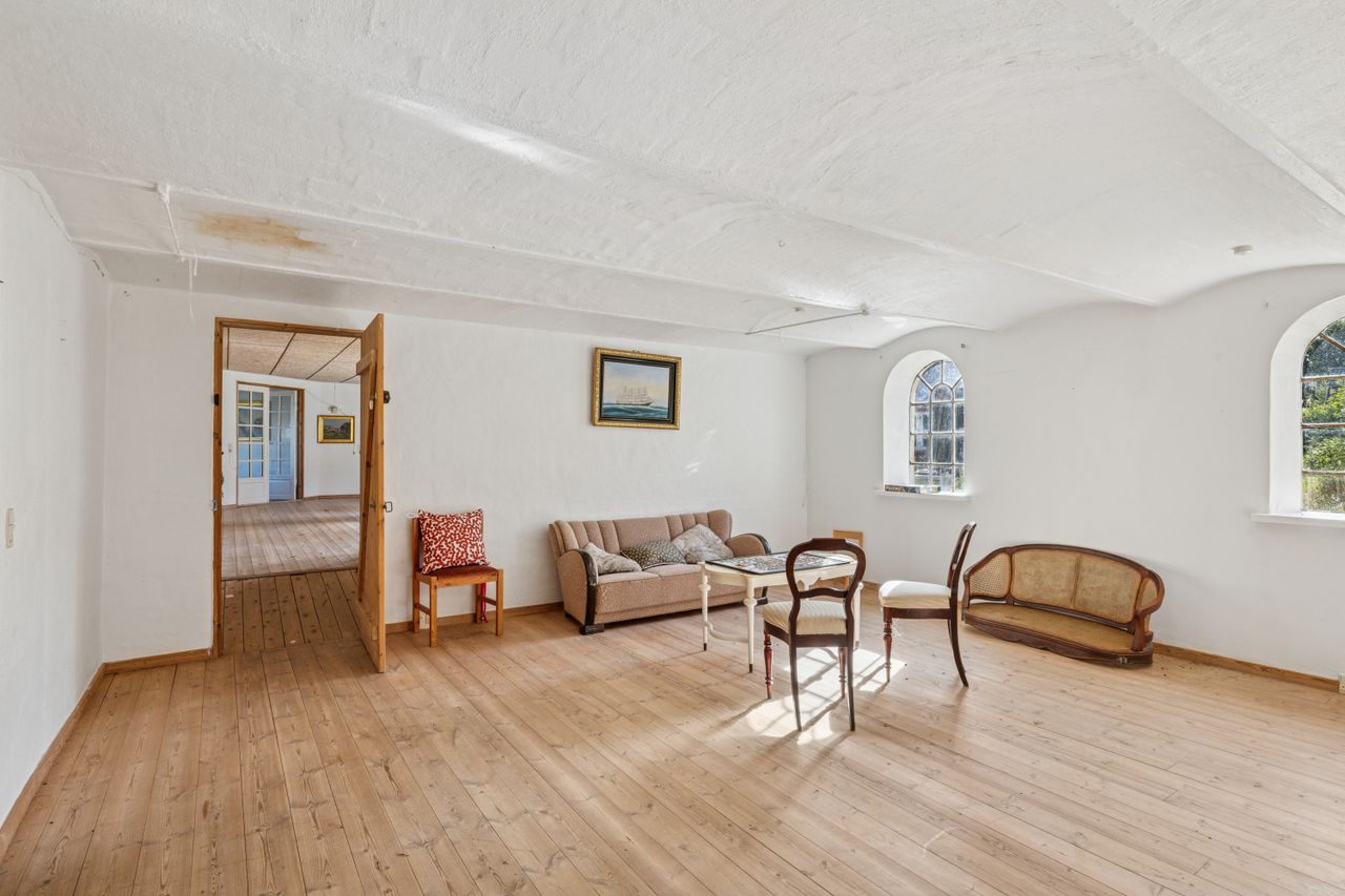 Køkkenalrummene er rummelige og tidssvarende indrettet, mens husets mange værelser giver plads til både private gemakker, kontorer, atelier eller gæsterum. Flere steder er de oprindelige detaljer bevaret og smukt kombineret med nyere løsninger, så ejendommen fremstår indbydende og fuld af muligheder.