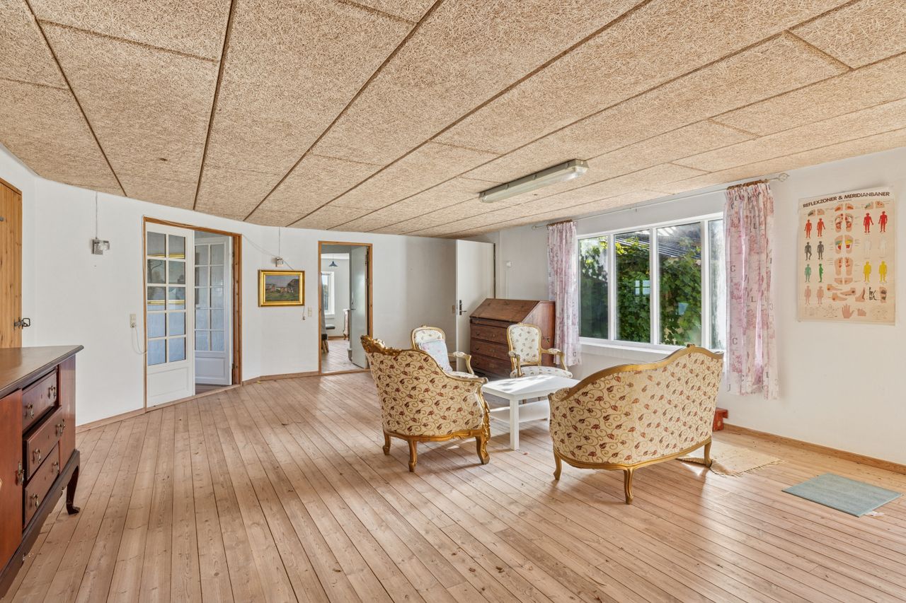 Udenfor finder I en stor grund med god plads til udeliv, dyrehold, boldspil og hygge med familien. Der er både udbygninger, drivhus og hønsehus, som understøtter muligheden for en livsstil tæt på naturen – uden at gå på kompromis med komforten.