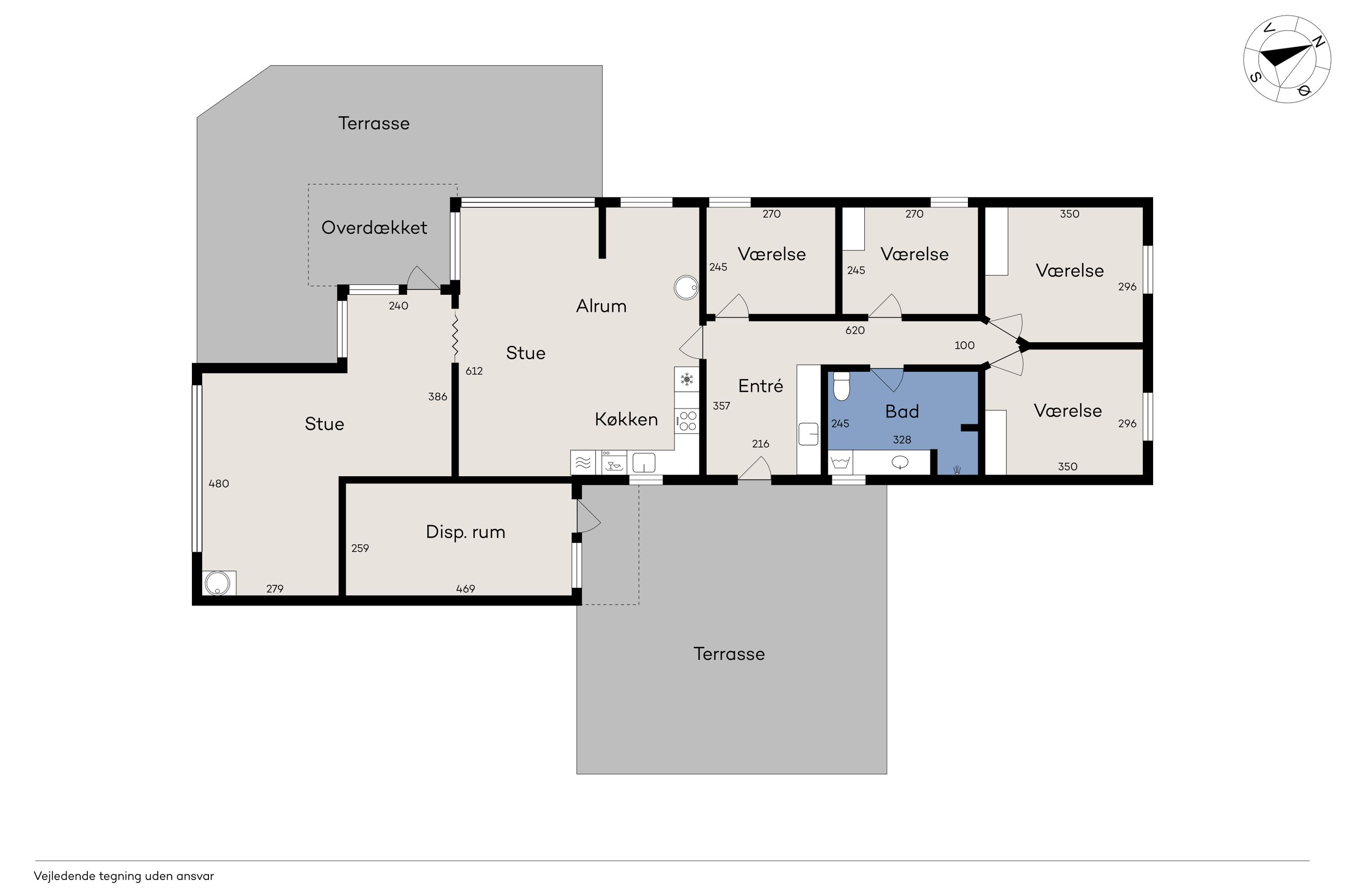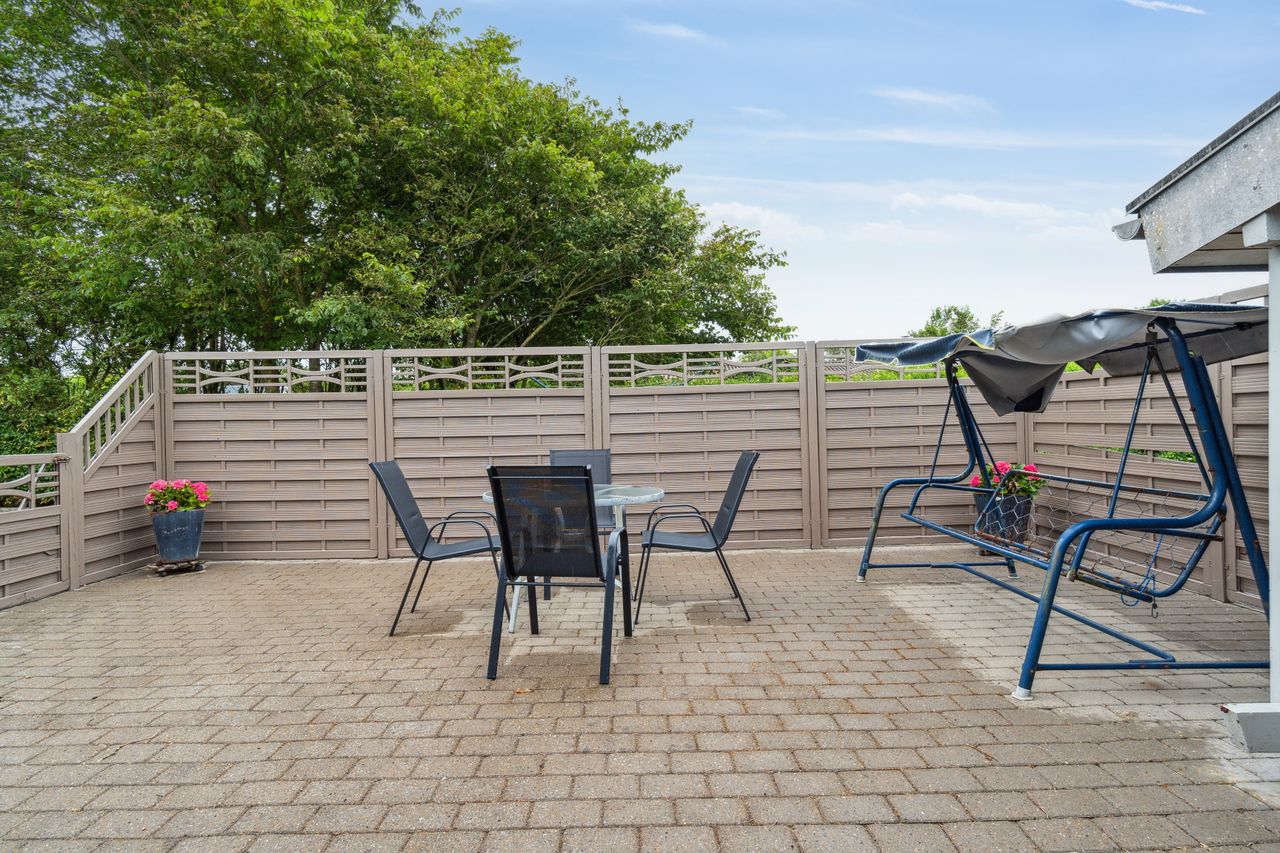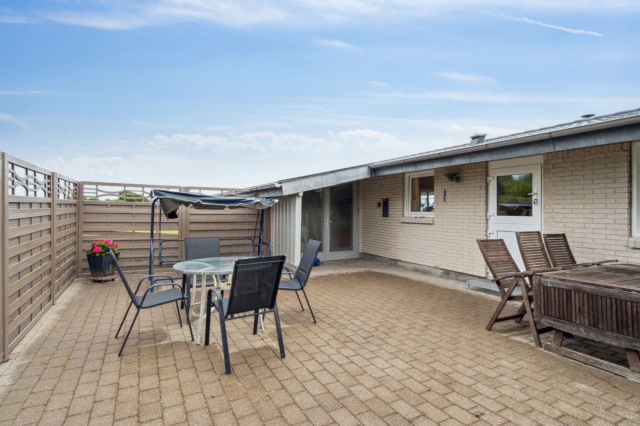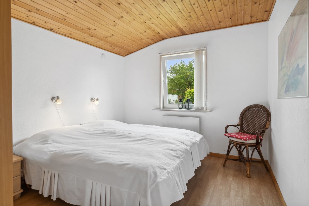 er helårsegnet. Huset ligger på en dejlig grund med mange gode og solrige terrasser og gåafstand til