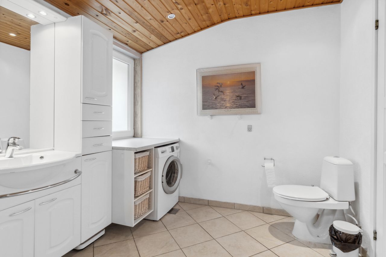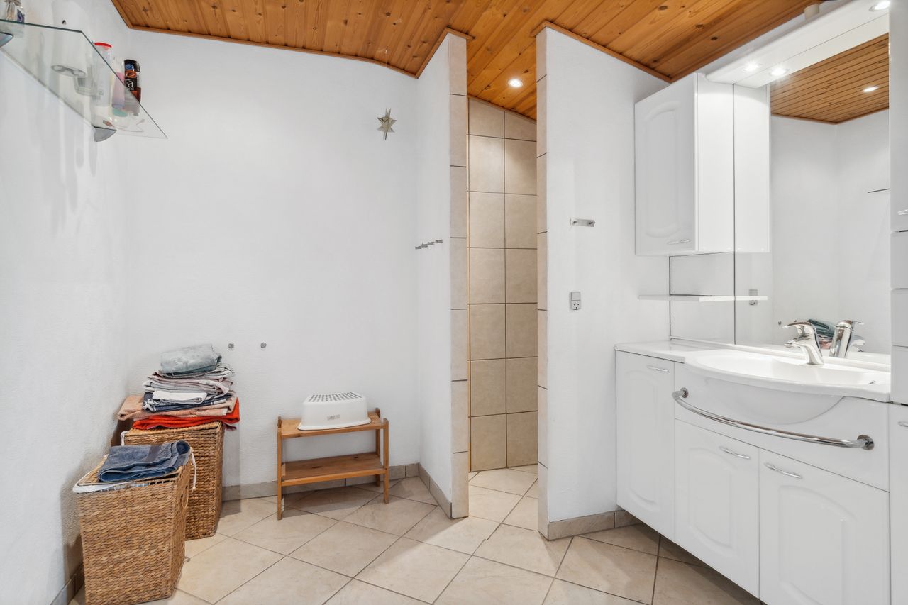 badeværelse der er klargjort til sauna og badekar hvis man ønsker dette. 4 gode værelser. Stort