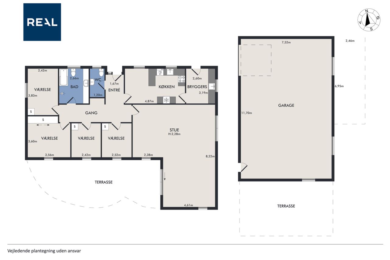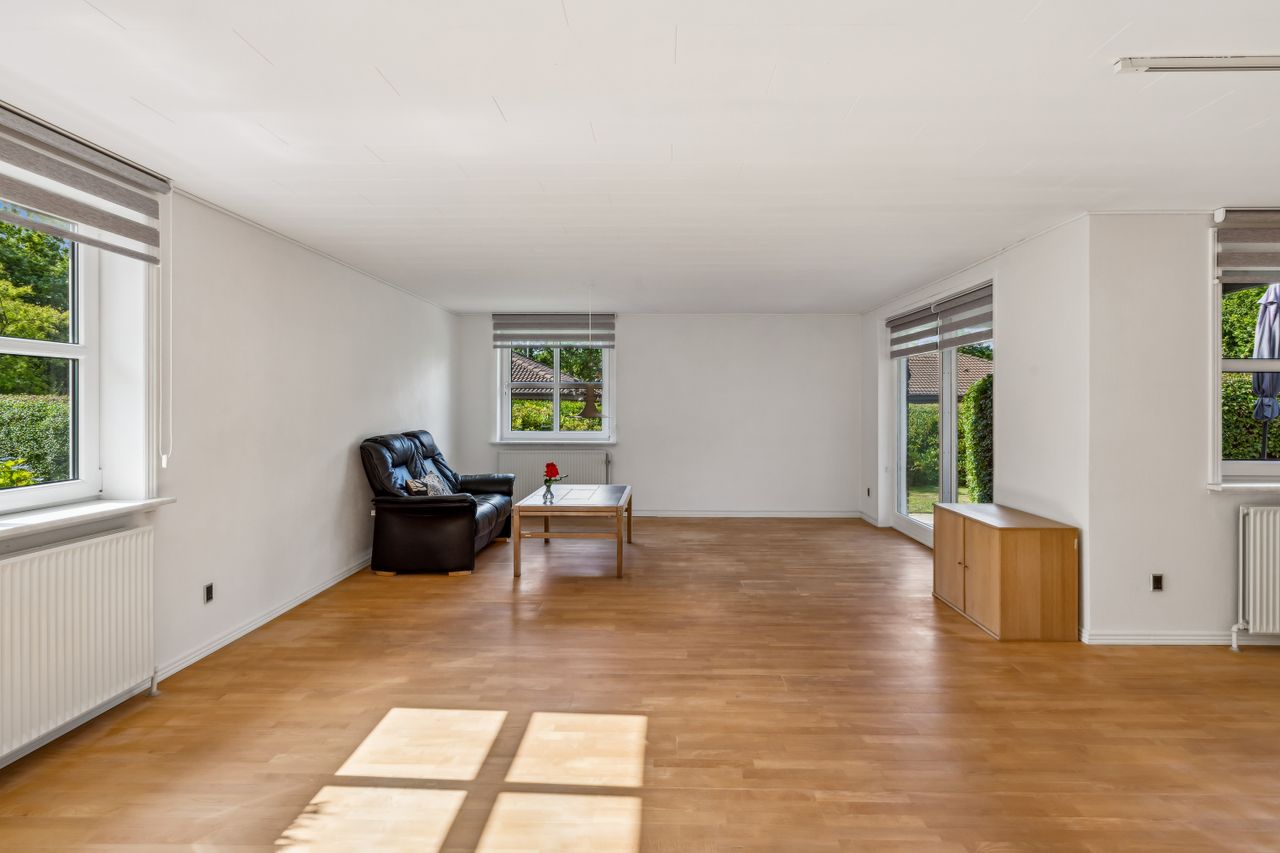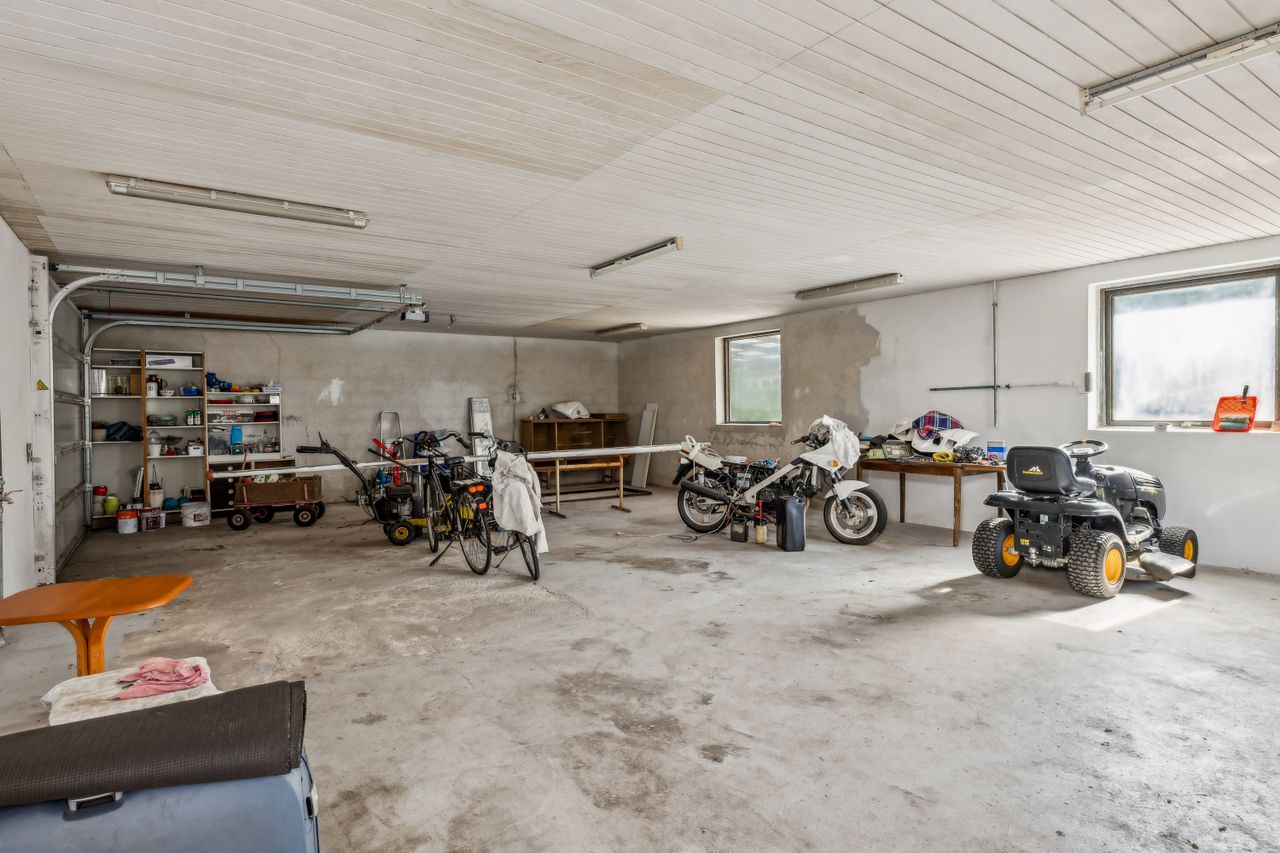Som prikken over i’et er der en garage på hele 100 kvm – ideel til hobby, værksted, opbevaring eller måske din næste drømmebil.