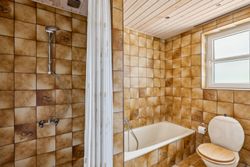 Stort badeværelse med kar, brus, toilet og vask