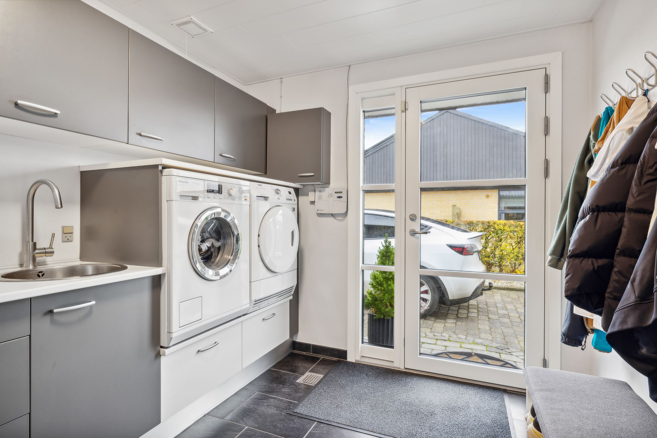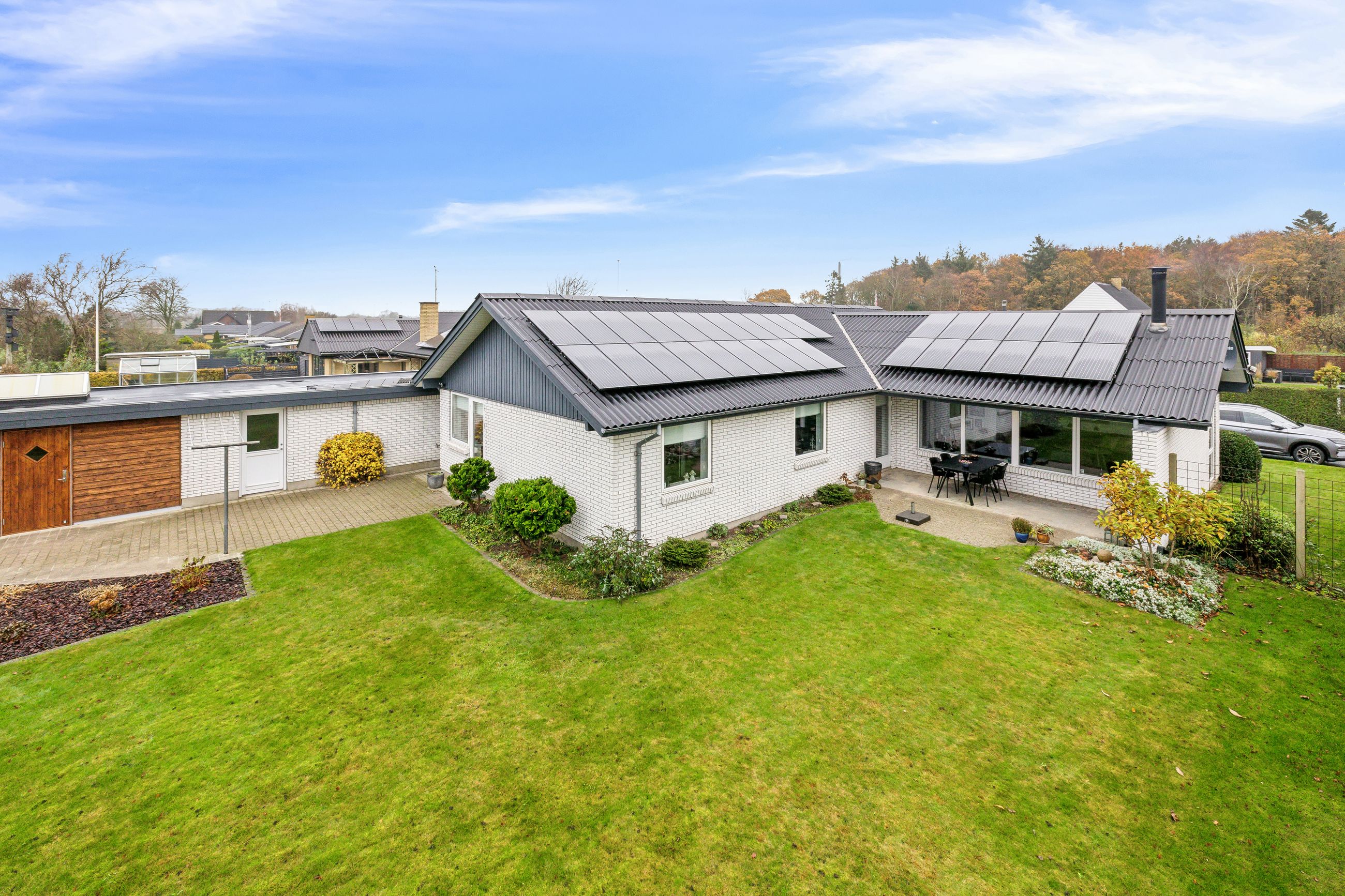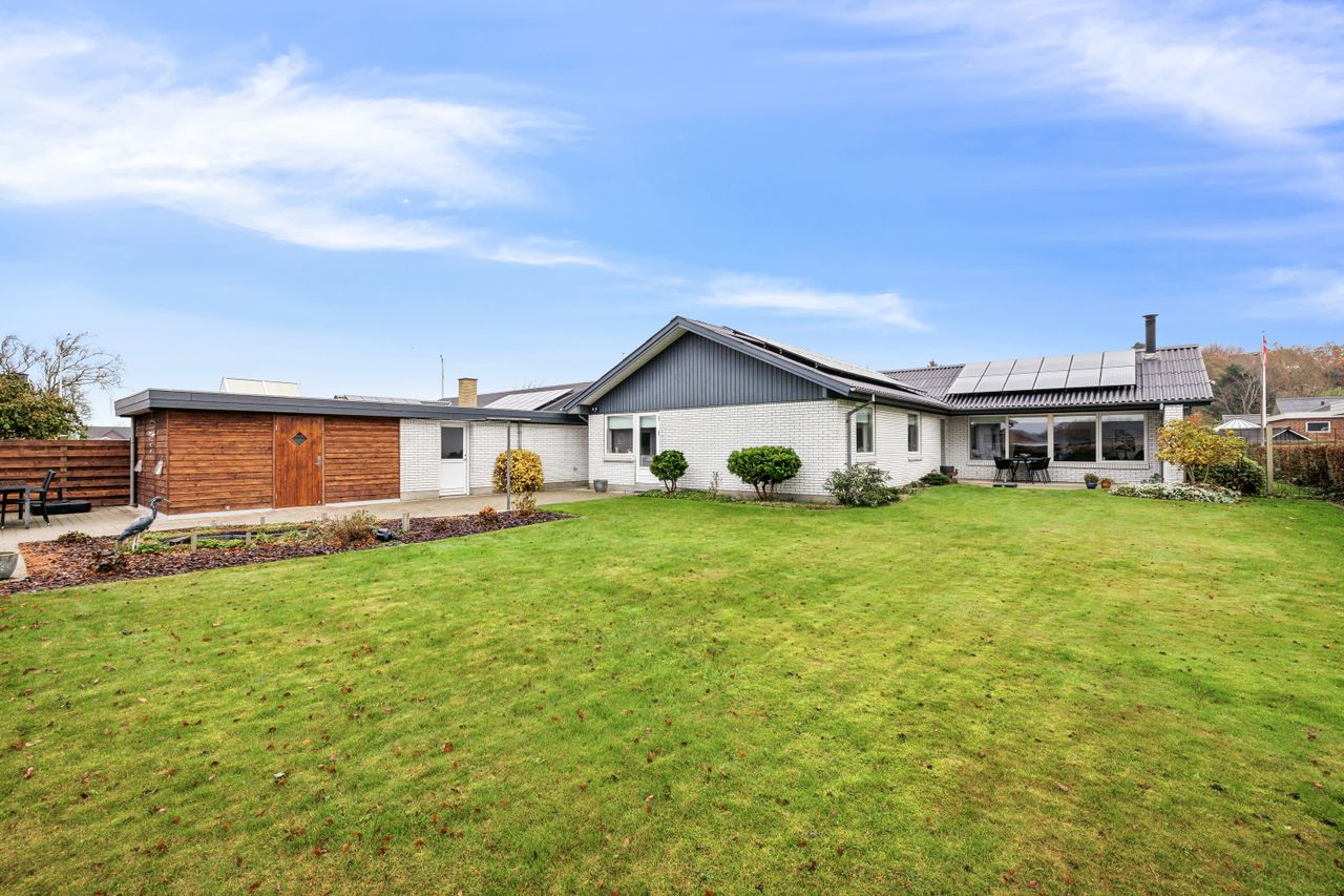 Udenfor finder du en garage og et nyligt opført skur med god plads til opbevaring og hobbyaktiviteter. Den lukkede have grænser op til friarealer og stisystemet, hvilket gør den ideel for leg og udeliv. Som en ekstra bonus har huset solceller, hvilket sikrer en økonomisk opvarmning og et grønnere aftryk. BEMÆRK at den reelle strøm/varmeudsigt er væsentlig lavere end energimærkets beregninger. Sælger har i 2024 haft en udgift til strøm og varme i hele huset på kr. 16.663,27. Dvs måske en varmeudgift på omkring kun 7.000 kr årligt hvis der tages udgangspunkt i at der bruges ca. 10.000 i strøm til lys, hårde hvidevarer mm. OBS sælger har netop installeret varmepumpe i dec 2025 som bidrager til endnu billigere varmeudgift.