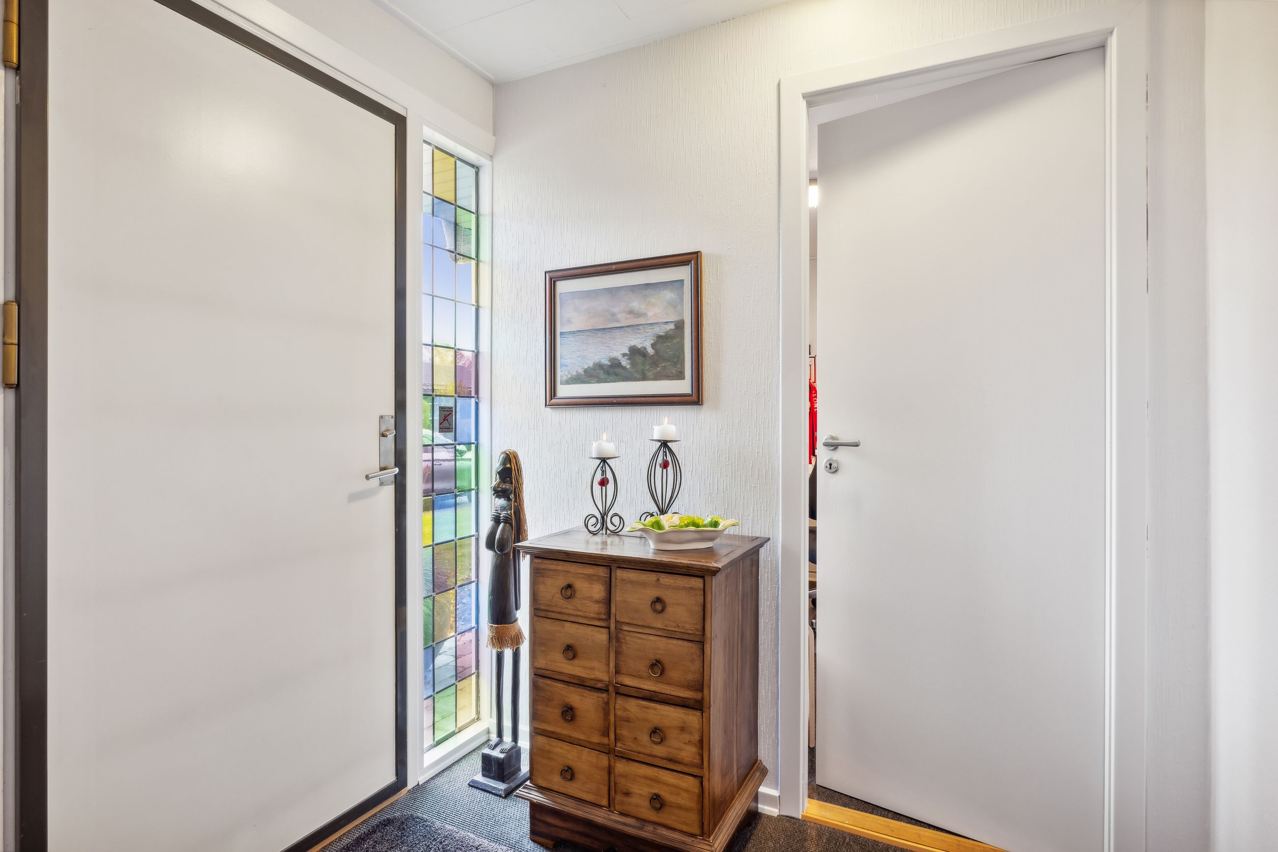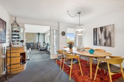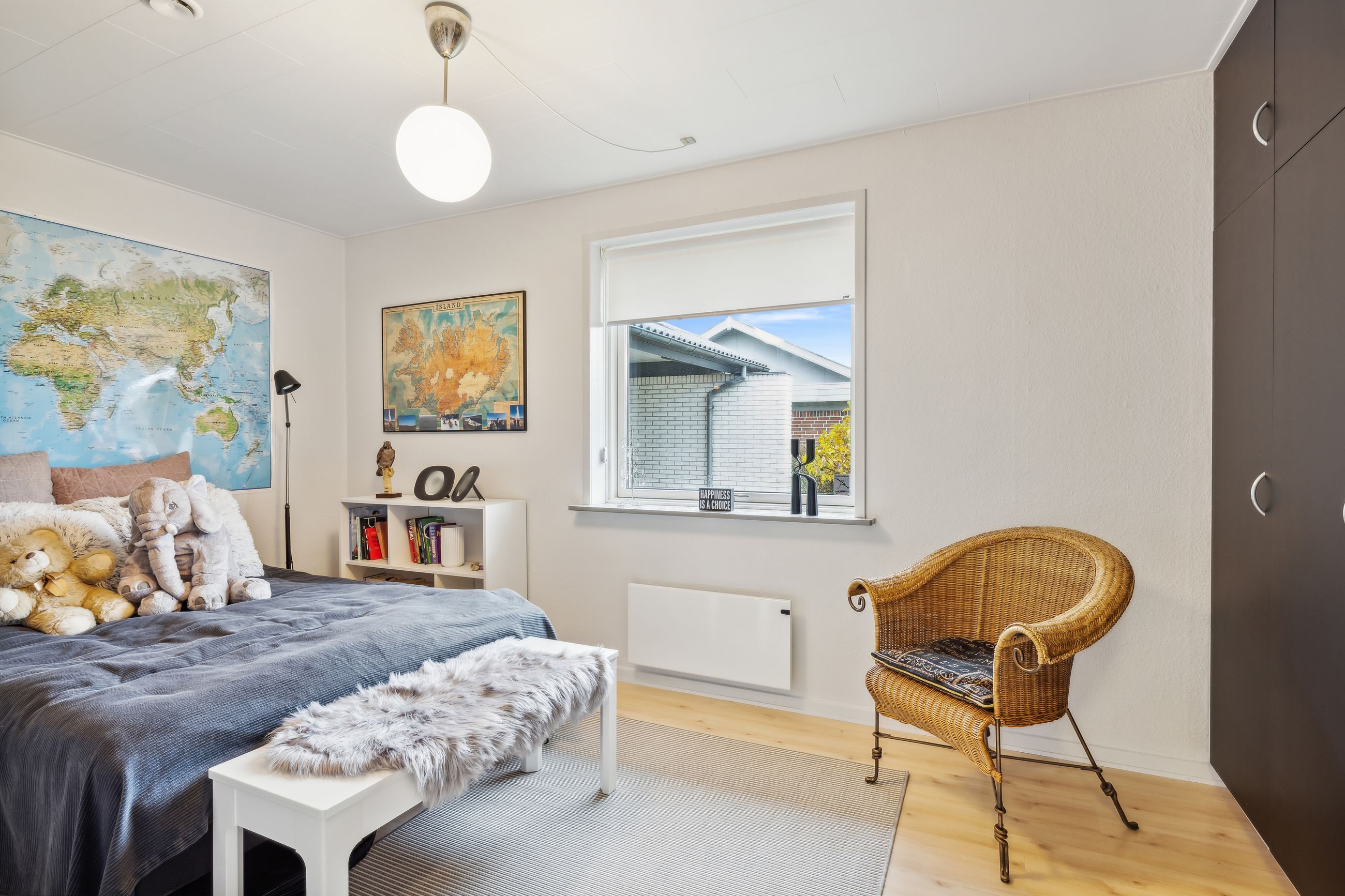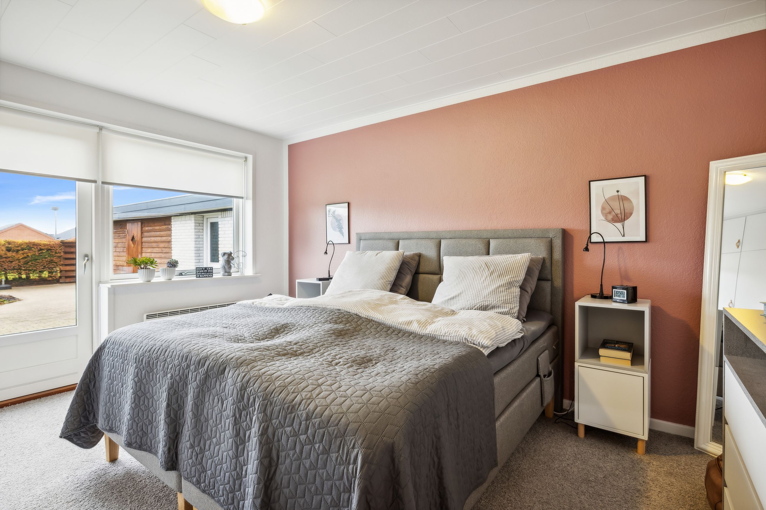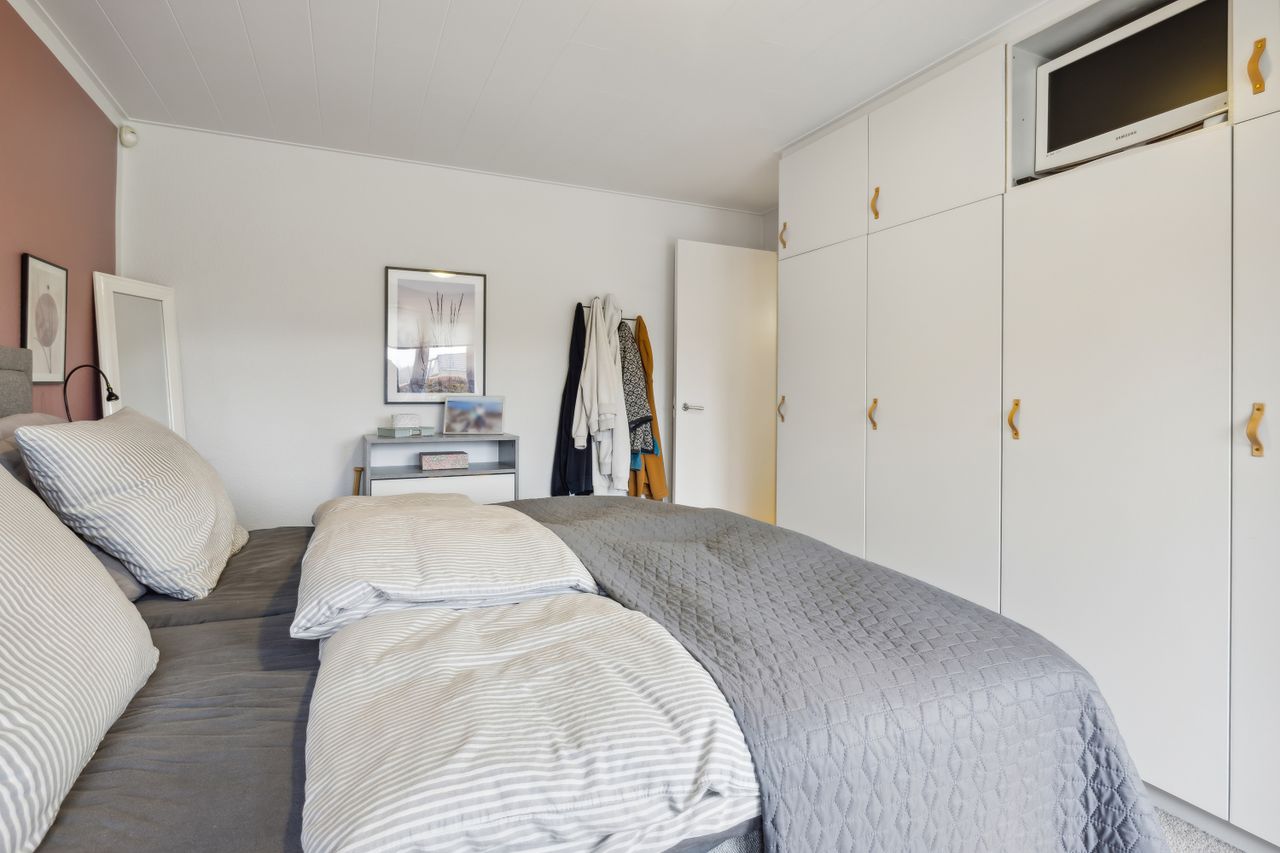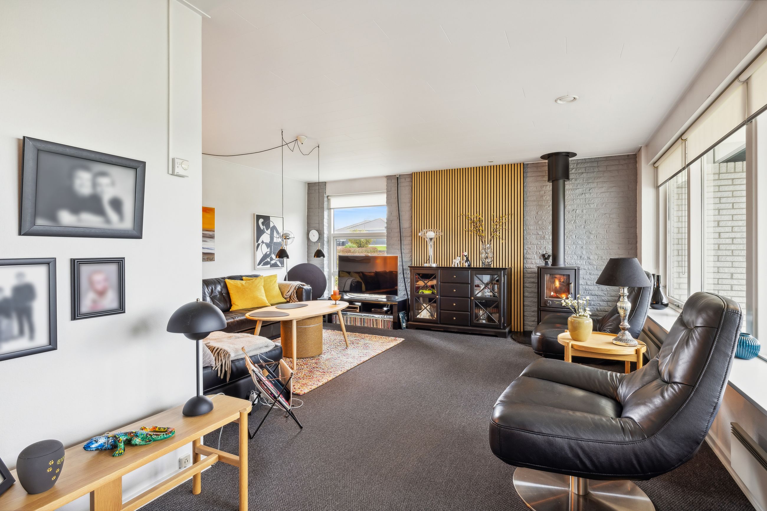 Huset fremstår indbydende og er løbende vedligeholdt, hvilket giver et lyst og imødekommende hjem. Boligen indeholder et praktisk bryggers, et rummeligt køkken-alrum, en hyggelig spisestue og en dagligstue med brændeovn – perfekt til de kolde måneder. Derudover er der en entré med et nyere toilet samt et kontor, som giver plads til hjemmearbejde eller studie. Huset byder også på tre store værelser med indbyggede skabe og et flot moderniseret badeværelse. Såfremt det har interesse for en køber kan en del af møbler i huset medforhandles.