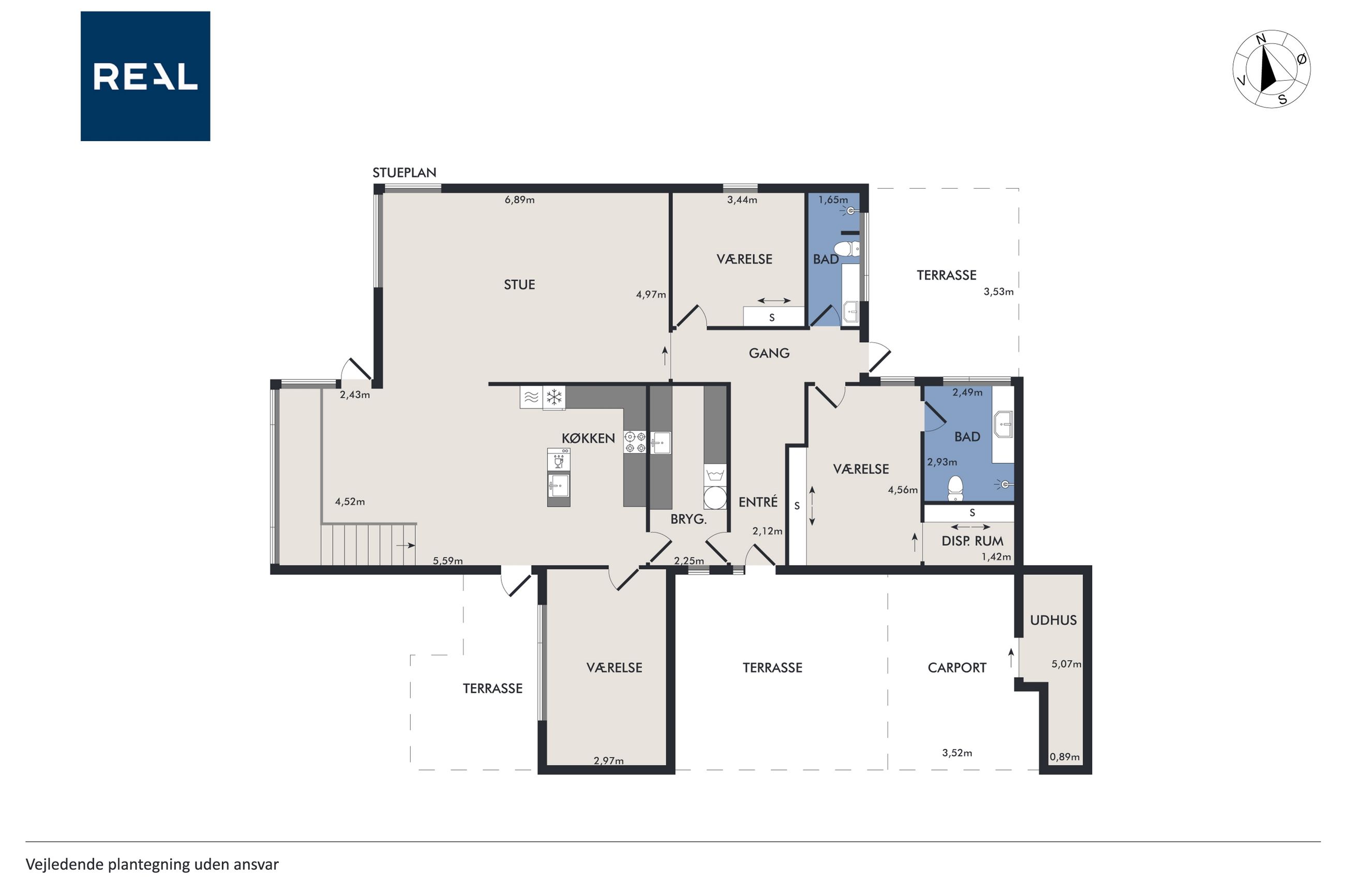 Rigtig god planløsning, der udnytter terrænet på bedste vis.
