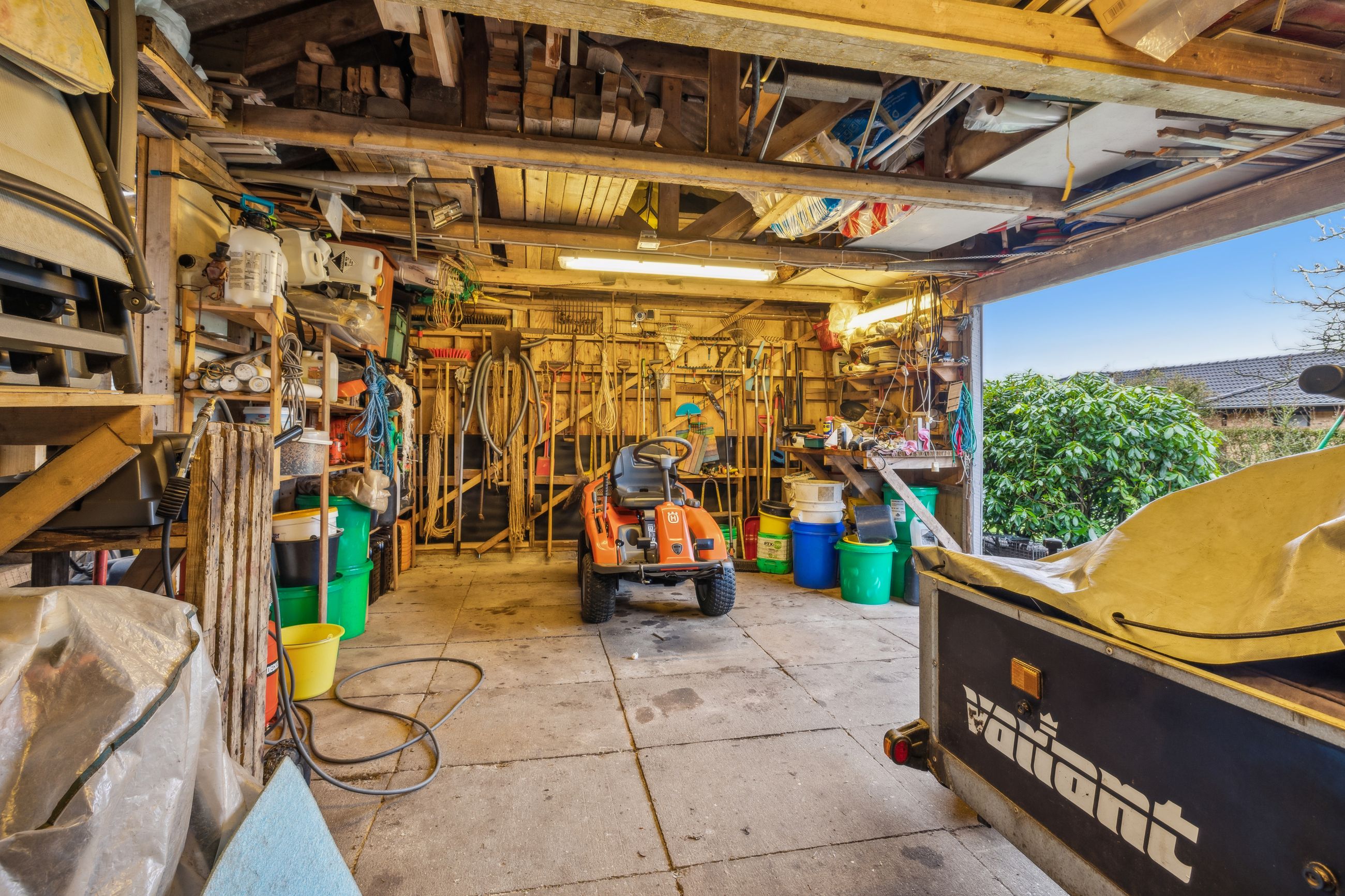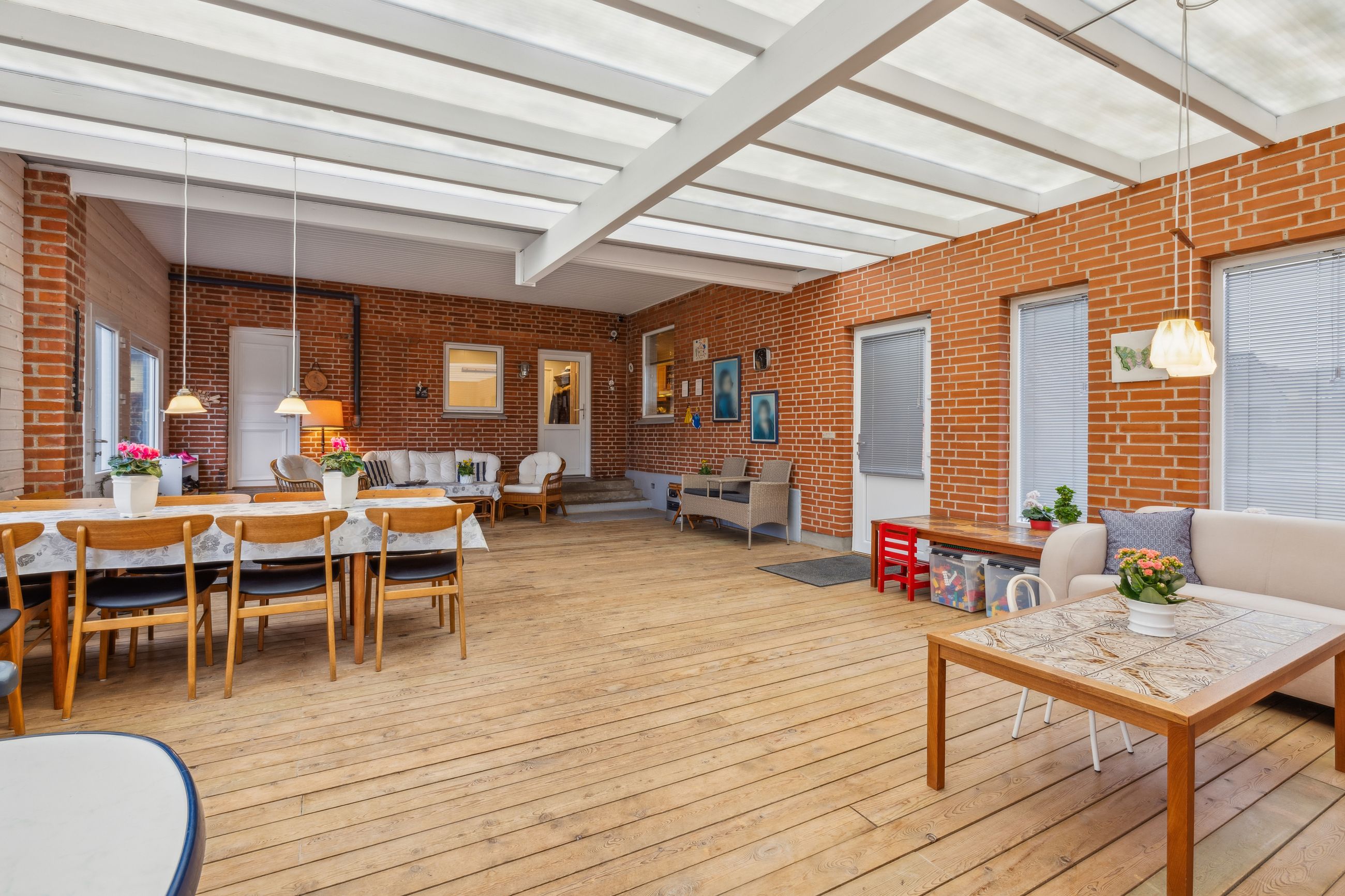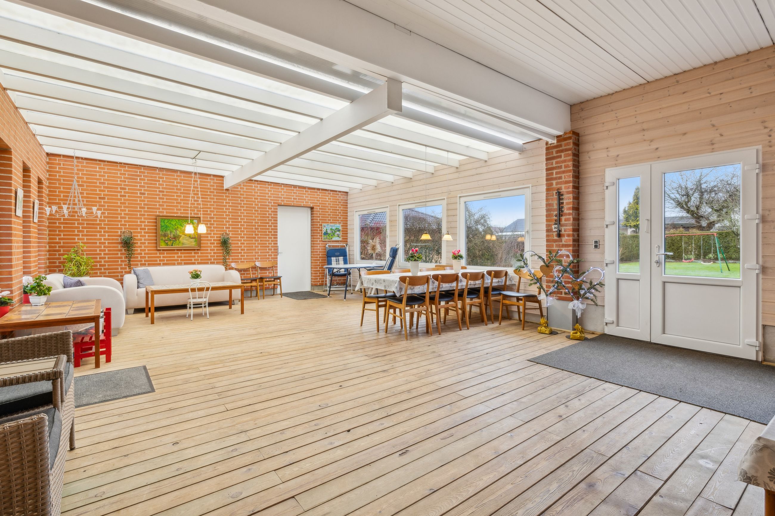 Huset byder på en stor og alsidig udestue, som kan anvendes til mange formål – hvad enten du ønsker et festlokale, hobbyrum, kreativt værksted eller liberalt erhverv. Herfra er der direkte adgang til en skøn, ugeneret have med god plads samt et praktisk udhus til haveredskaber m.m. Udestuen har også adgang til et mindre værksted samt hovedhuset. Desuden kan du gå tørskoet fra garage igennem udestuen og direkte ind i huset.