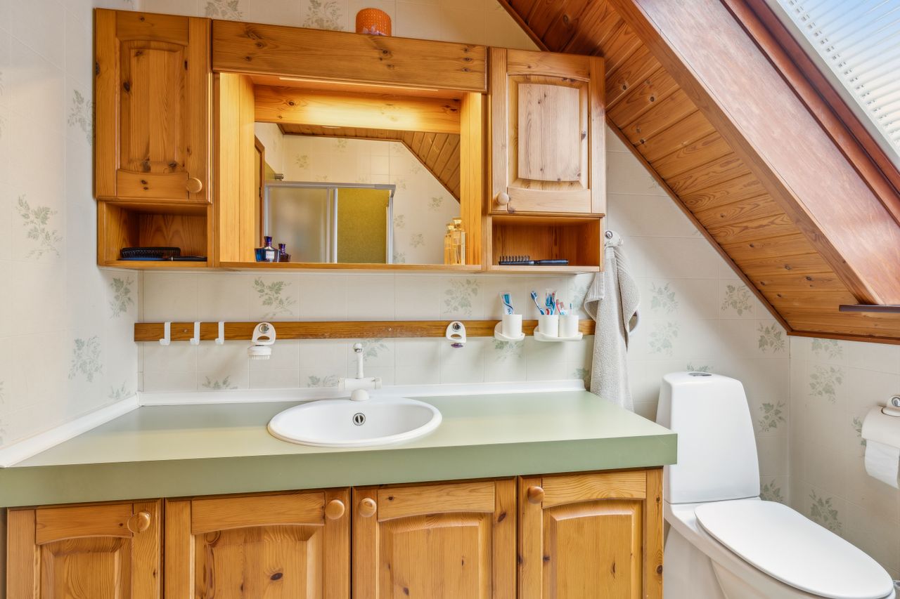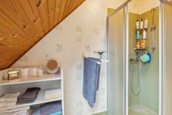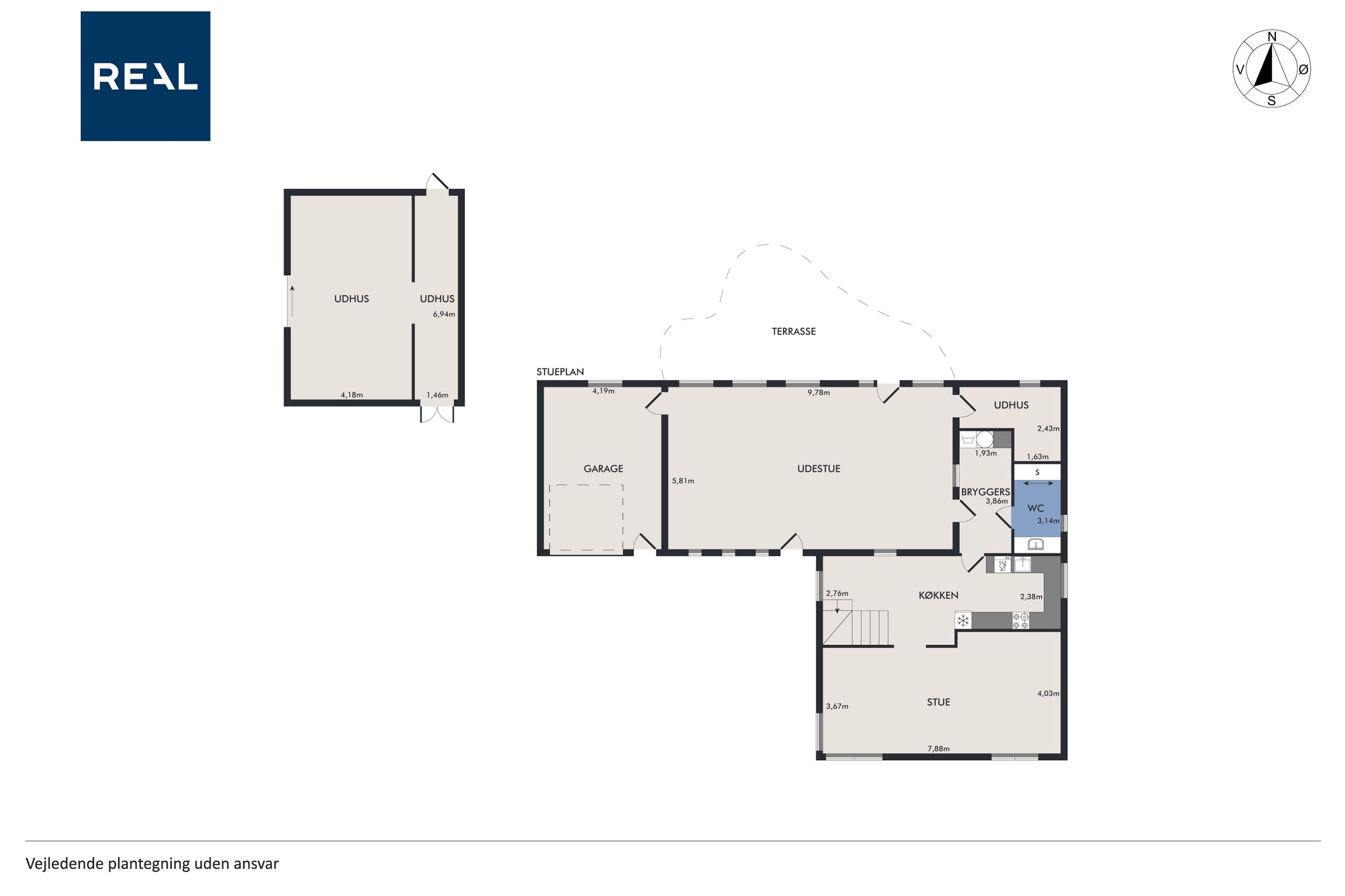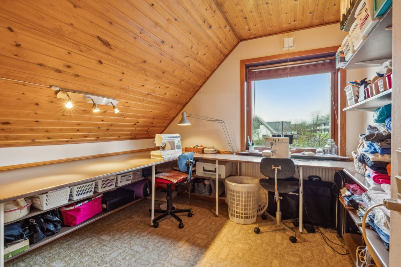 Huset byder på en stor og alsidig udestue, som kan anvendes til mange formål – hvad enten du ønsker et festlokale, hobbyrum, kreativt værksted eller liberalt erhverv. Herfra er der direkte adgang til en skøn, ugeneret have med god plads samt et praktisk udhus til haveredskaber m.m. Udestuen har også adgang til et mindre værksted samt hovedhuset. Desuden kan du gå tørskoet fra garage igennem udestuen og direkte ind i huset.