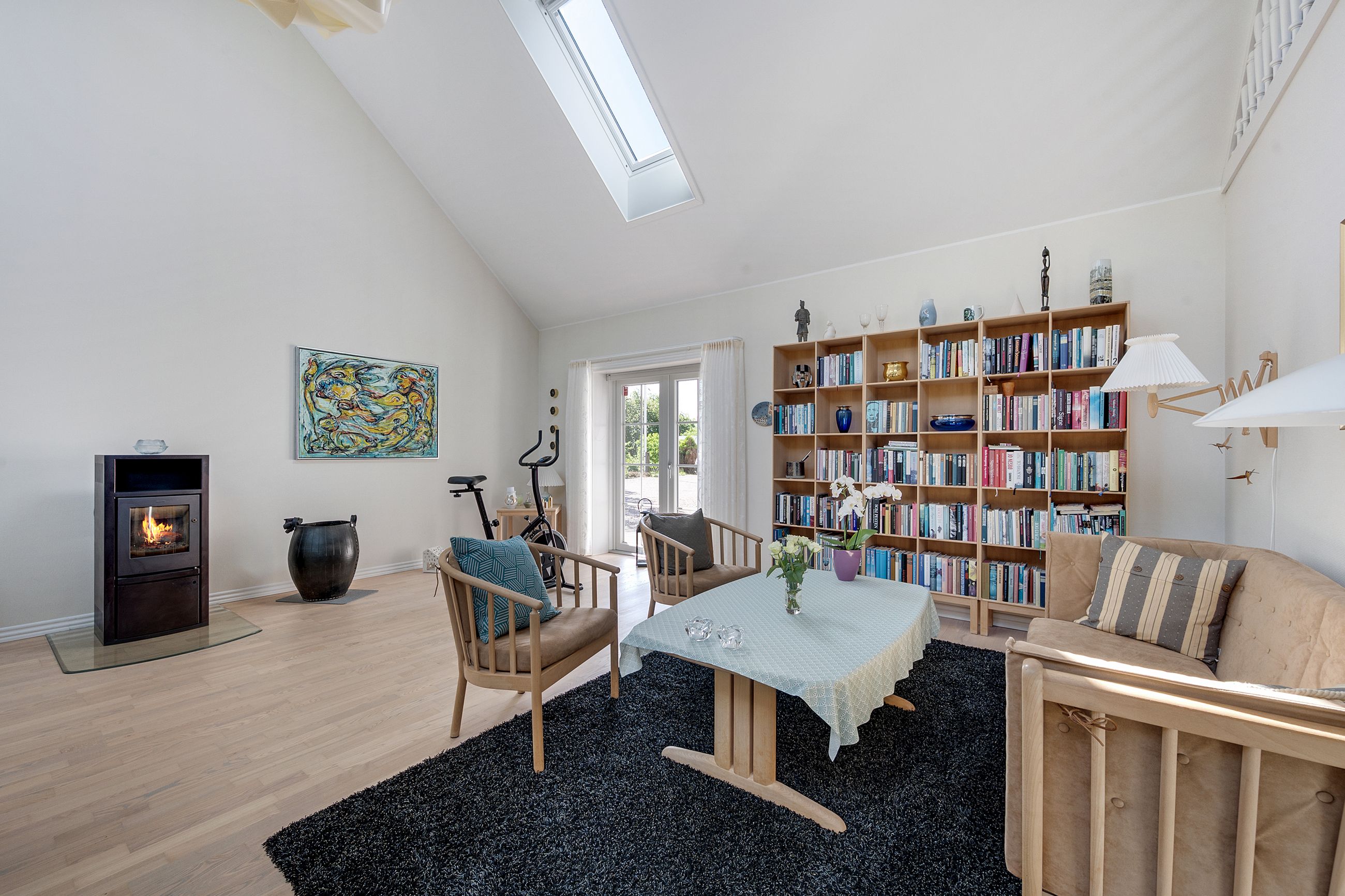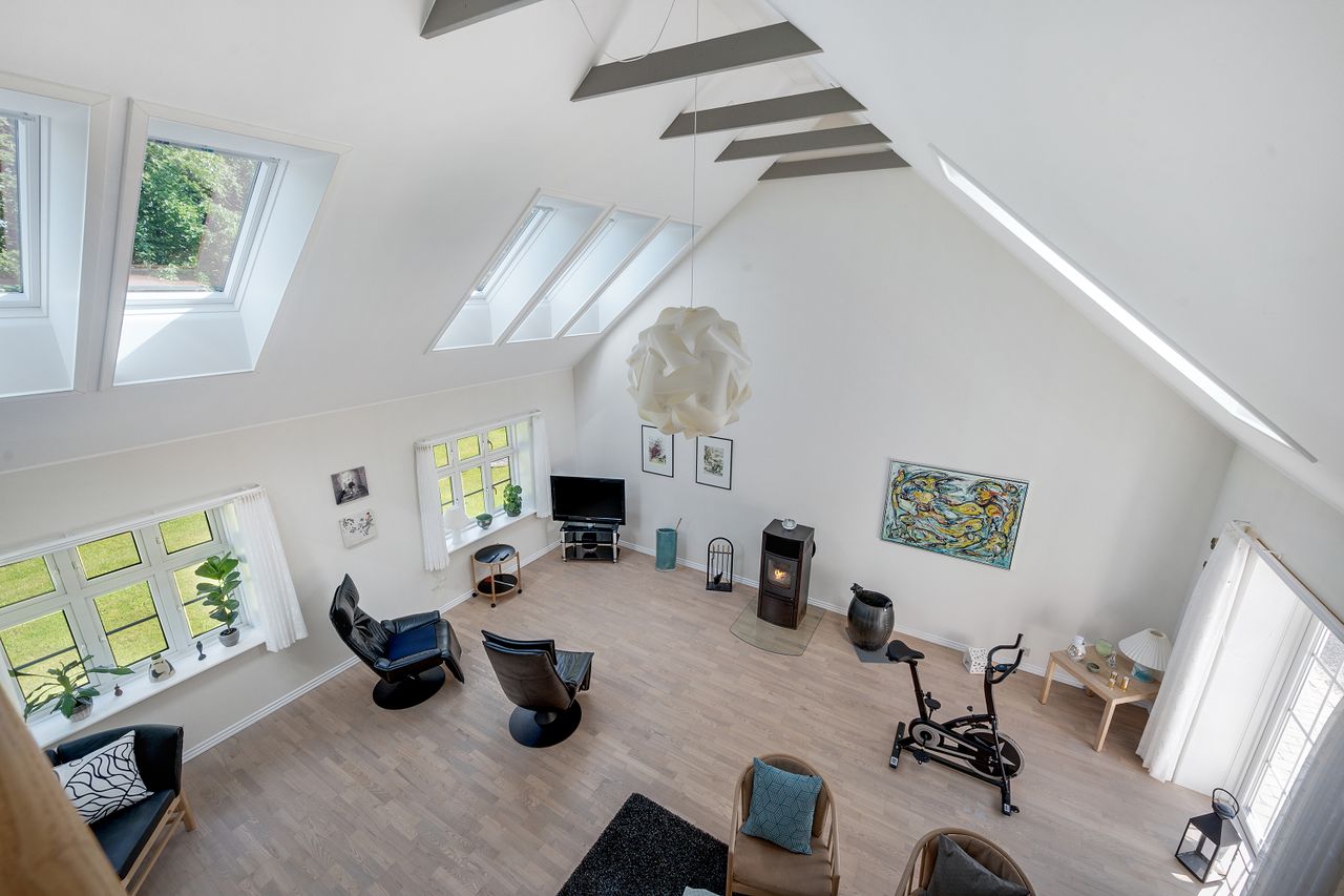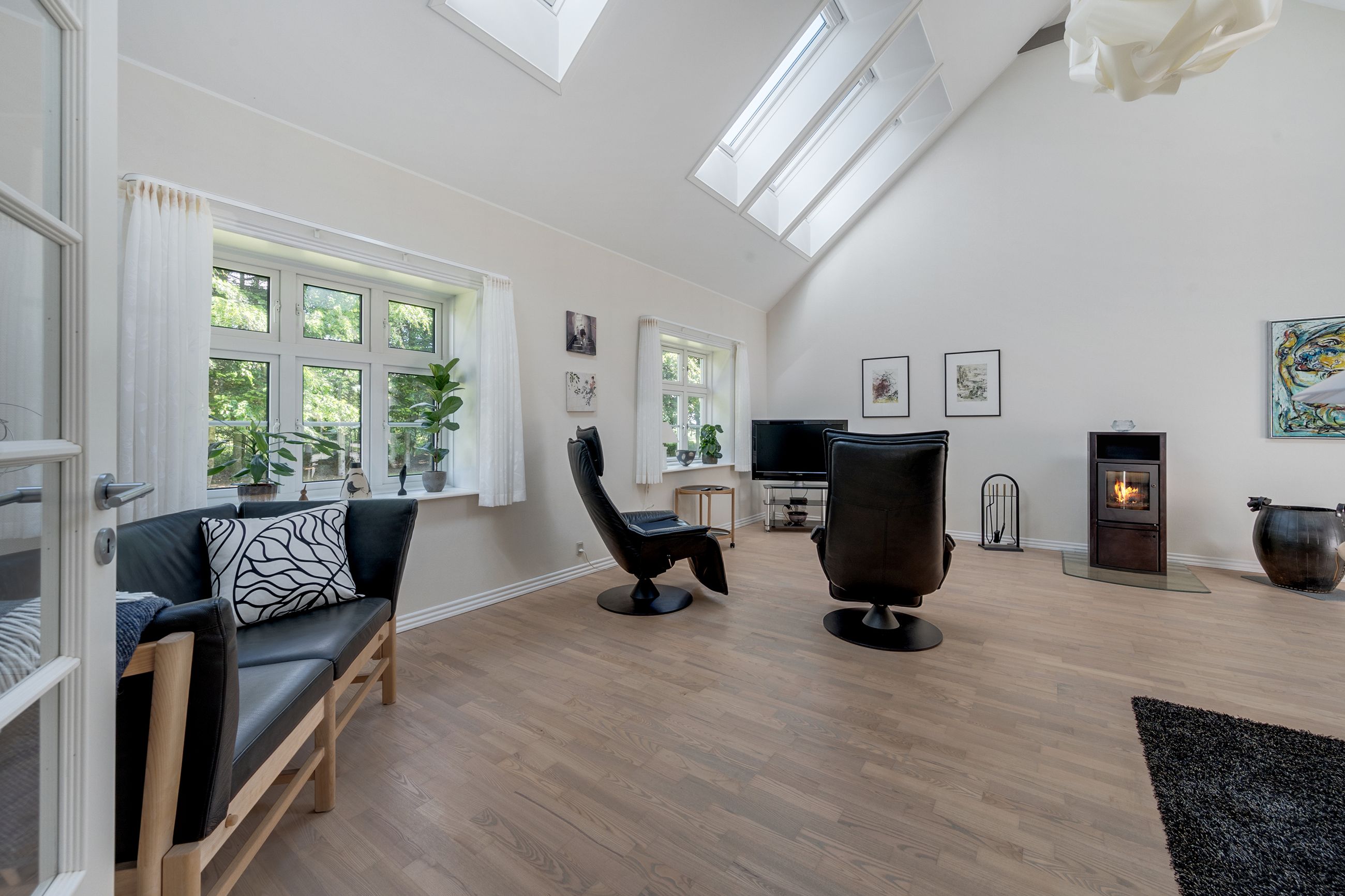 4 skabe. Flot stor stue der er tilbygget i 2006. Her er loft til kip og ovenlys vinduer samt kig til 1. sal. I stuen