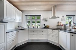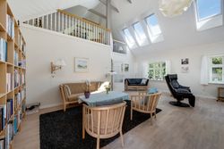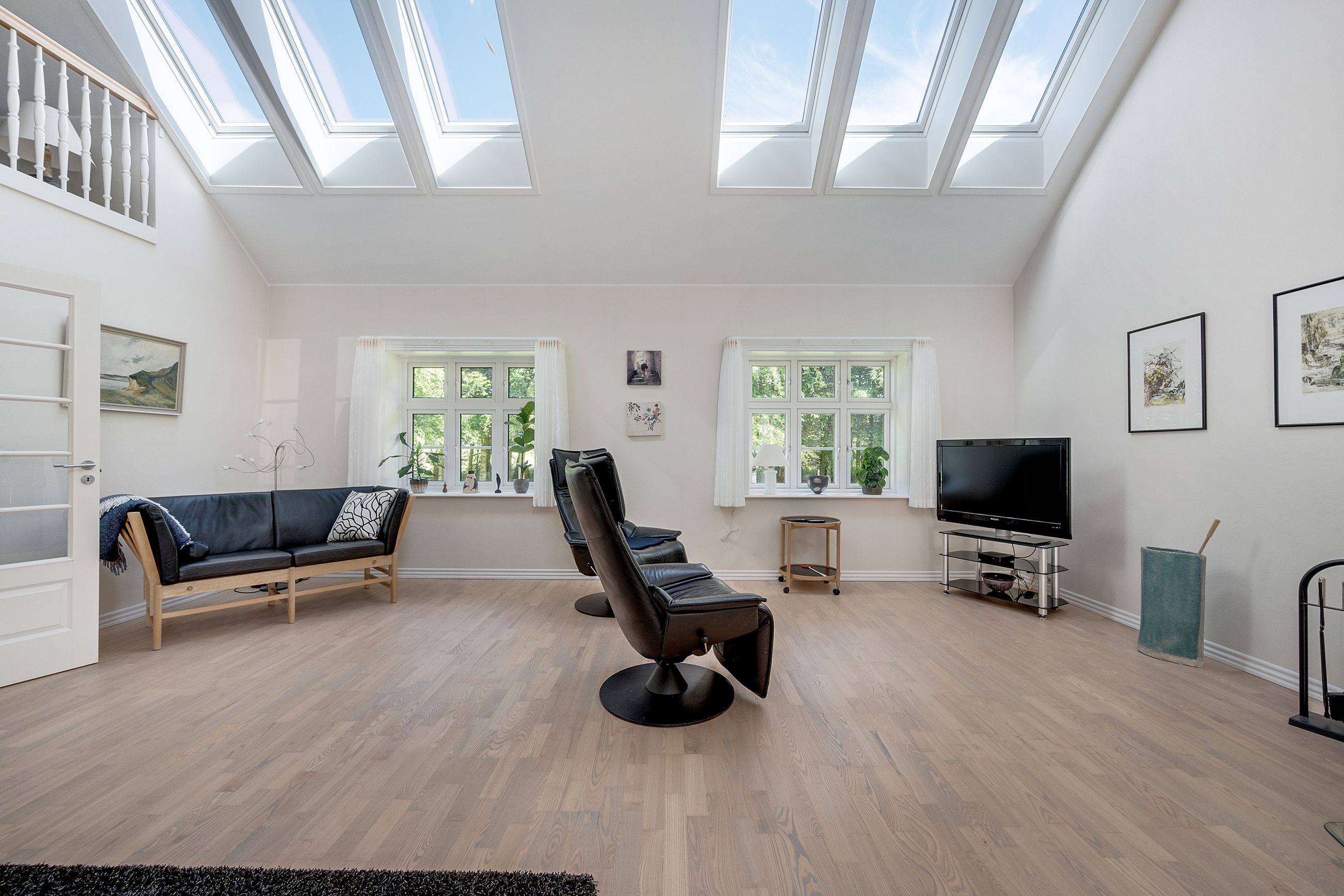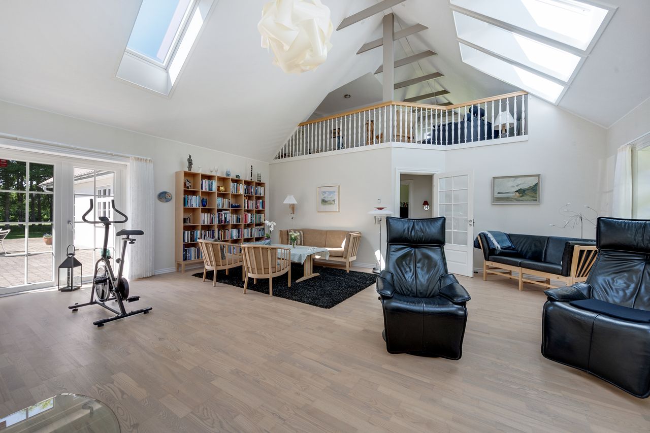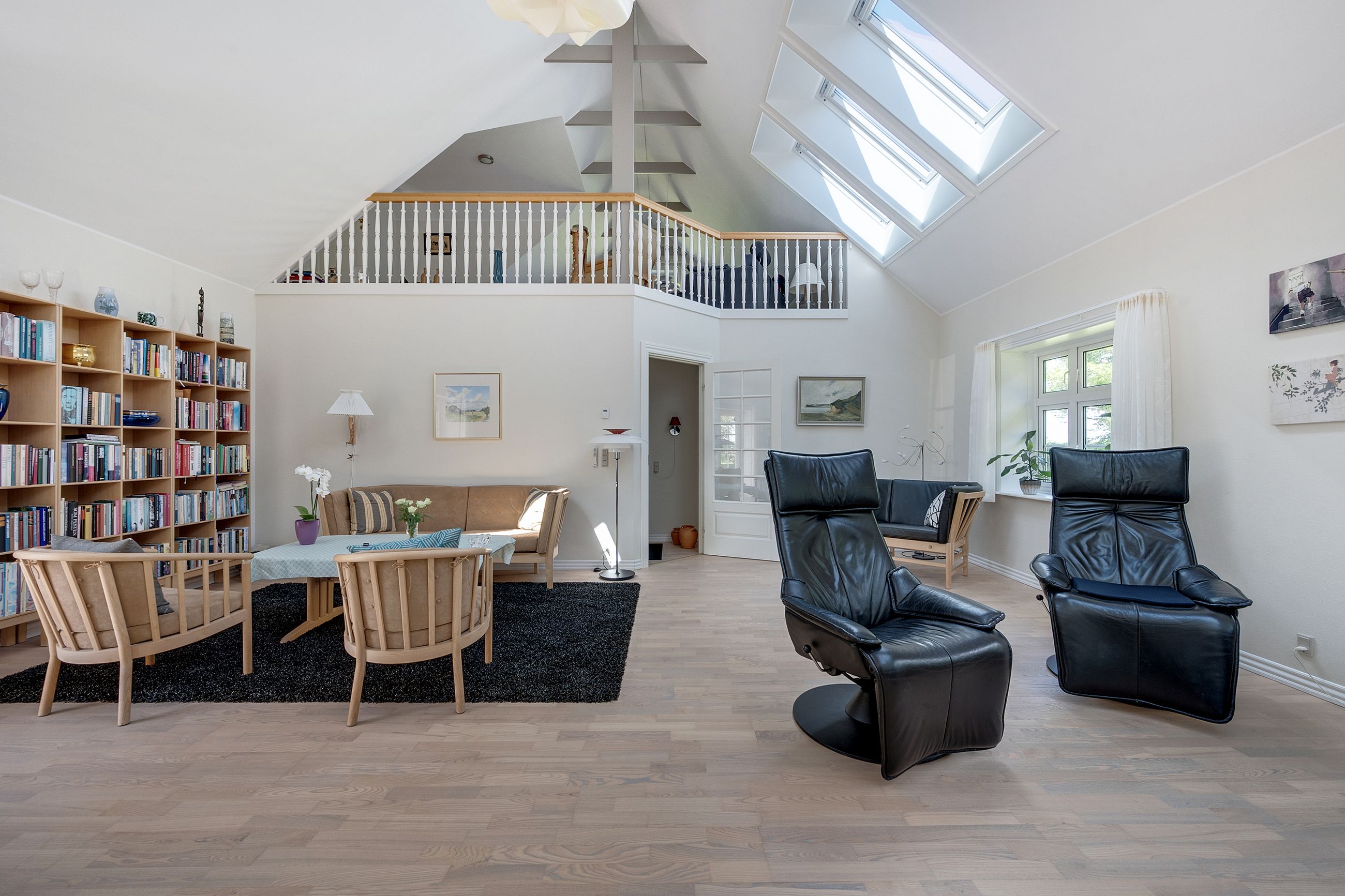 4 skabe. Flot stor stue der er tilbygget i 2006. Her er loft til kip og ovenlys vinduer samt kig til 1. sal. I stuen