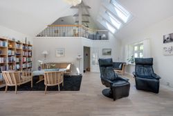 er der desuden brændeovn. 1. sal er indrettet med repos. 2 store værelser og ekstra stue hvor der er kig til