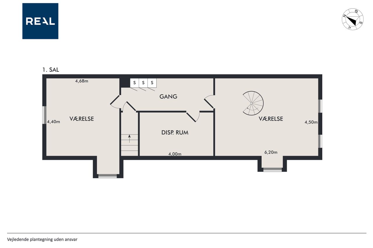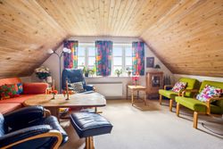 På 1. salen finder du en rummelig stue og endnu et værelse