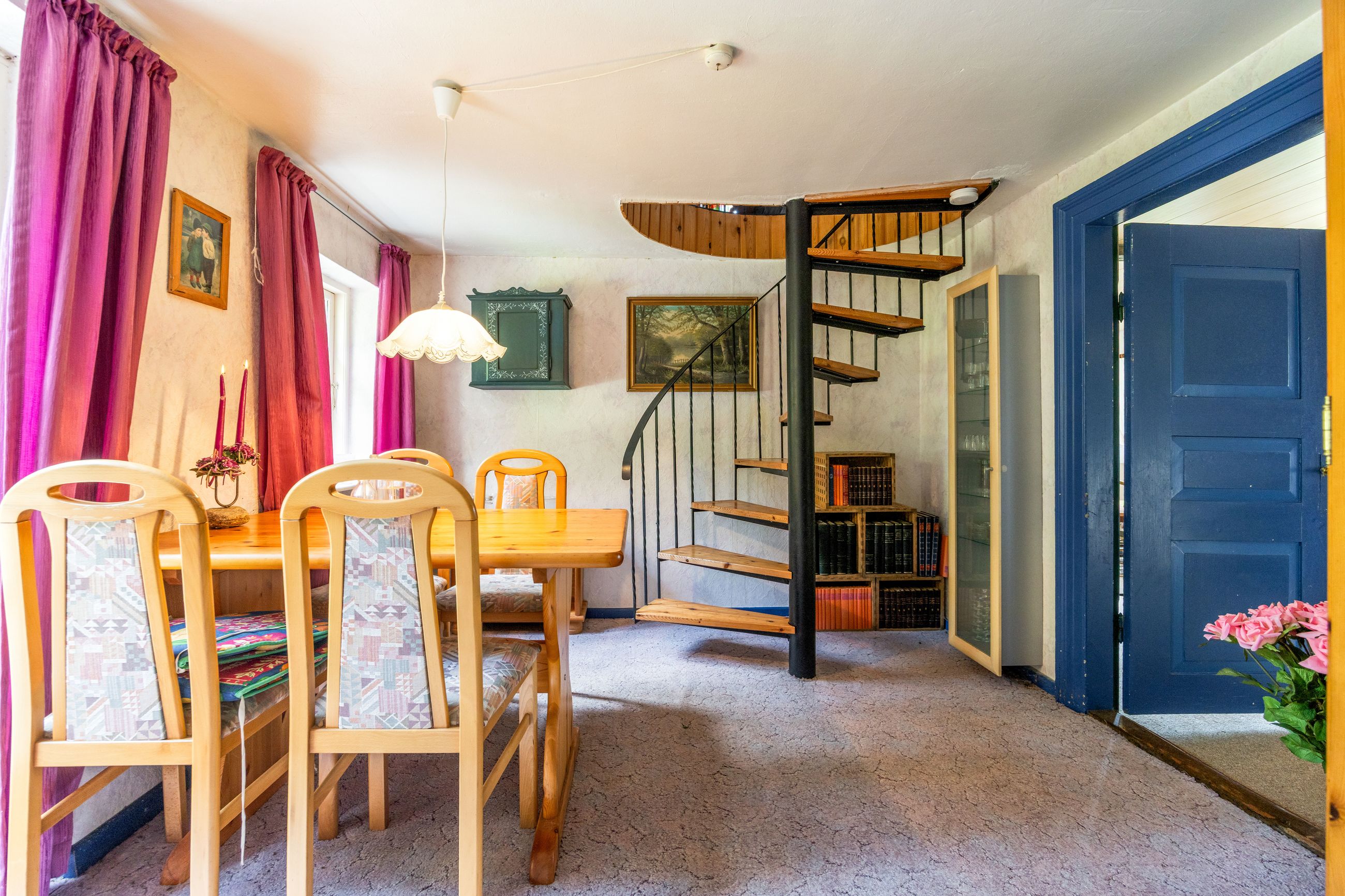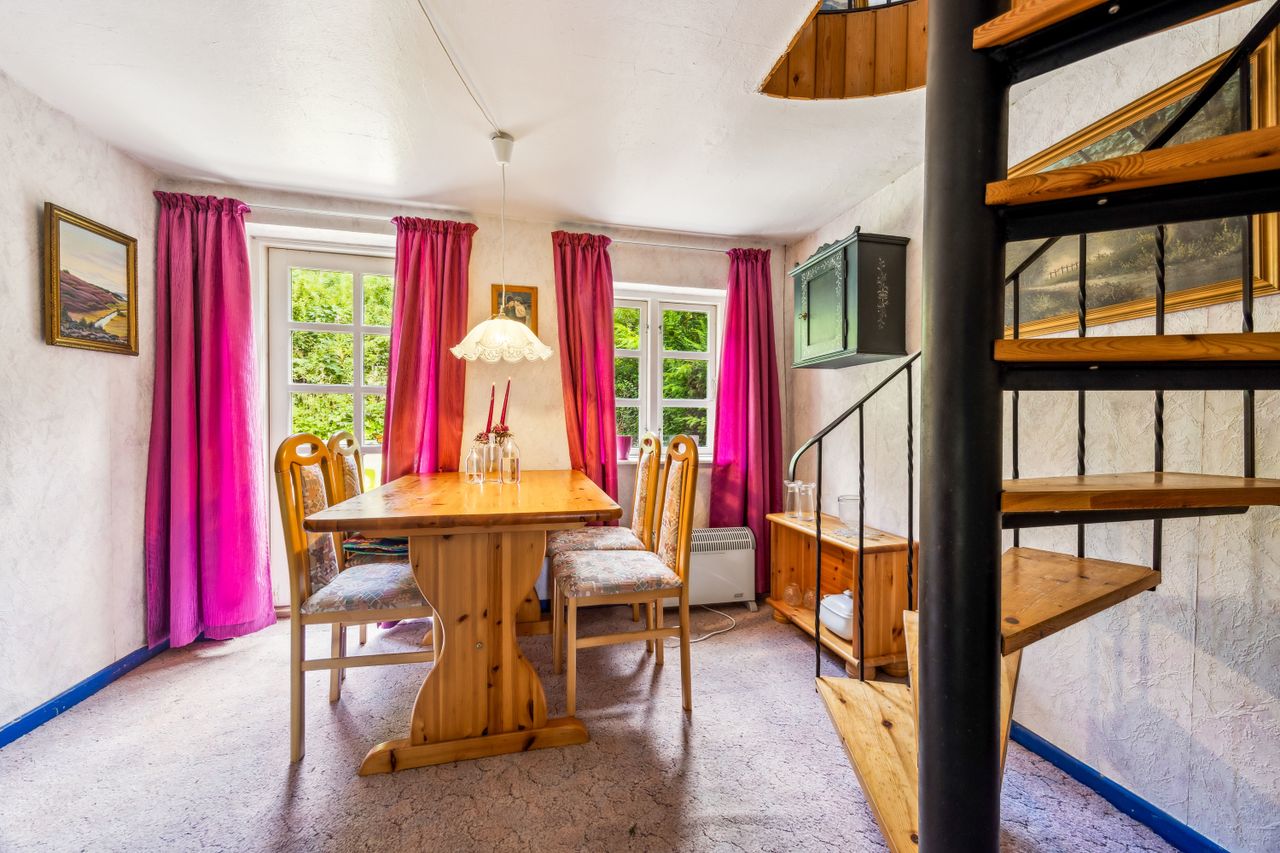 Spisestue med spindeltrappe til 1. sal