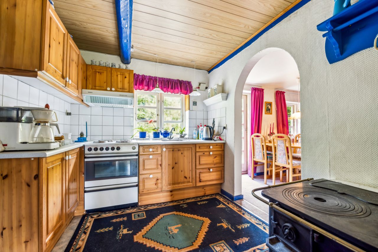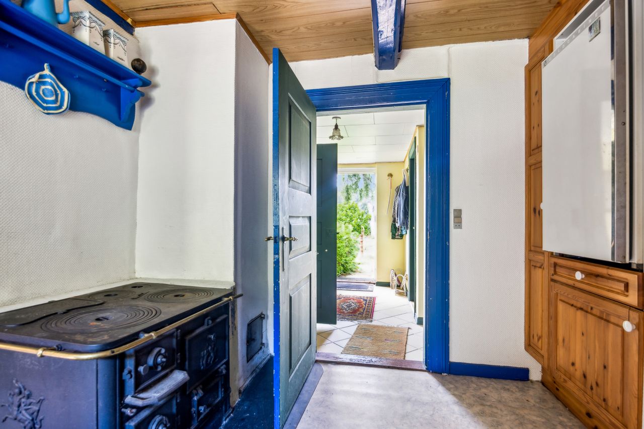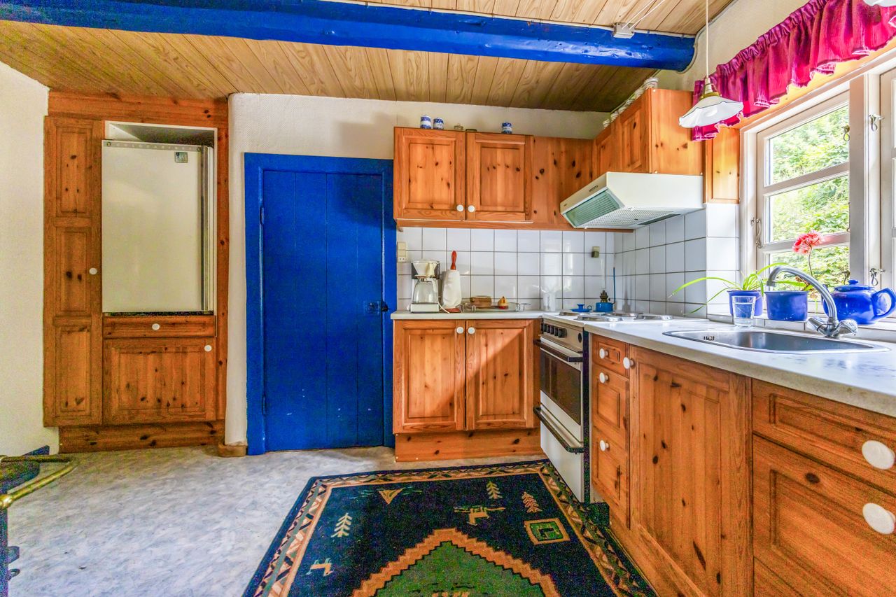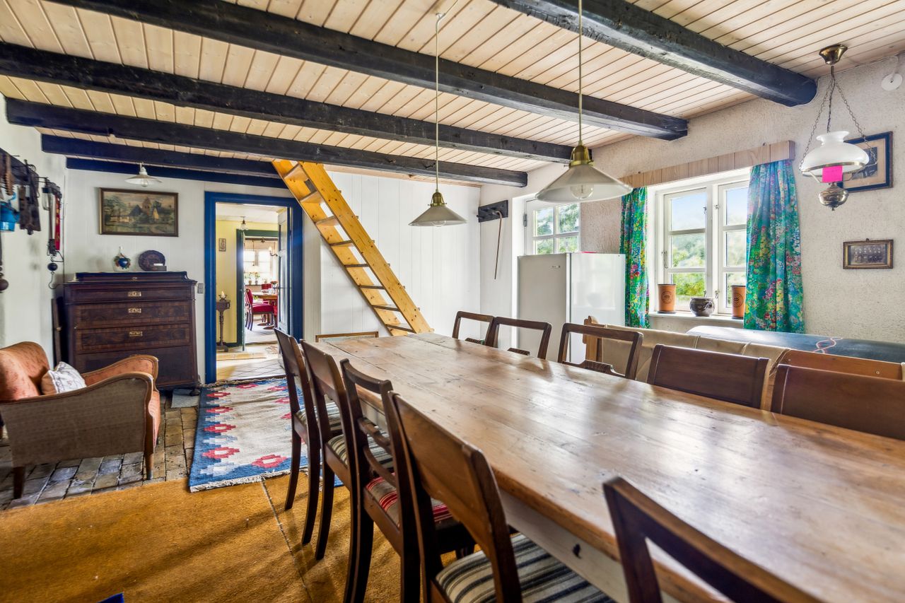Huset rummer masser af historie og charme. Gennem årene er der løbende foretaget forbedringer, men mange originale detaljer er bevaret – bl.a. et fastbrændselskomfur og en masseovn, der vidner om stedets lange liv og varme atmosfære.