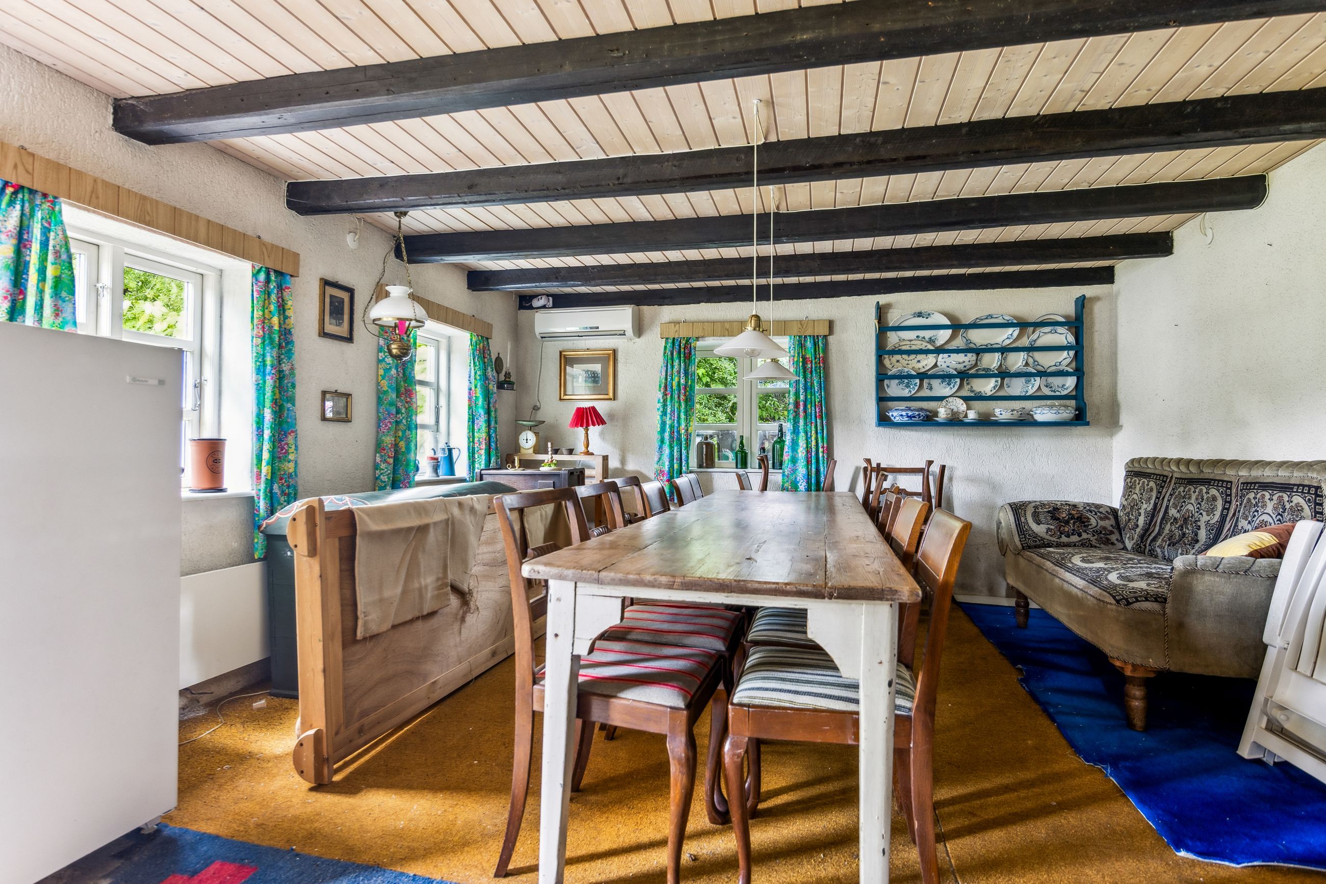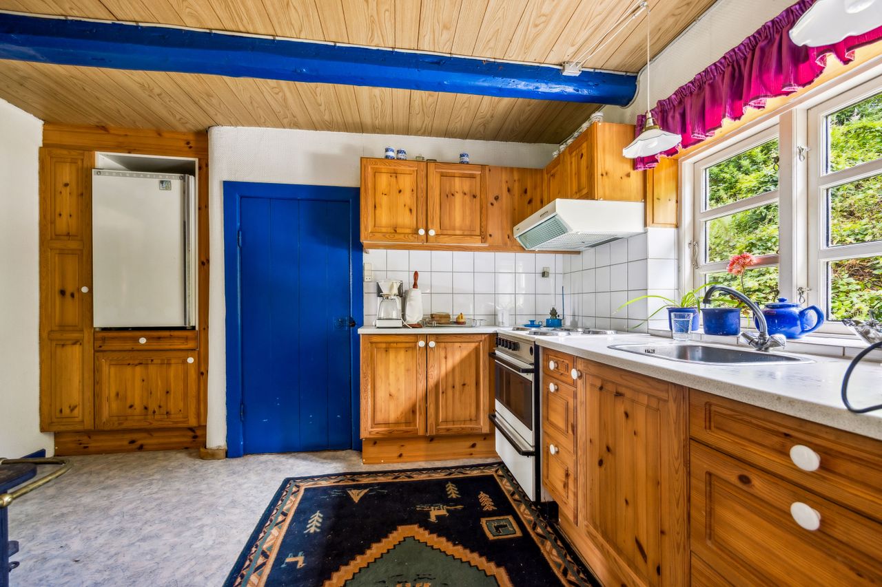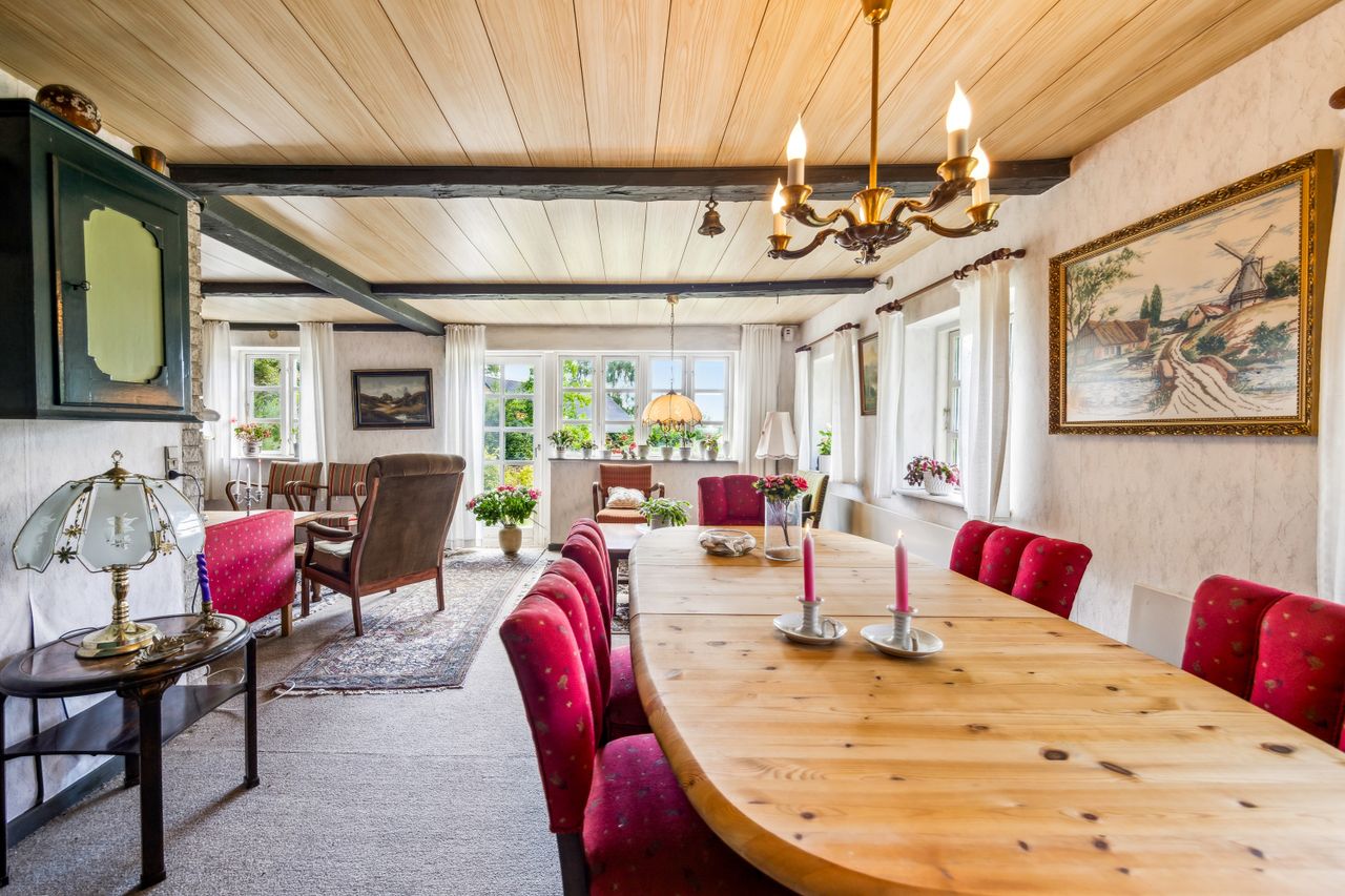 Huset rummer masser af historie og charme. Gennem årene er der løbende foretaget forbedringer, men mange originale detaljer er bevaret – bl.a. et fastbrændselskomfur og en masseovn, der vidner om stedets lange liv og varme atmosfære.