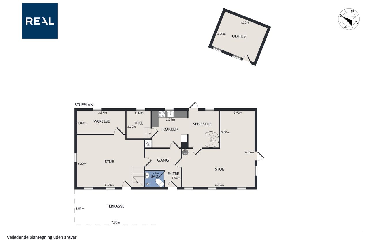 Udenfor venter en stor, naturskøn grund på hele 5.187 m2, hvor du kan gå på opdagelse blandt frugttræer og frodig beplantning. Fra grunden er der mulighed for at etablere et fantastisk kig til Limfjorden – takket være det højtliggende terræn. Til ejendommen hører også værksted og drivhus, så der er masser af plads til både hobby og selvforsyning.