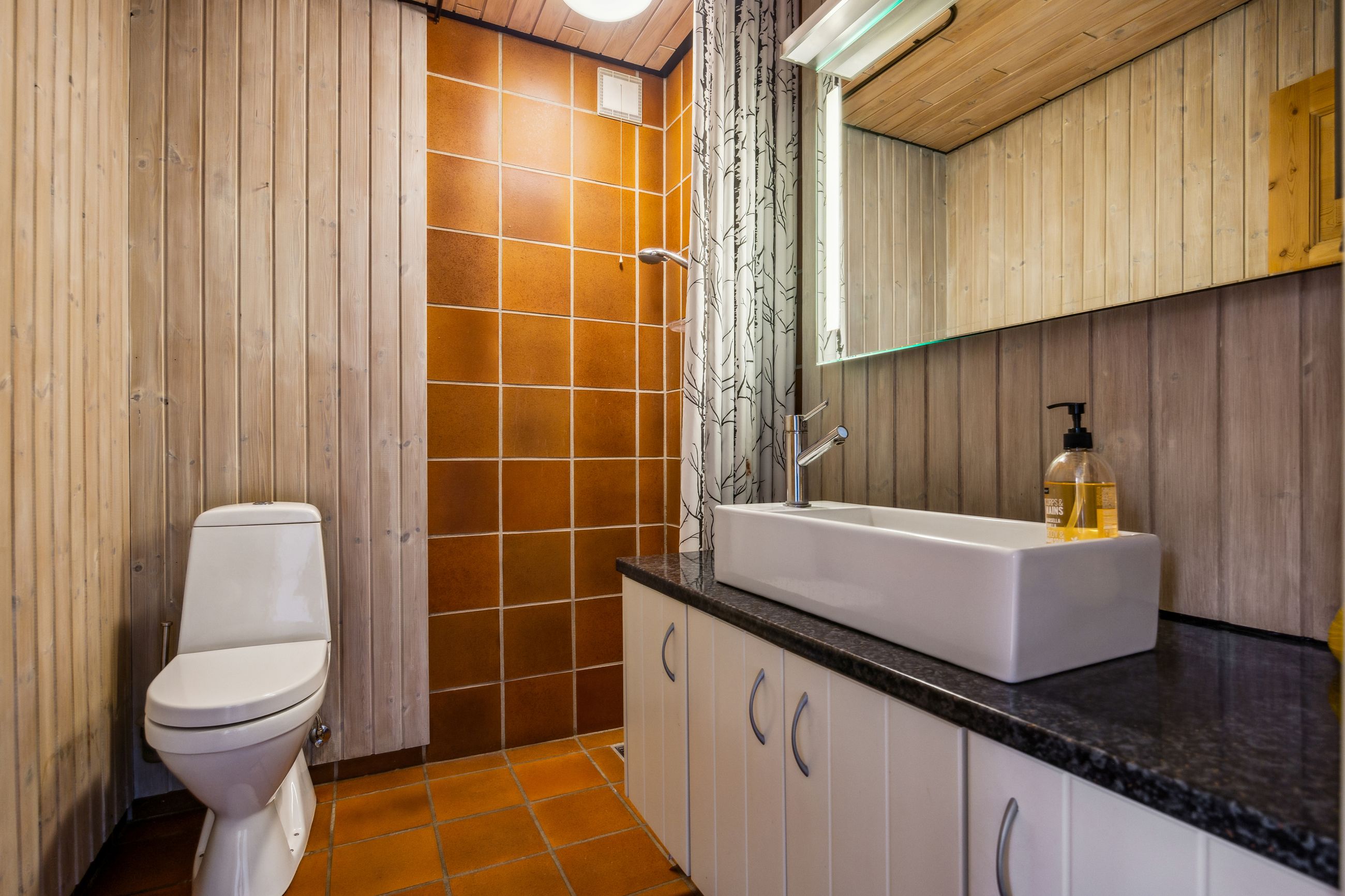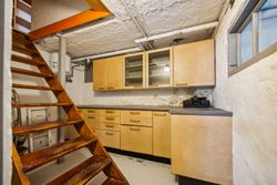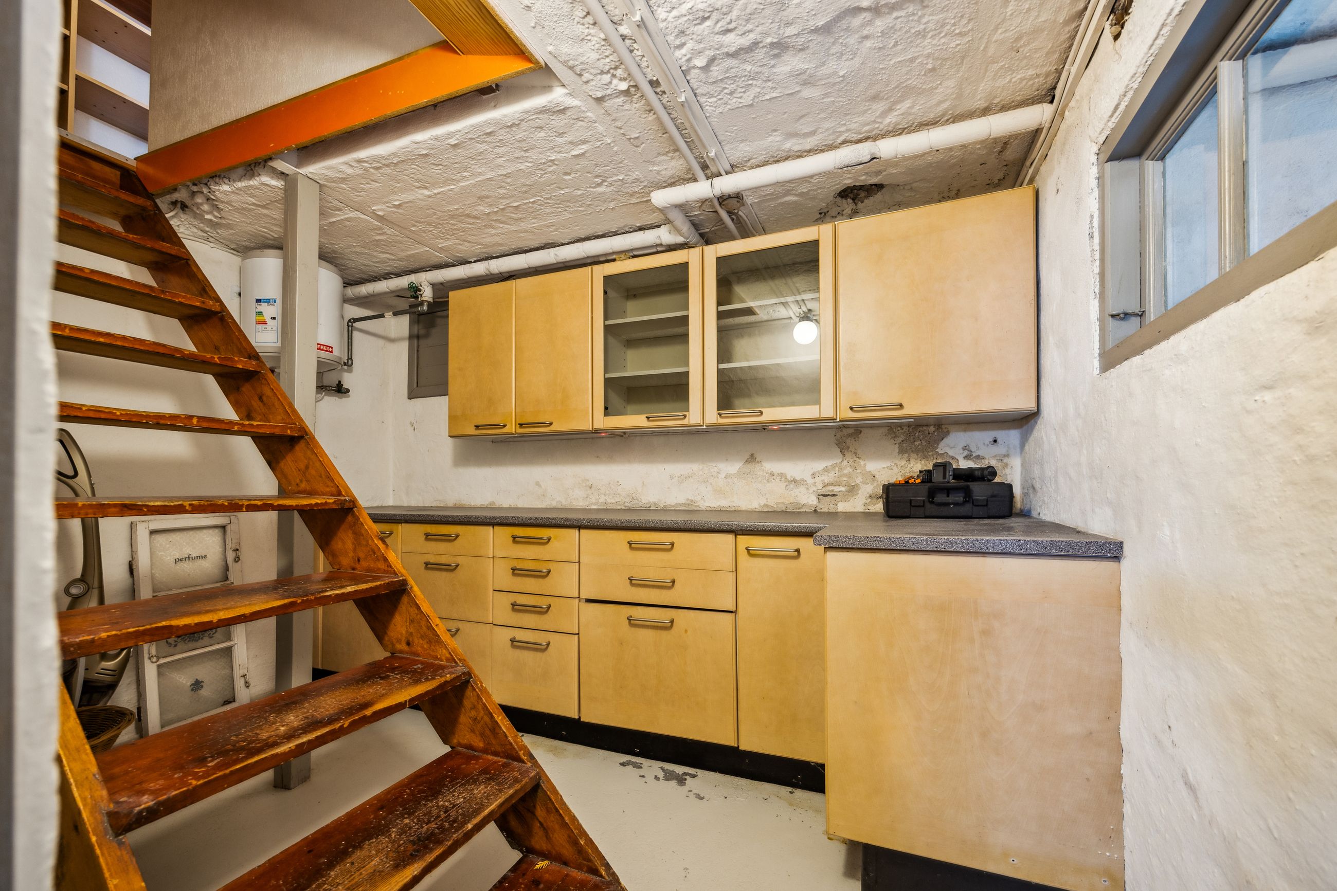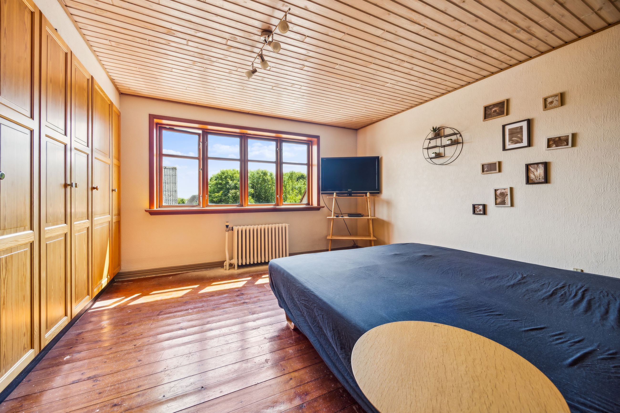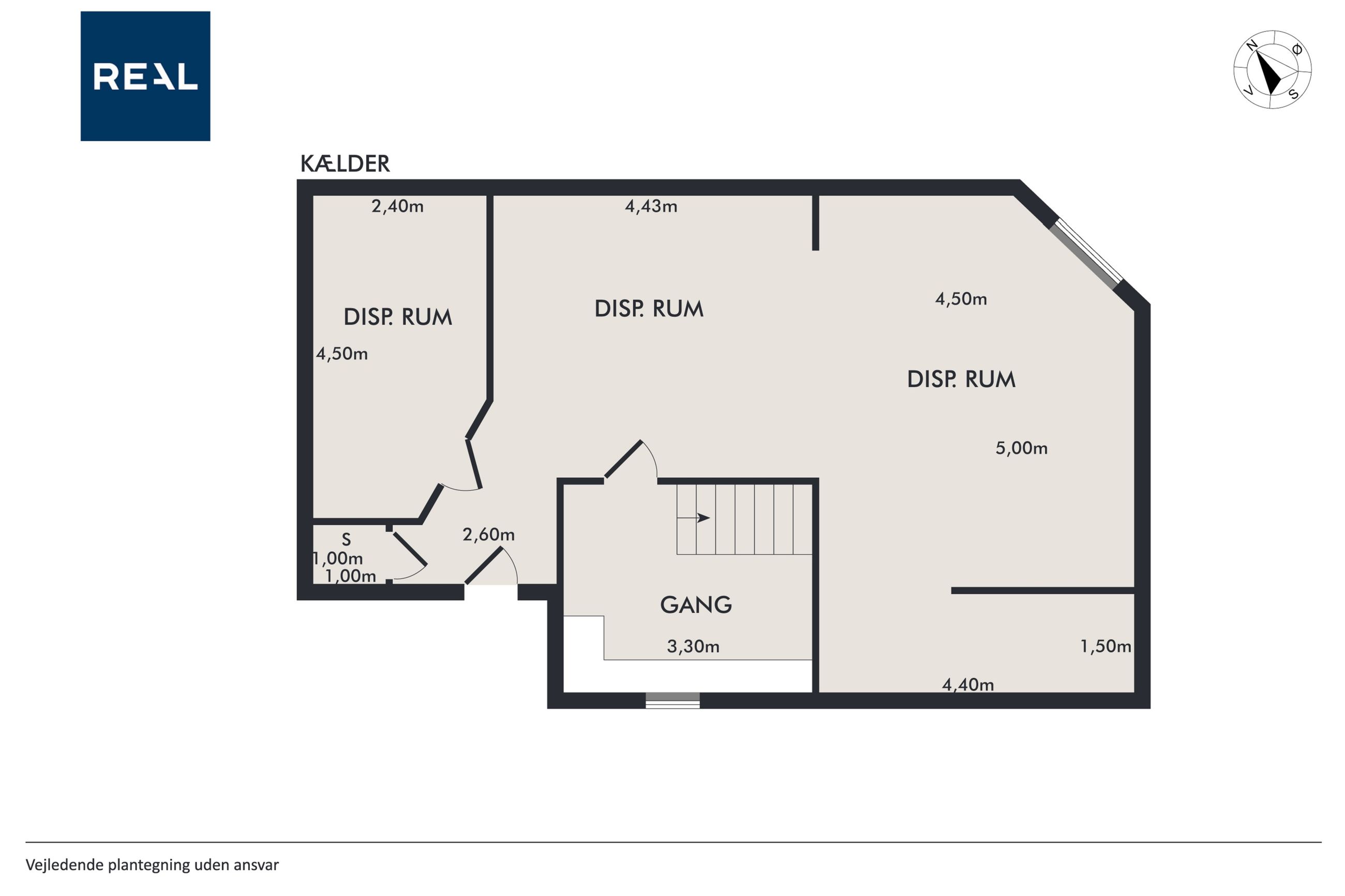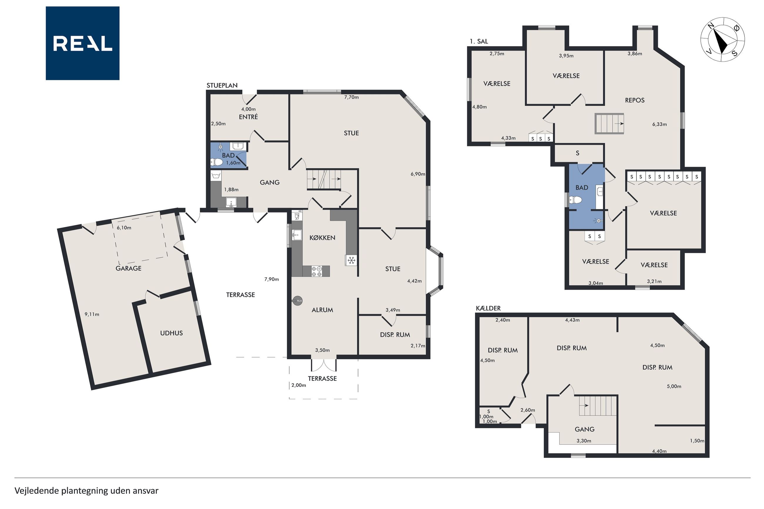 På første sal er der en rummelig repos og en opholdsstue, et badeværelse med toilet, bruserum og sauna, et soveværelse med masser af skabsplads samt yderligere tre værelser – alle med faste skabe – og et depotrum.