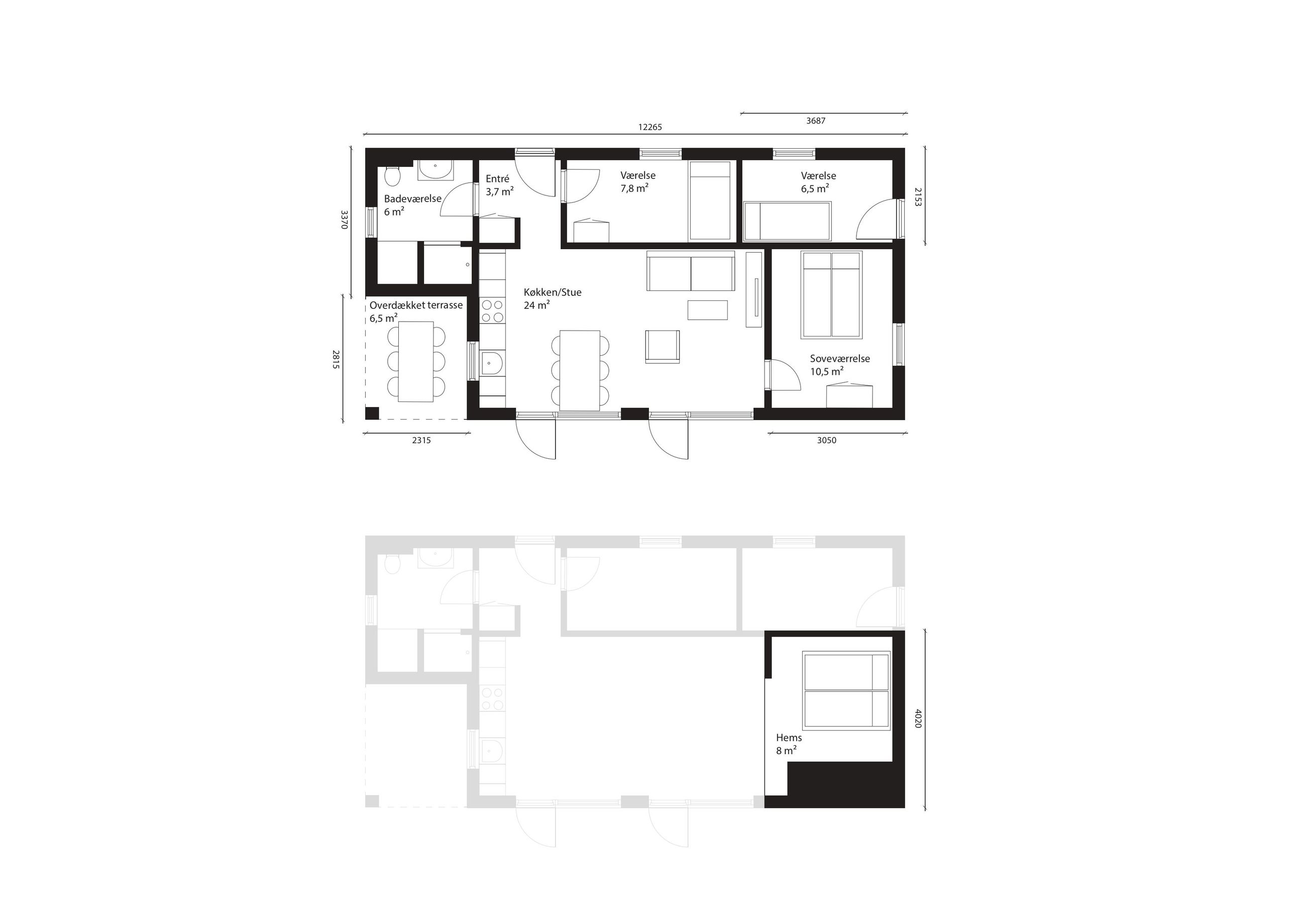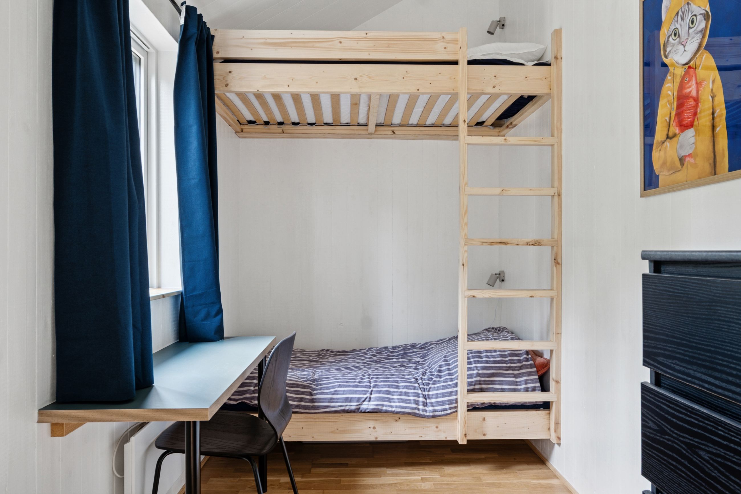 Huset er opført som et helårsvenligt sommerhus med høj isoleringsstandard, træ/alu-vinduer med trelags glas og diffusionsåbne materialer hele vejen igennem. Det betyder et behageligt indeklima året rundt. Både varmepumpe og radiatorer kan styres via wifi, så huset altid er klar, når du ankommer. Gulvene er udført i smukt genanvendt egetræ, hvilket tilfører både varme og karakter. Huset er velindrettet og indeholder: Entre. Stort køjeværelse. Dejligt badeværelse med plads til vaskemaskine. Lyst alrum hvor de store vinduer med det samme trækker skoven ind i rummet. Soveværelse og hems med mulighed for flere sovepladser. Der er desuden et ekstra værelse med særskilt indgang udefra. Fra alrum er der adgang til stor træterrasse hvor noget af den er overdækket. Fra terrassen er der udsigt til skoven, der omkranser grunden og skaber en sjælden ro. Grunden grænser sig op til en friareal som ejes af grundejerforeningen og ikke må bebygges.