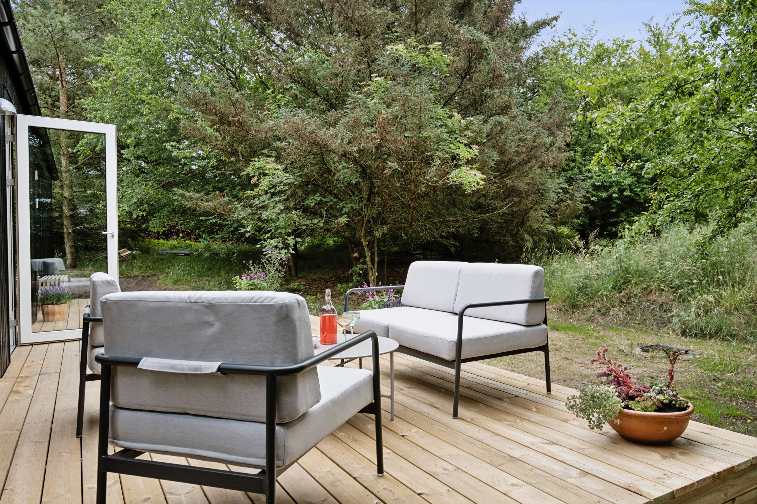 På Lyngtoften 19 finder du dette arkitekttegnet sommerhus, hvor natur og design går op i en smuk helhed. Huset ligger fredeligt omgivet af skov, og både placeringen og materialevalget er tænkt med stor omtanke, så naturen opleves helt tæt på – både ude og inde.