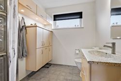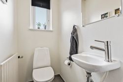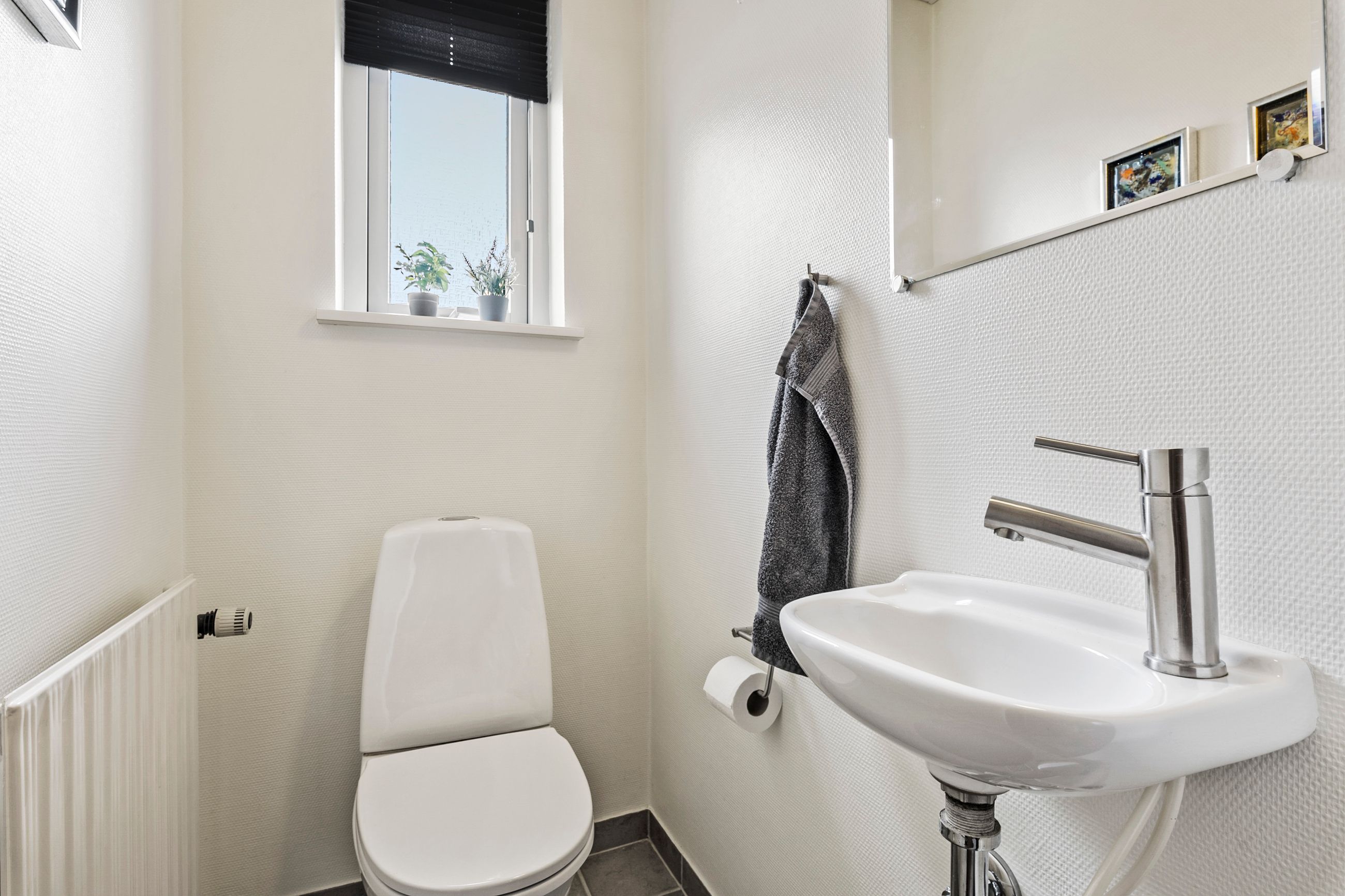 Boligen rummer desuden tre gode værelser samt et pænt badeværelse og gæstetoilet. Her er plads til hele familien – alt efter behov. Derudover finder du et bryggers med god opbevaringsplads. Der er desuden en stor garage.