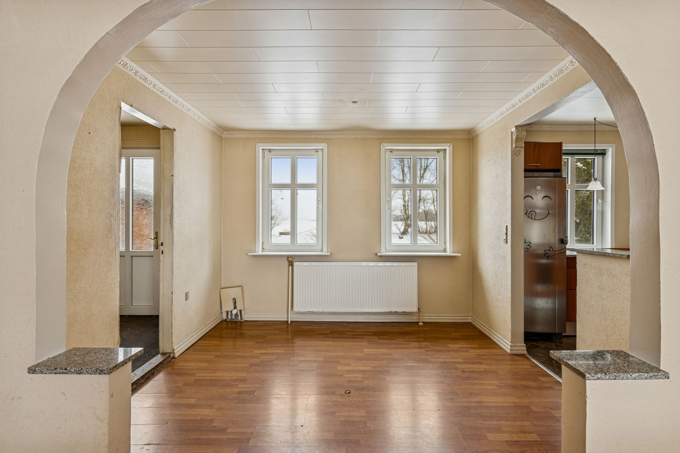 Boligen fremstår med et ældre udtryk og trænger flere steder til modernisering – her er der mulighed for at sætte sit helt eget præg og skabe en moderne landejendom med respekt for den oprindelige charme.