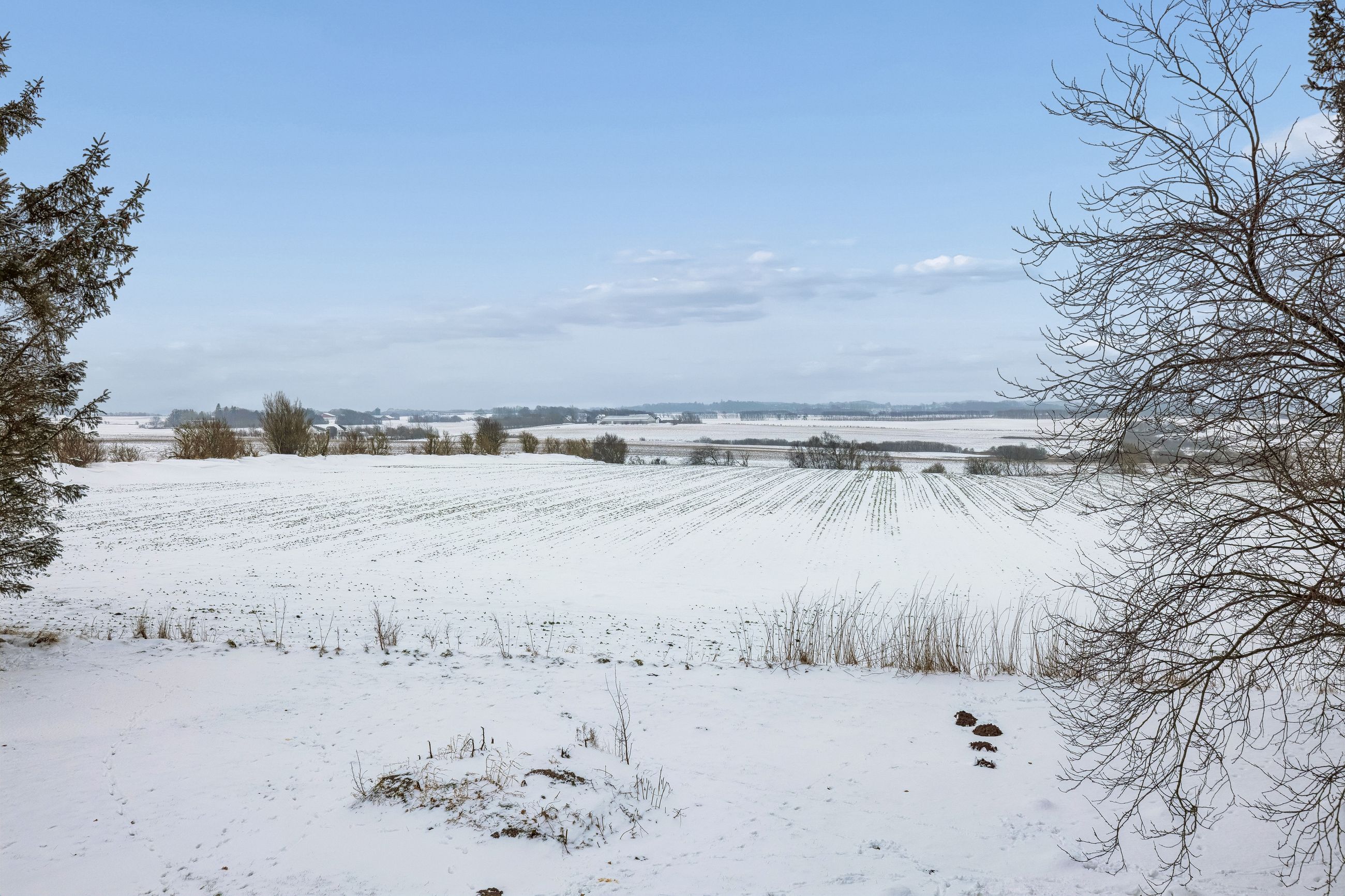 Ejendommen er smukt beliggende med vid udsigt over åbne marker og natur så langt øjet rækker. Her får du ro, privatliv og masser af muligheder.