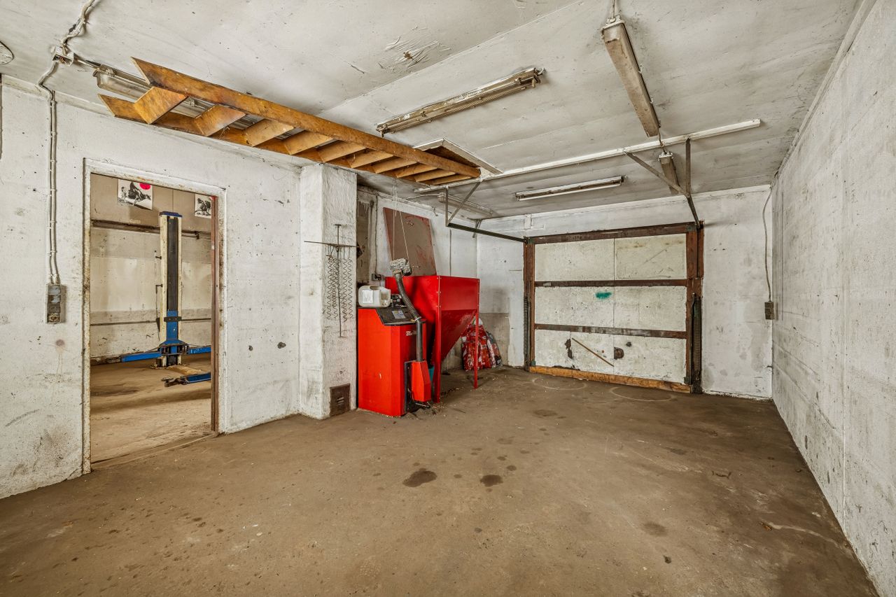 Her er blandt andet indrettet et stort værkstedsareal med lift, hvilket gør ejendommen oplagt til mekaniker, håndværker, mindre erhverv eller den seriøse hobbyentusiast. Bygningerne giver også mulighed for opbevaring, lager, værksted eller kreative projekter.