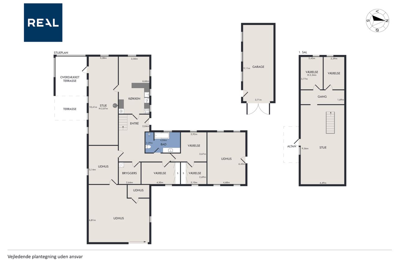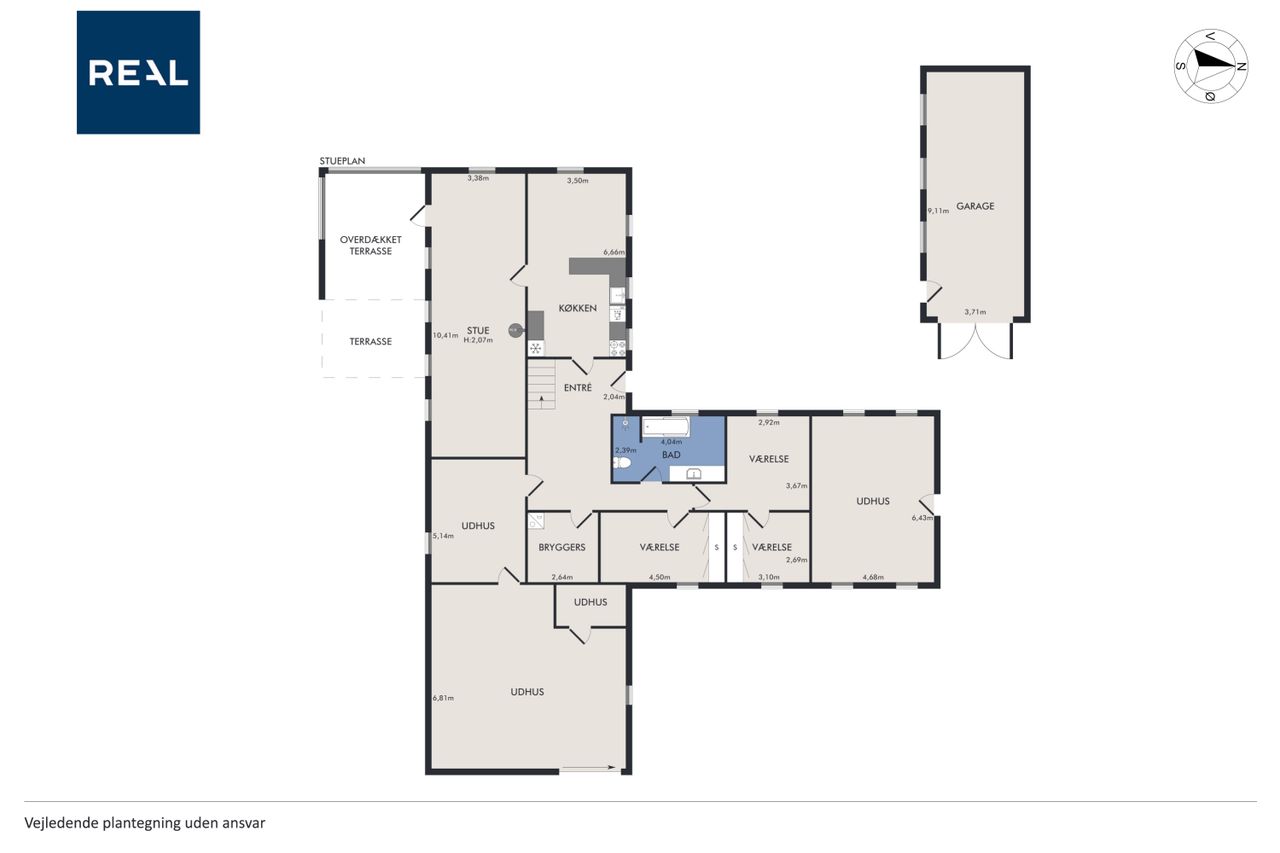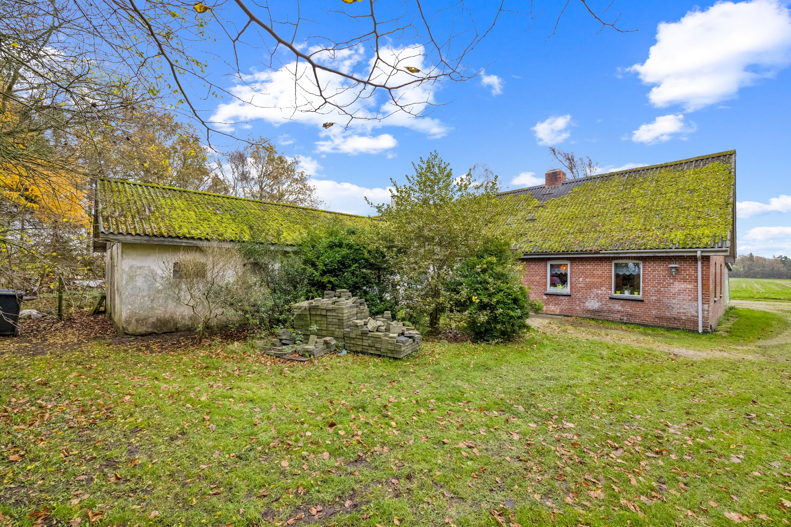 Grunden på over 5.600 m2 giver dig rig mulighed for at udfolde dig udendørs. Her er både plads til haveprojekter, dyrehold, leg eller blot at nyde udsigten over markerne. Derudover byder ejendommen på flere udhuse og bygninger, som kan anvendes til opbevaring, værksted eller hobbyaktiviteter.